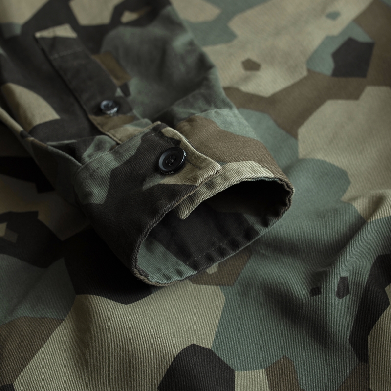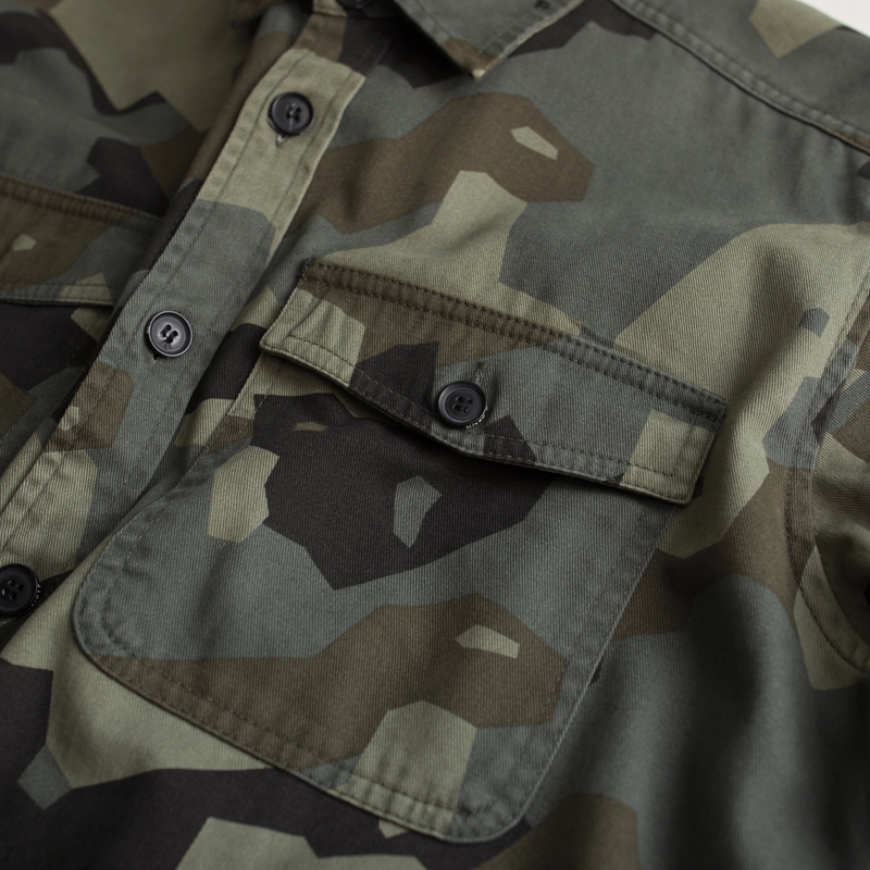 考究經典工作襯衫版型改良,以獨家特殊的反應性印染方式開發而成的棉質面料,