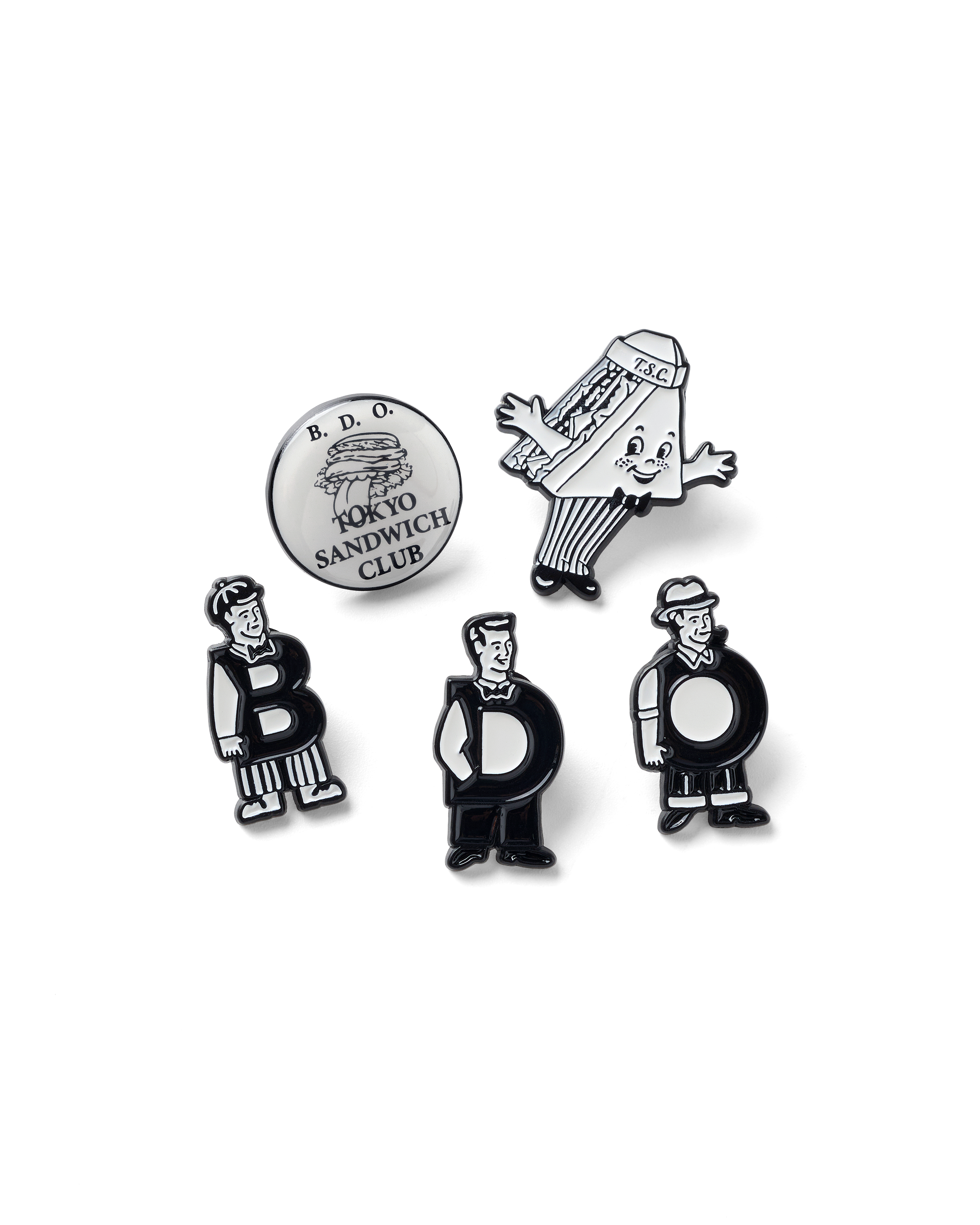 以Tokyo Sandwich Club 品牌經典圖像作為主視覺,藉由沖壓鑄型、人工入色工序將色彩與細節精緻呈現,整體色澤鮮艷飽和,細節精緻出色,可用於服裝、織品及包包配飾等,為日常搭配增添個人特色。