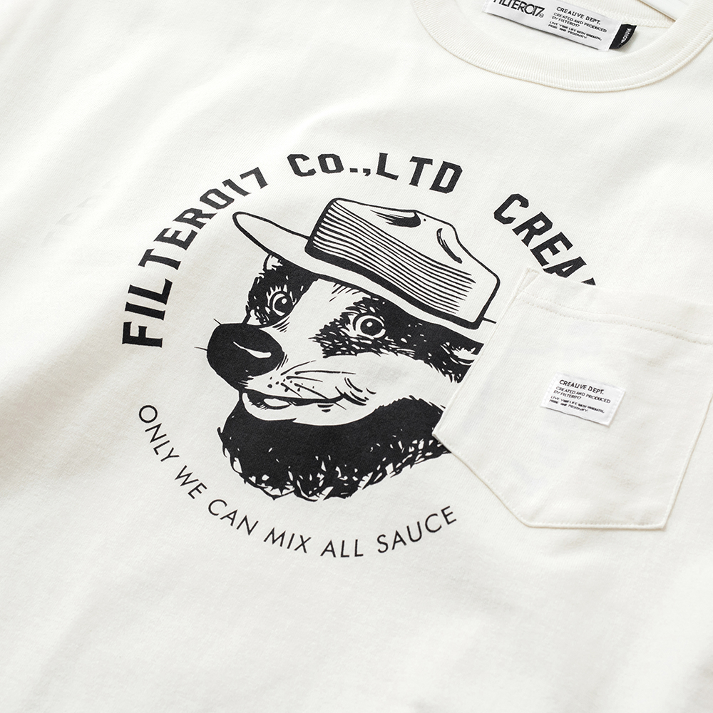 以復古畫報筆觸呈現的 Mix Badger 經典標誌於胸前大面積印刷,以口袋拼接交疊出率性的層次視覺。