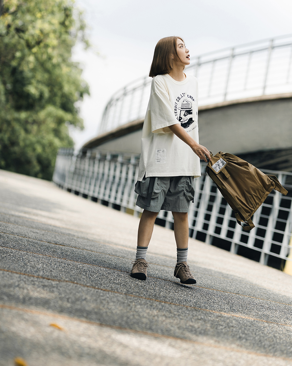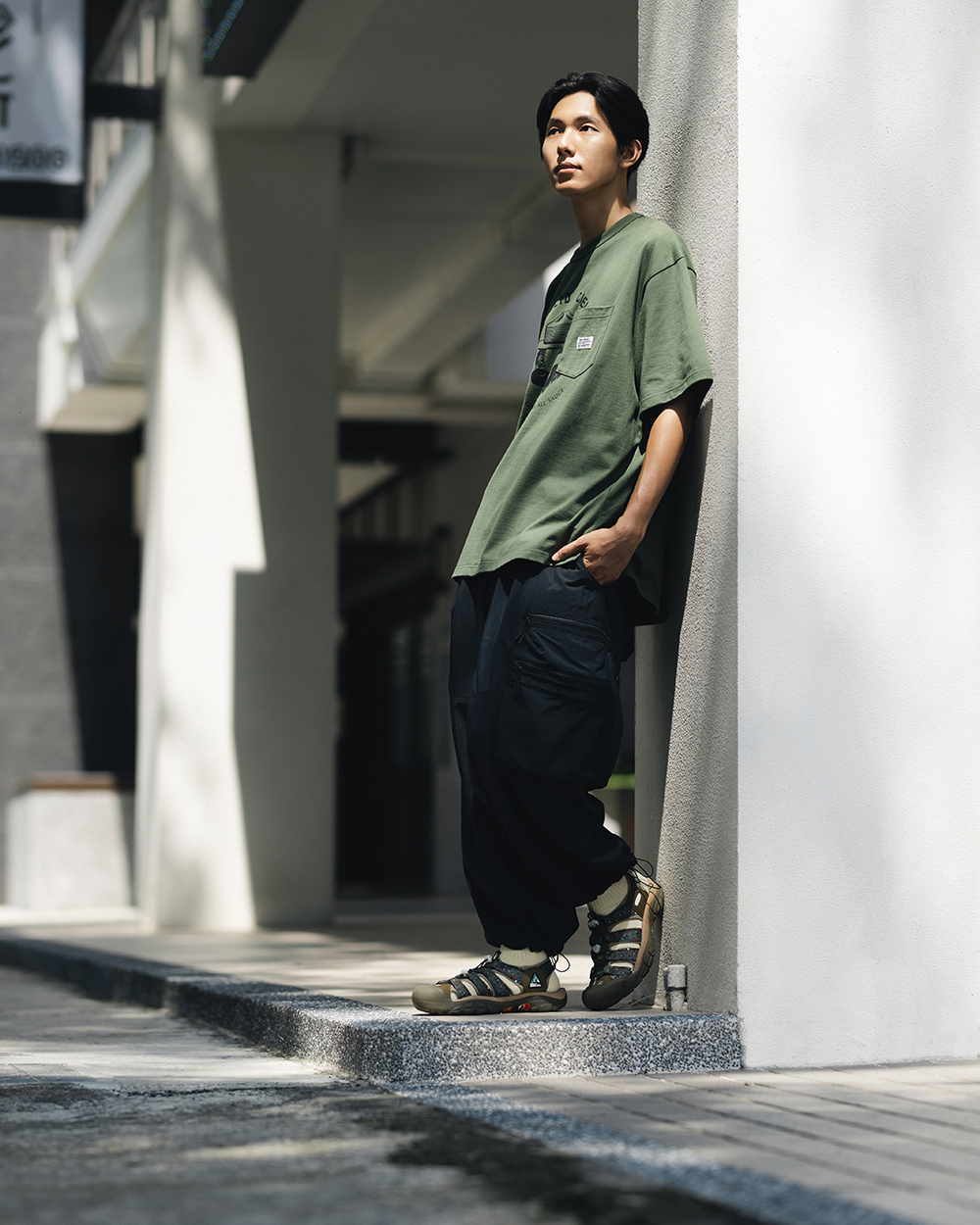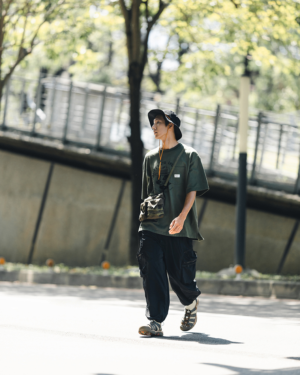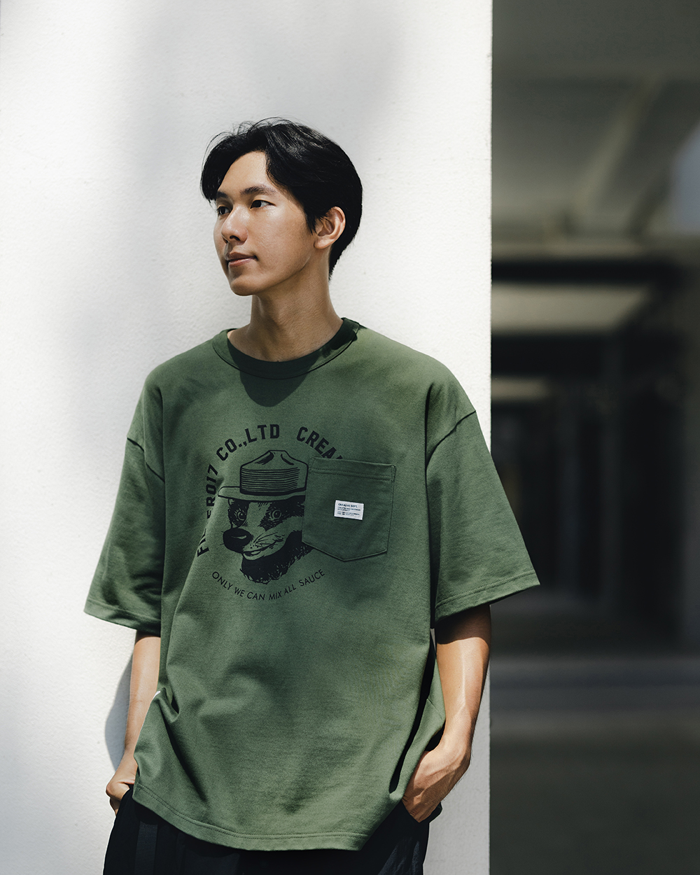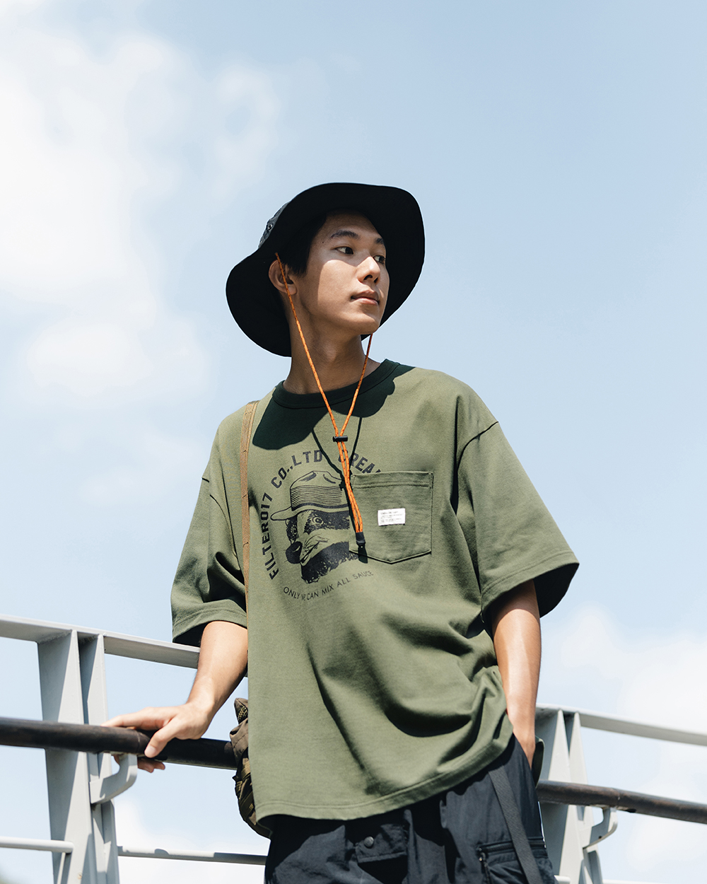 有別以往推出的短T面料,此番特別訂織採用20支棉,呈現出重磅紮實並兼具舒適的獨特手感,同時在原來寬鬆有型的版型輪廓上做了些許剪裁調整,使整體在著用體驗上更加俐落挺拔,質感大幅提升,在看似基礎簡單的短T中,植入不同的細膩感受。整體呈現帶有Filter017®品牌獨到詮釋的戶外氛圍語彙,於流行容易搭配的軍事工裝視覺基礎下,加以揉合軟調性質與元素,有別於一般過於硬核的軍工風格。