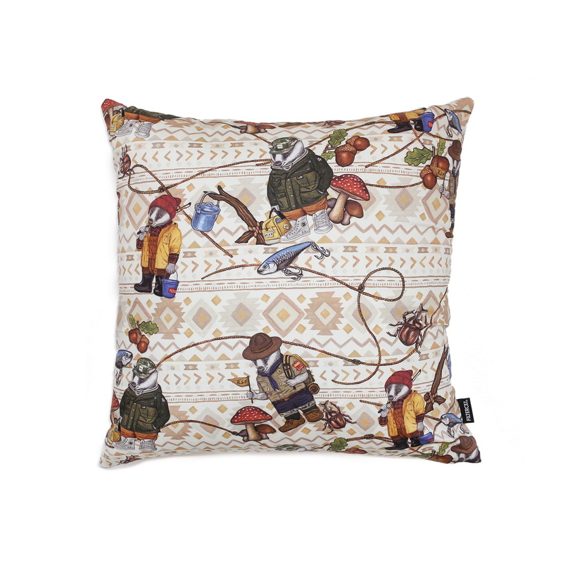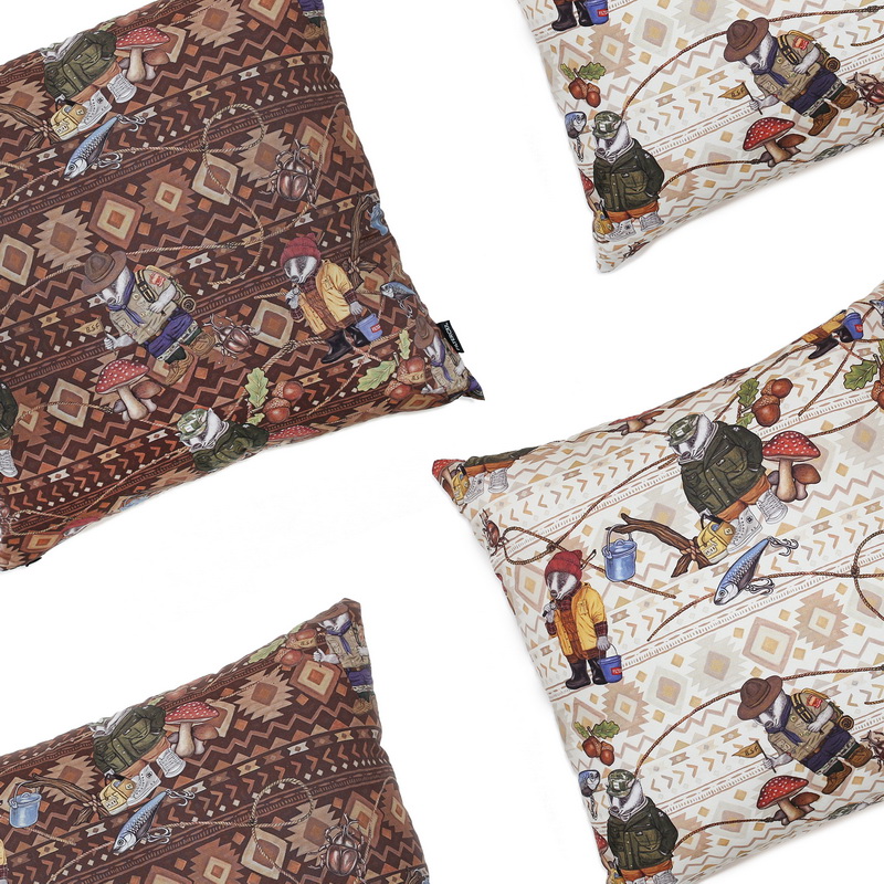 透過精緻的印染技法,巧妙地融入於生活居家常見的抱枕中,展現充滿民族復古風格的特殊質感。