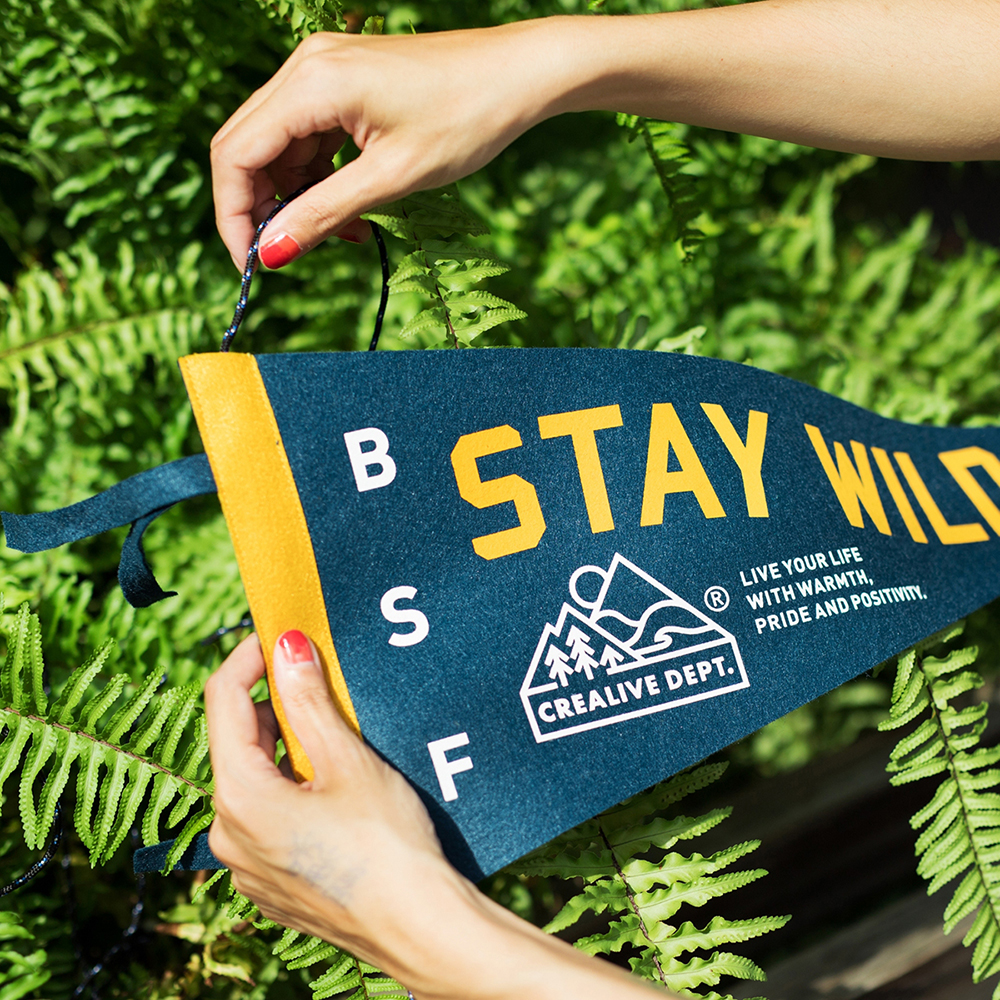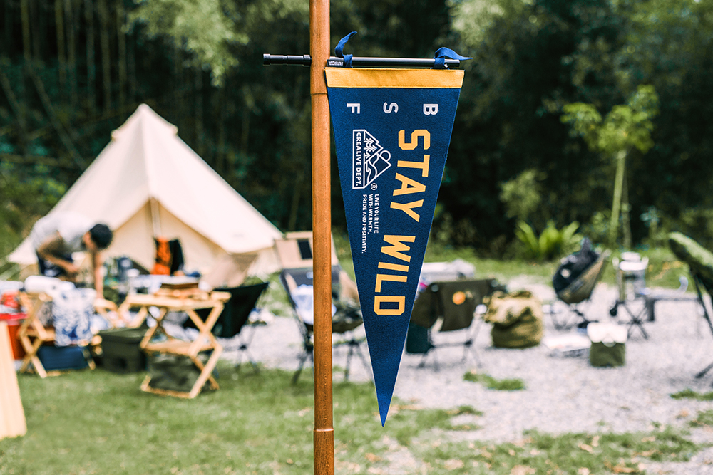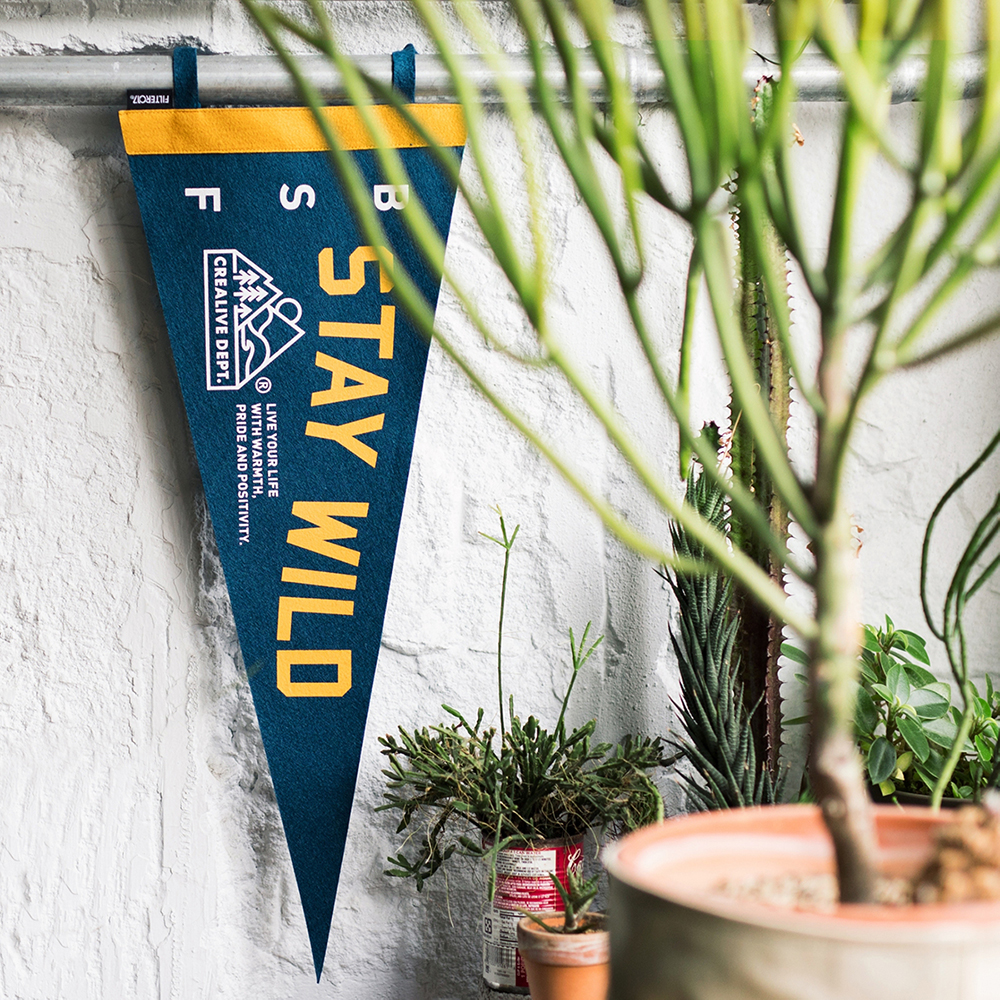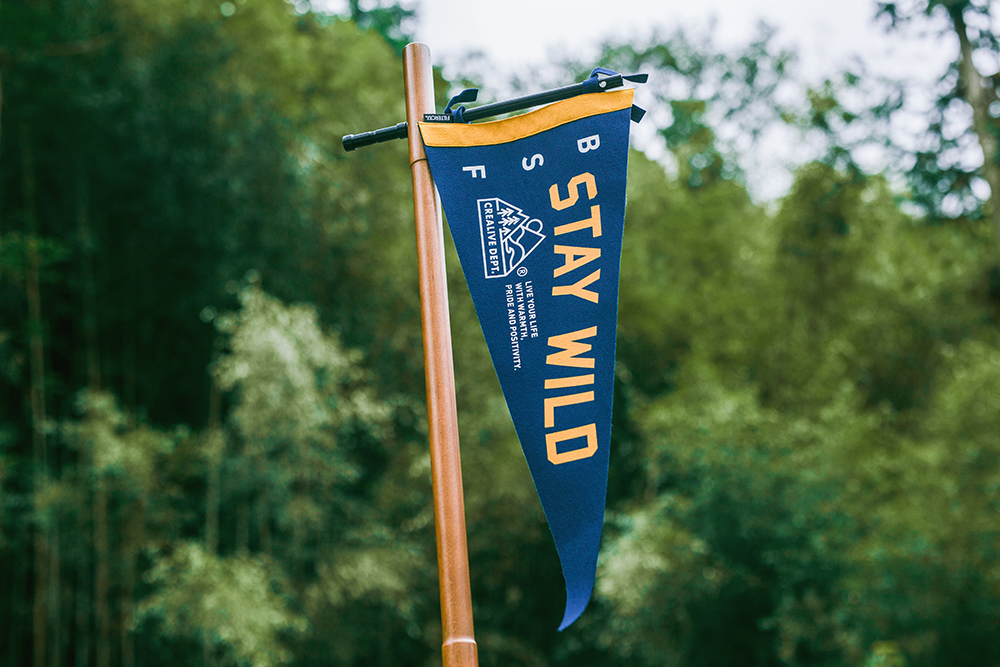 透過傳統手工網版印刷工藝詮釋具有濃厚美式、戶外及復古氛圍的裝飾旗幟,