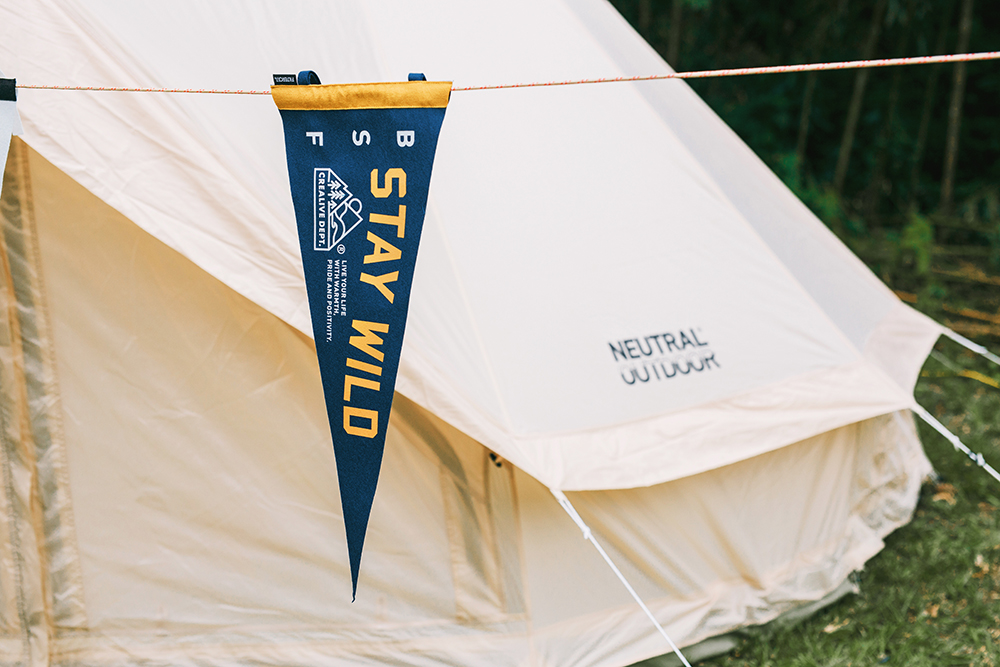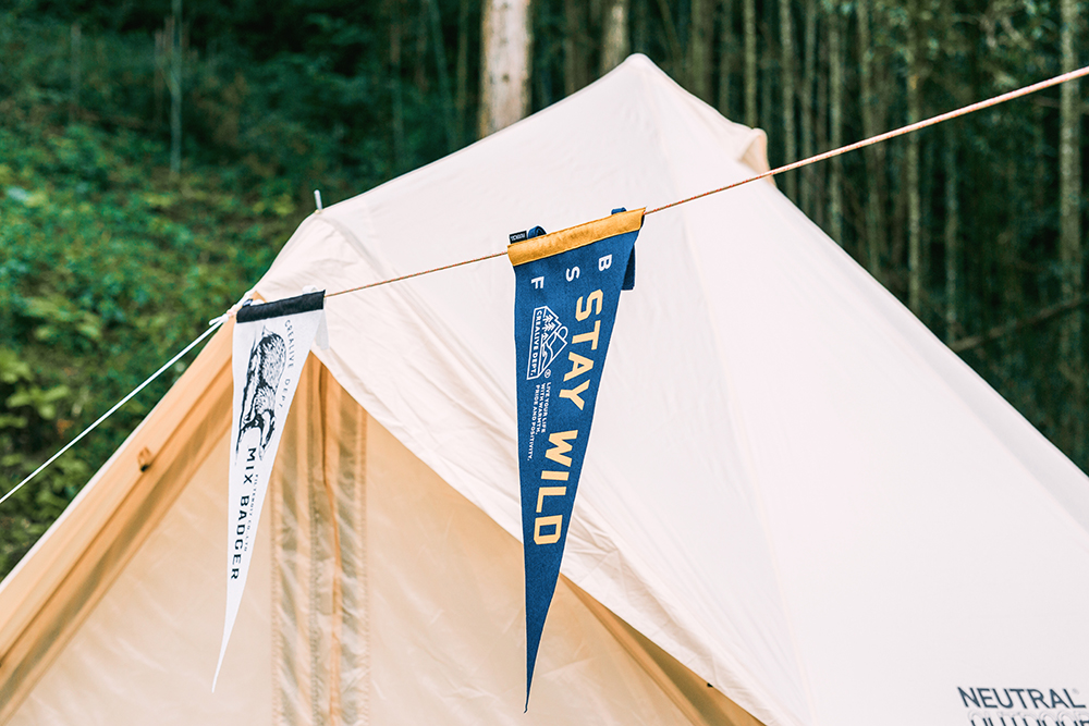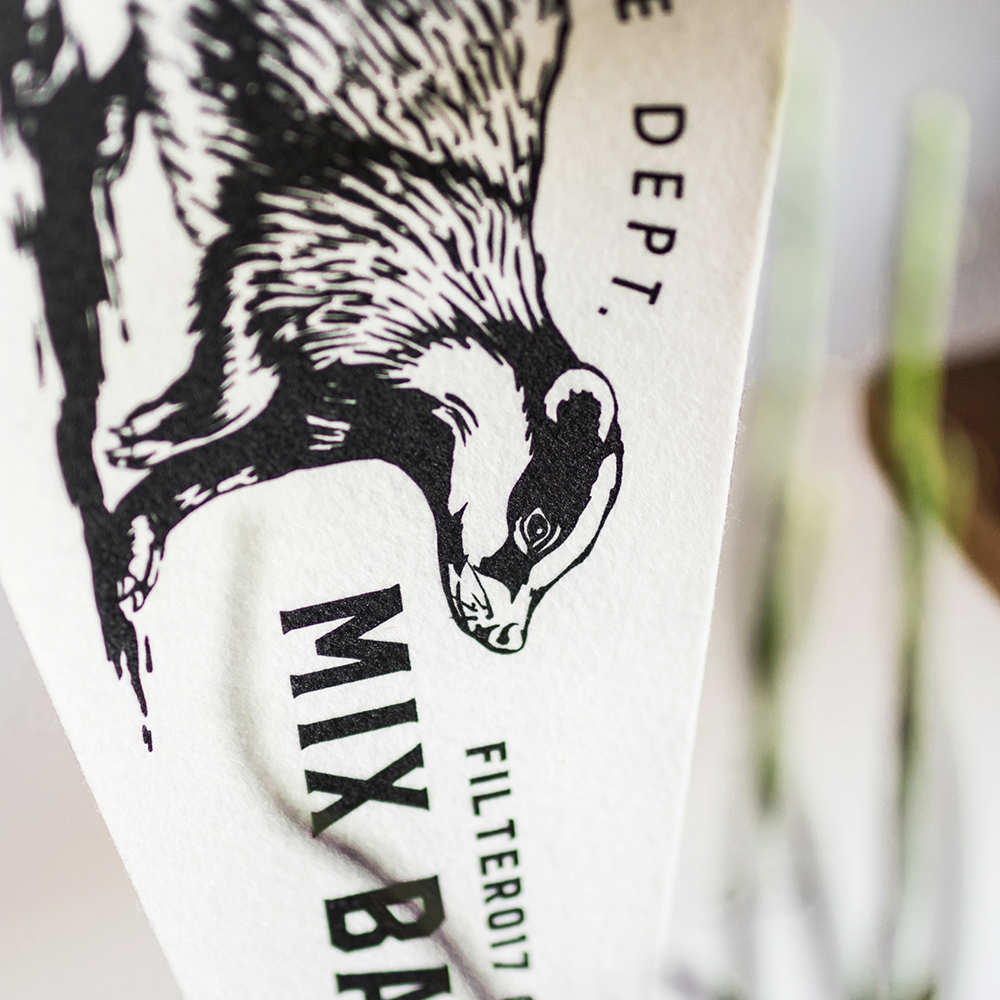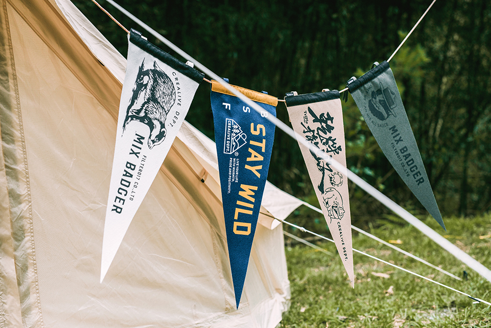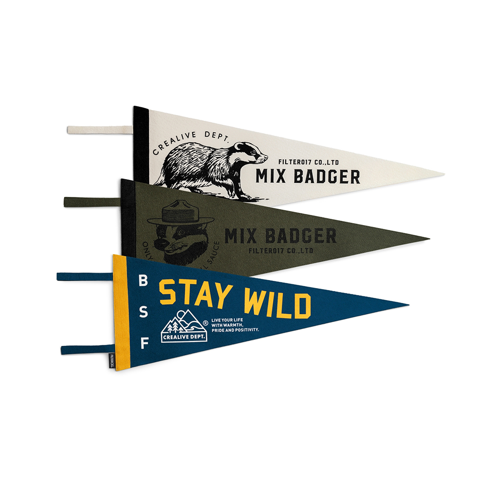 象徵獨立與團結的品牌精神動物角色 -「米斯獾」系列圖像裝飾三角旗,經典再重現。