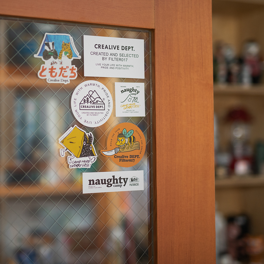本次FILTER017將極具品牌代表性的山峰標誌圖像,以網版印刷方式呈現於高品質之 PVC 材質貼紙中,與一般貼紙相較更為防水、抗撕、耐用、不殘膠且抗 UV 不易褪色,為INOUT質感生活增添亮眼點綴。