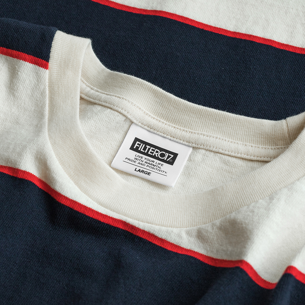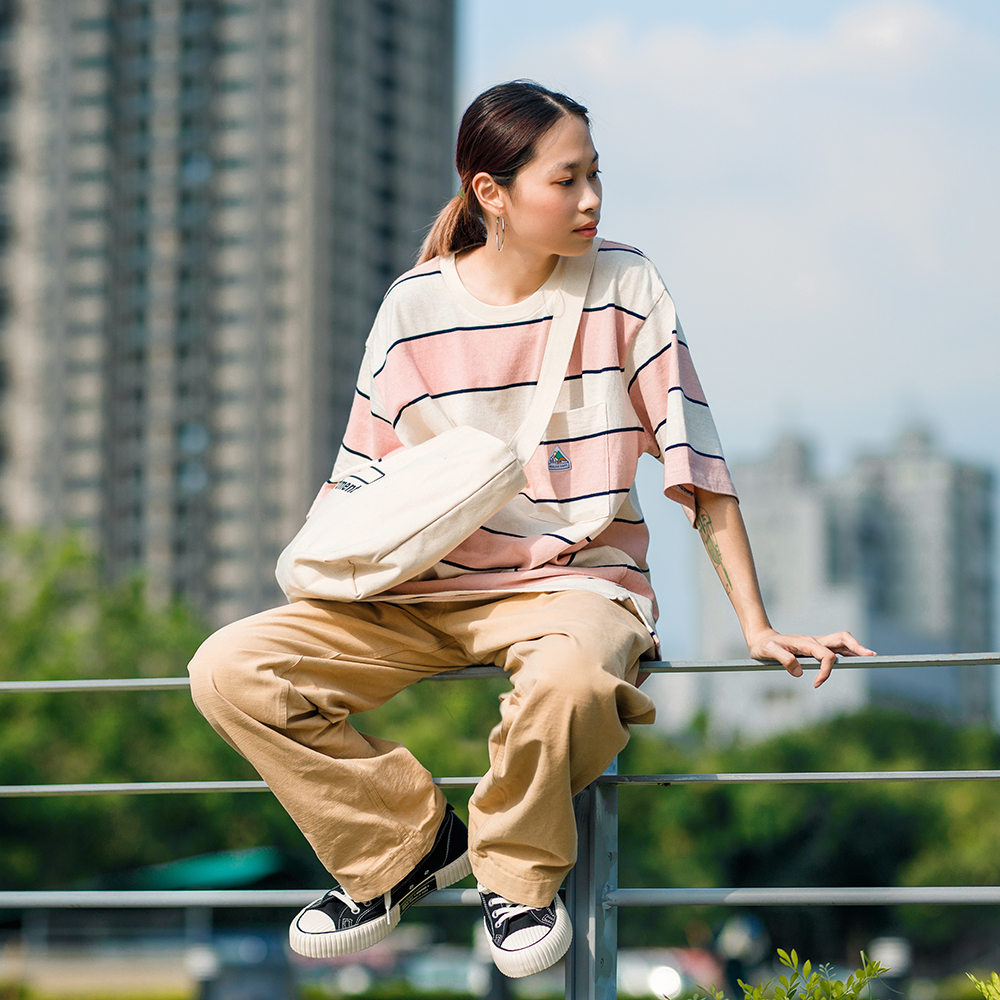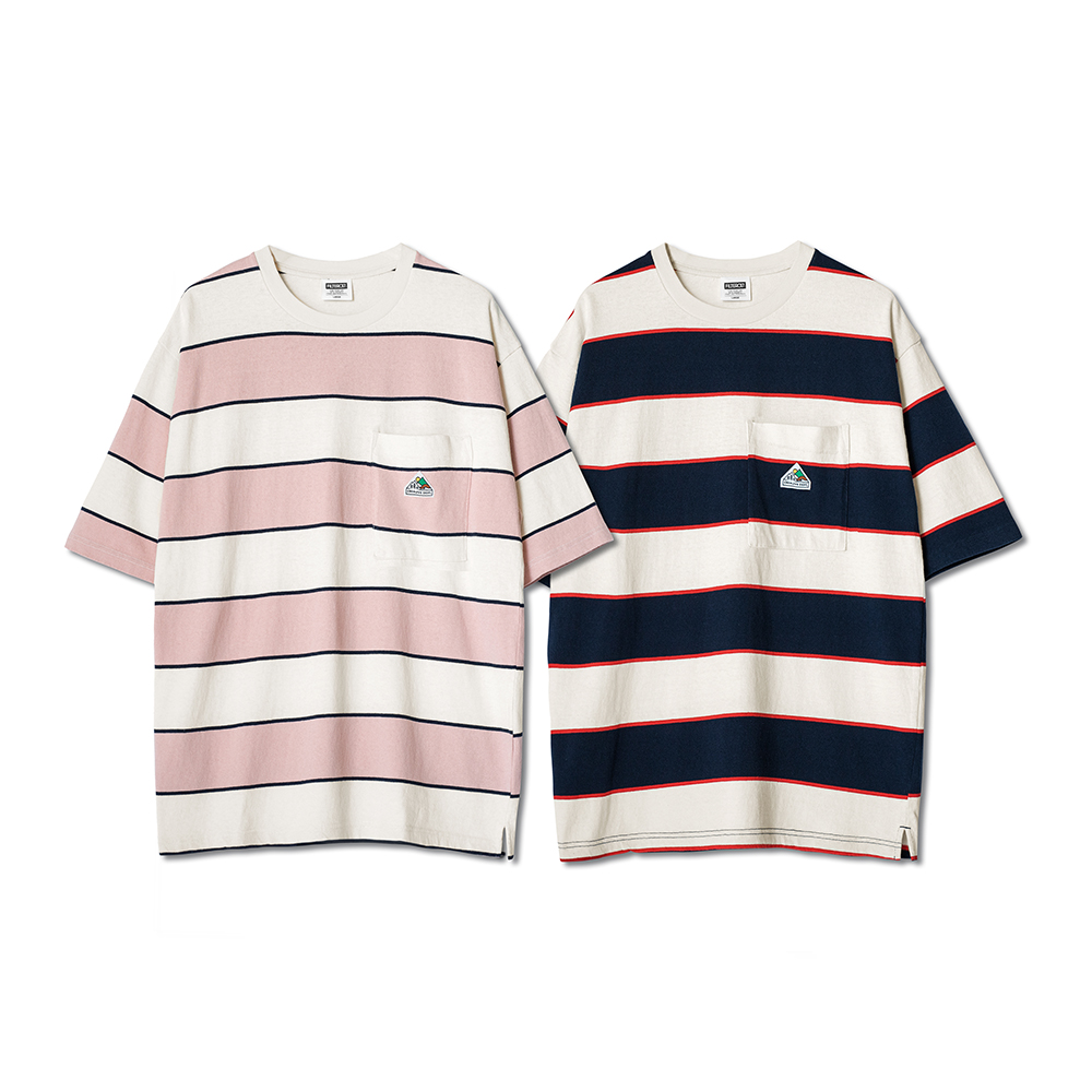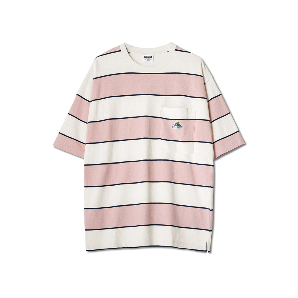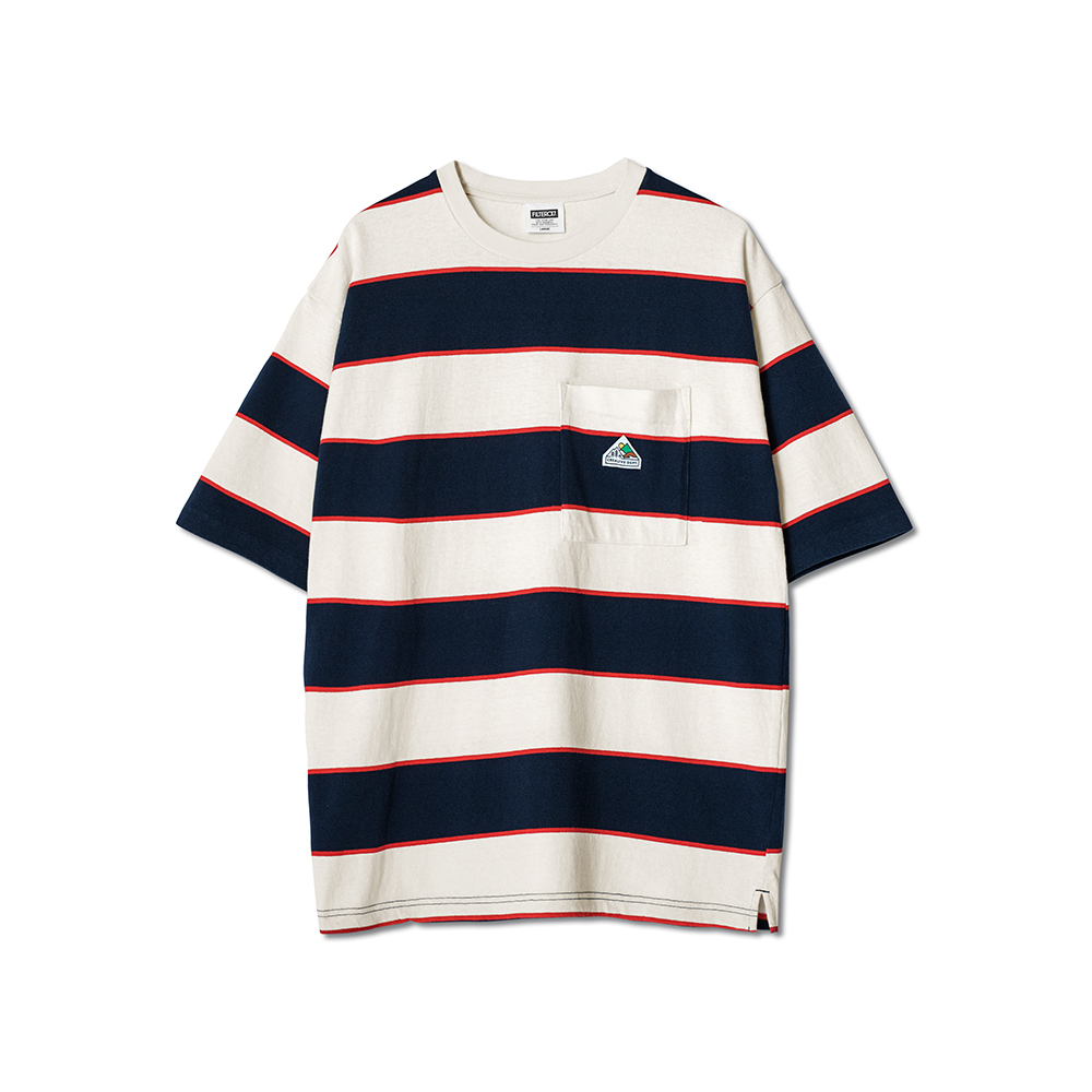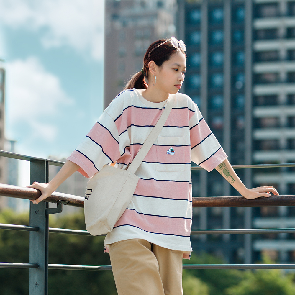 山峰標誌寬版落肩條紋口袋Tee