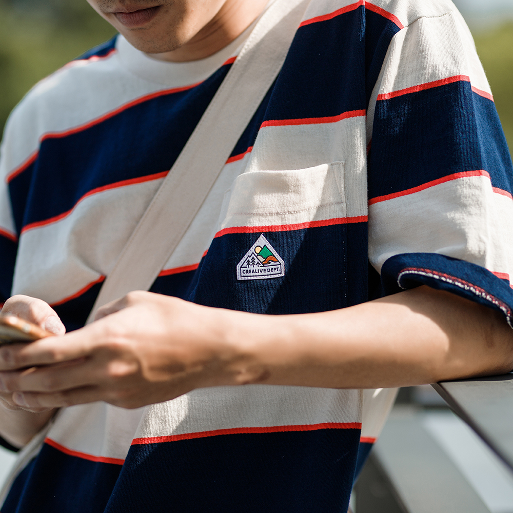 Filter017 CREALIVE DEPT. Mountain Peak Logo Striped Pocket Tee