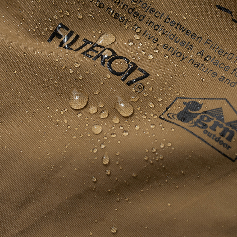 棉紗混合横向尼龍而成的面料,不僅保留了棉料的舒適手感 ,面料經鐵氟龍塗層處理後,更大幅提升了整體的防潑水和抗汙機能。