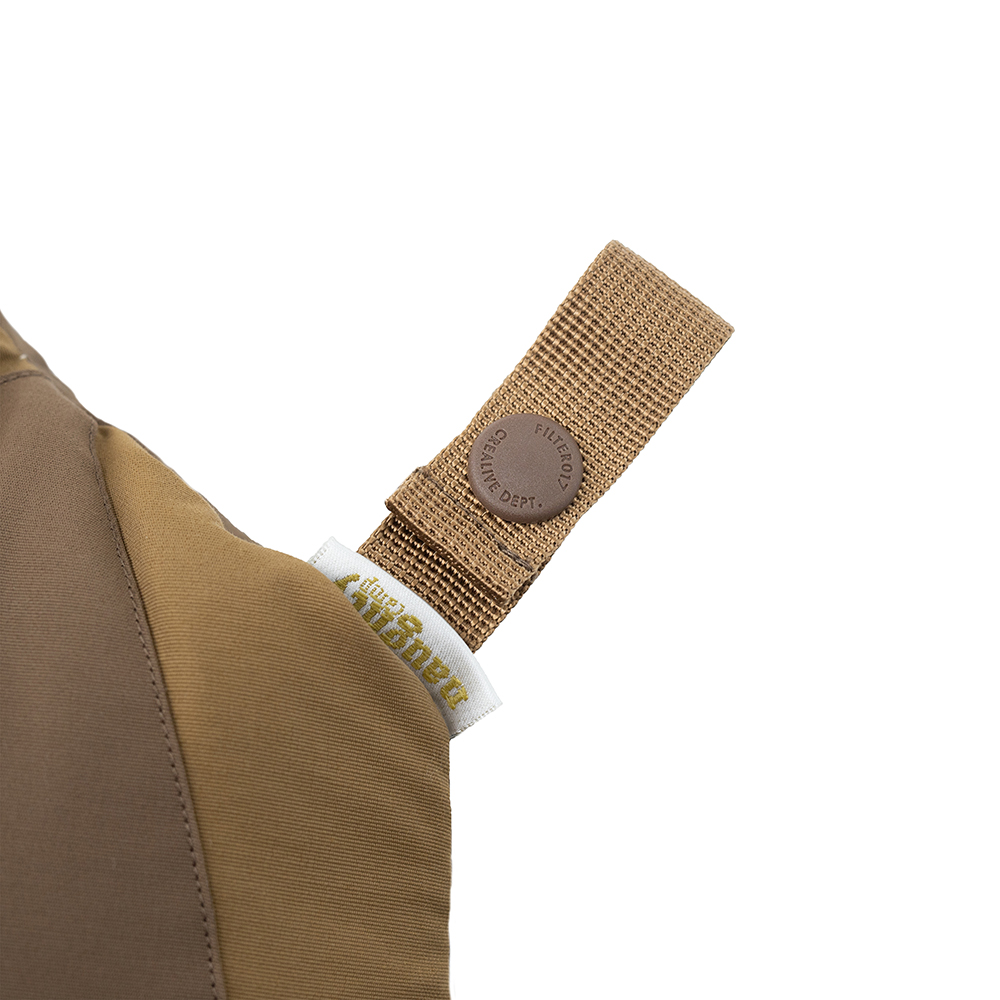 棉紗混合横向尼龍而成的面料,不僅保留了棉料的舒適手感 ,面料經鐵氟龍塗層處理後,更大幅提升了整體的防潑水和抗汙機能。