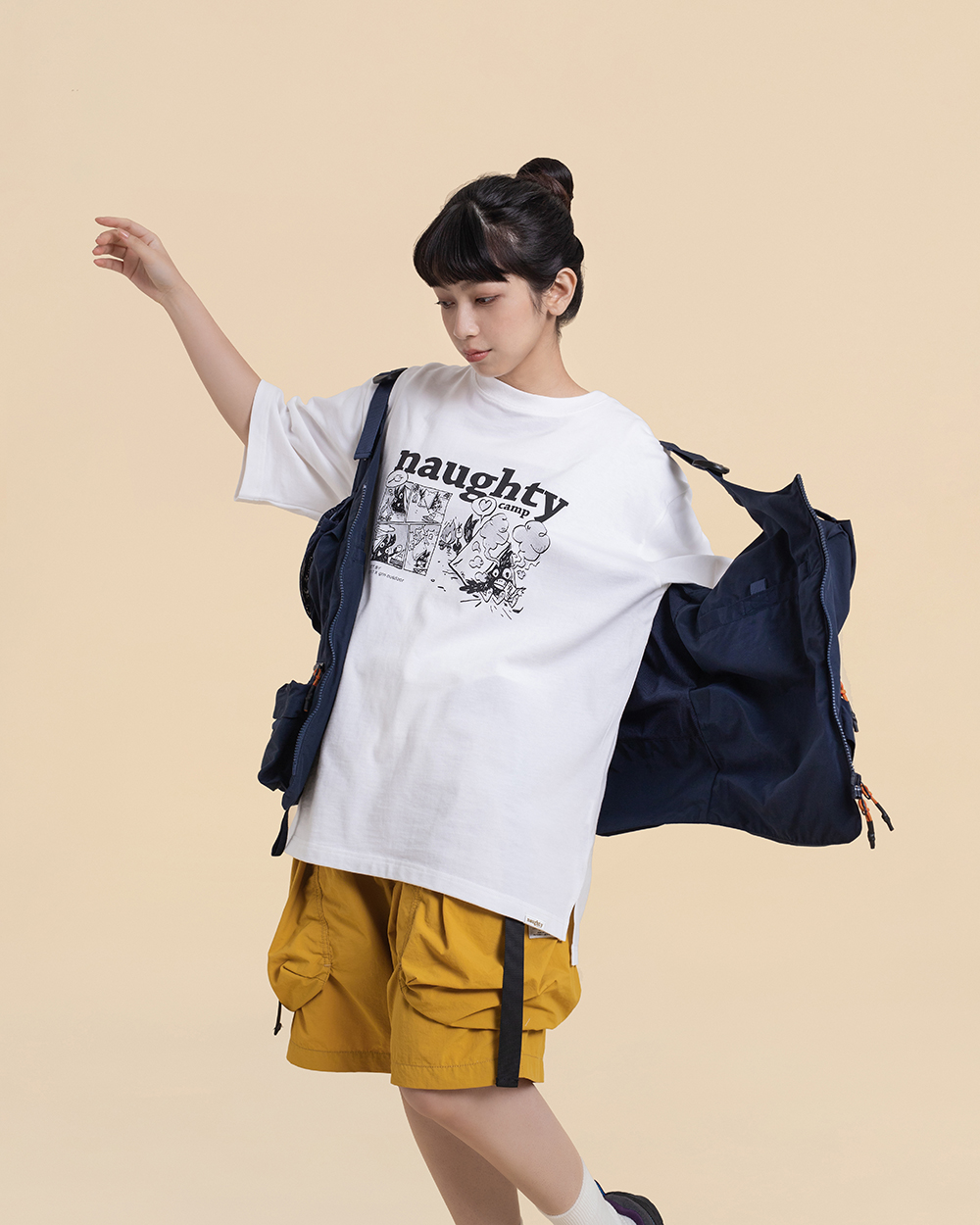 藉由品牌所擅長的混合元素手法,以美式復古報紙連環漫畫的創作風格與筆觸,闡述NAUGHTY CAMP營地中奇異生物所發生的有趣事件。