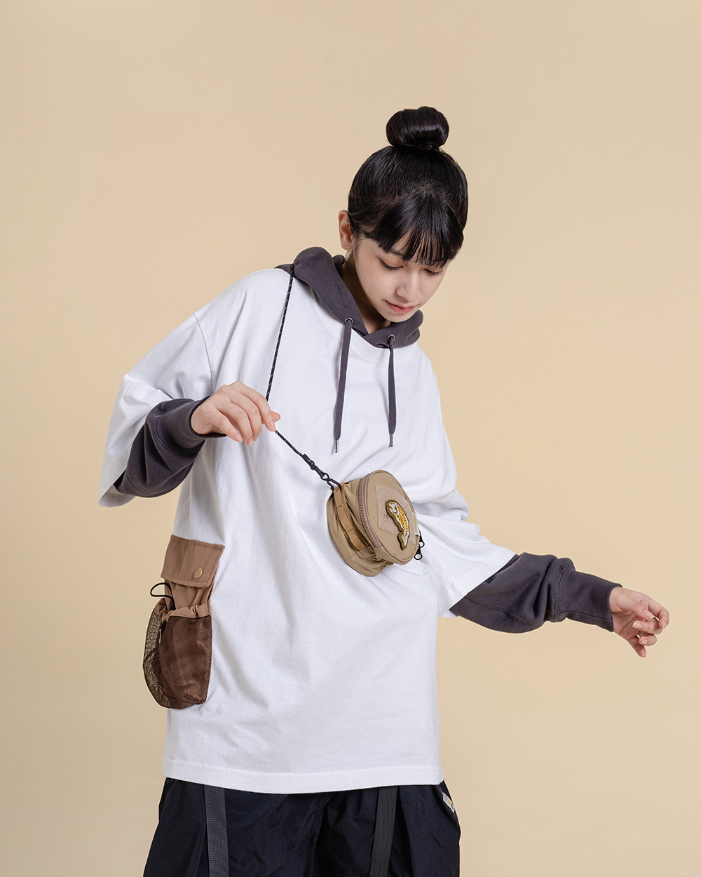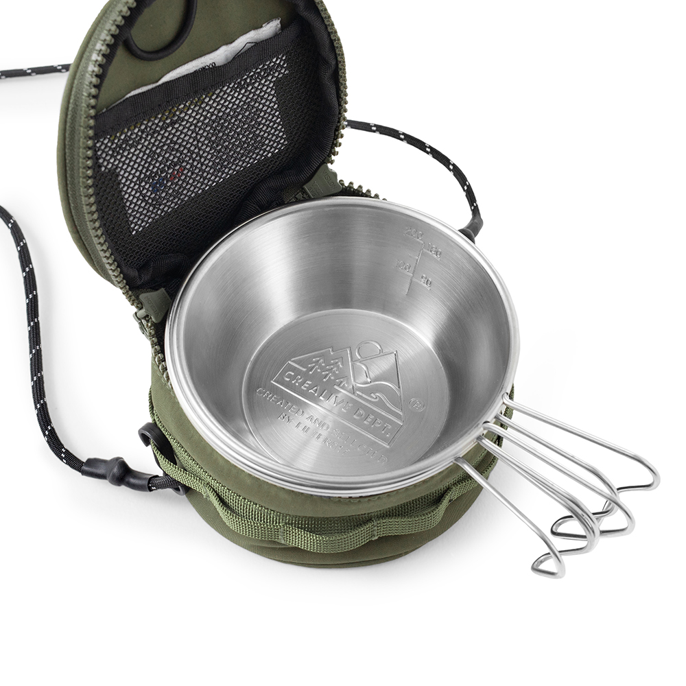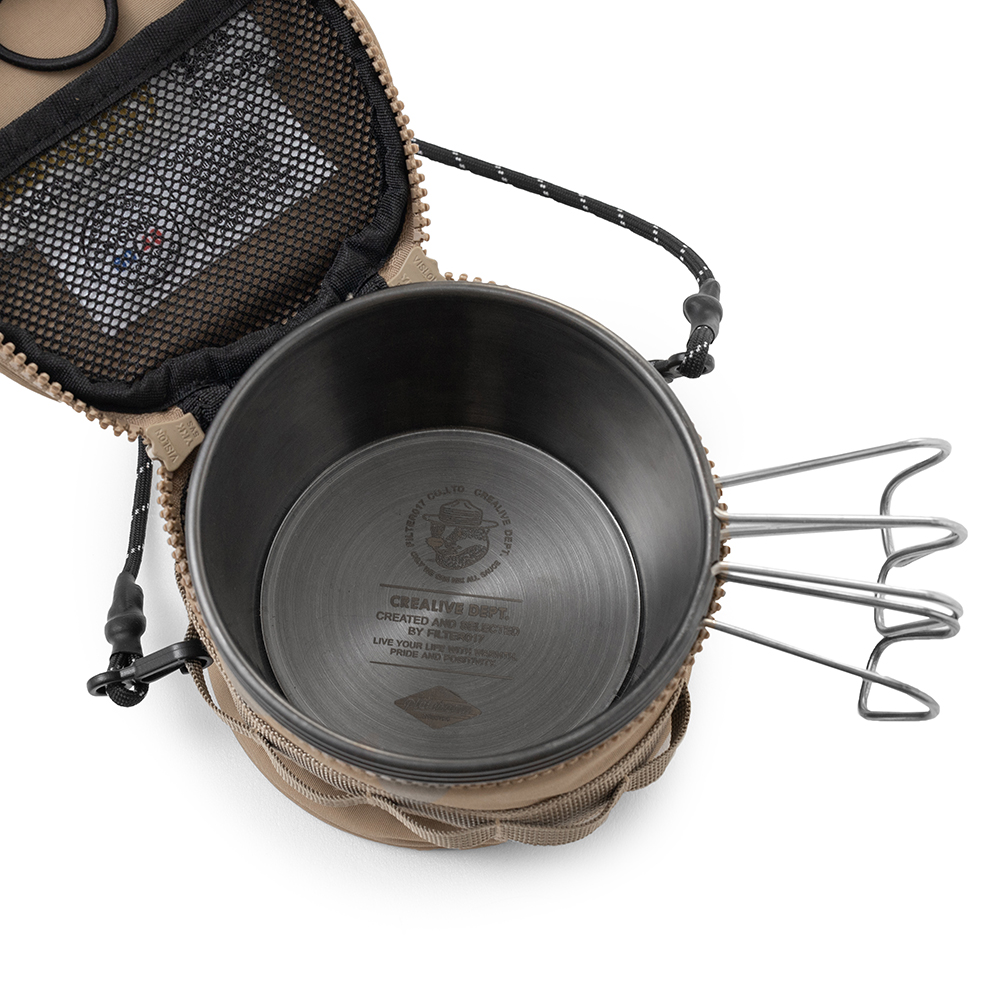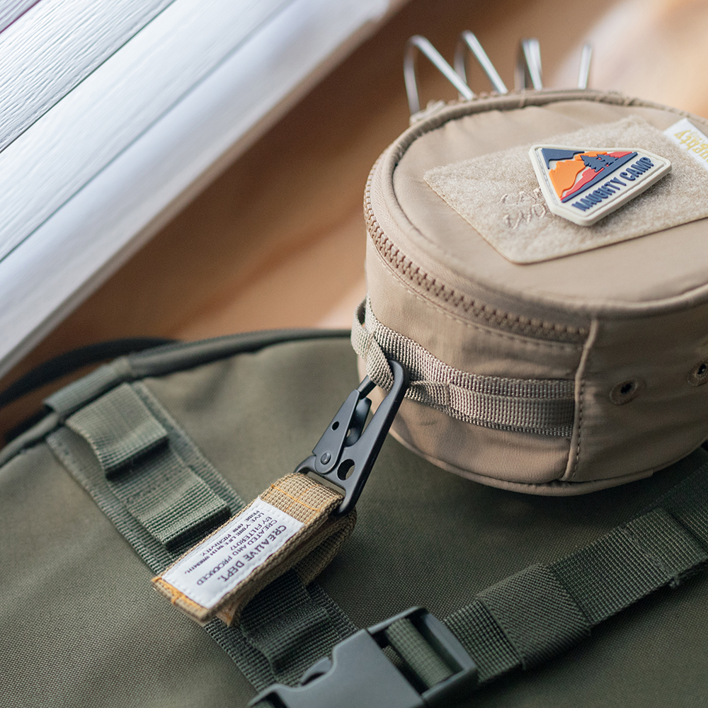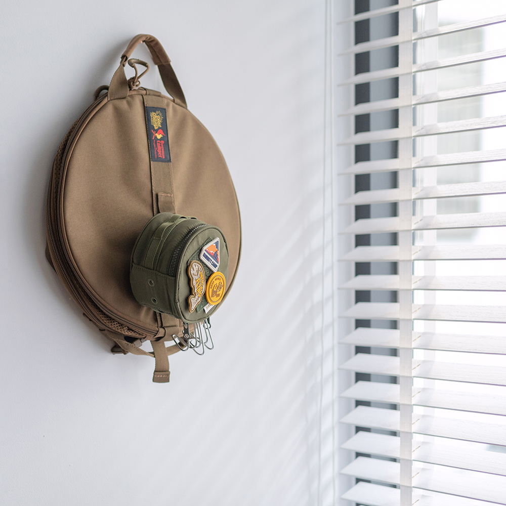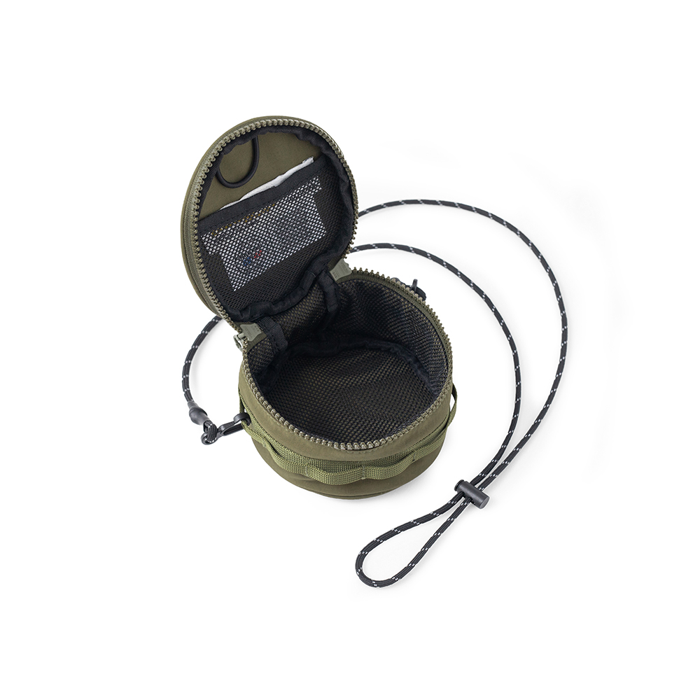 可剛好收納480ML尺寸提耳碗或是各式隨身小物的小巧體積,並利用包款所規劃的背帶、扣具和MOLLE 系統,於不同場合間任意攜帶、掛載使用。