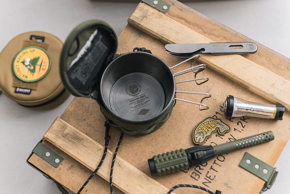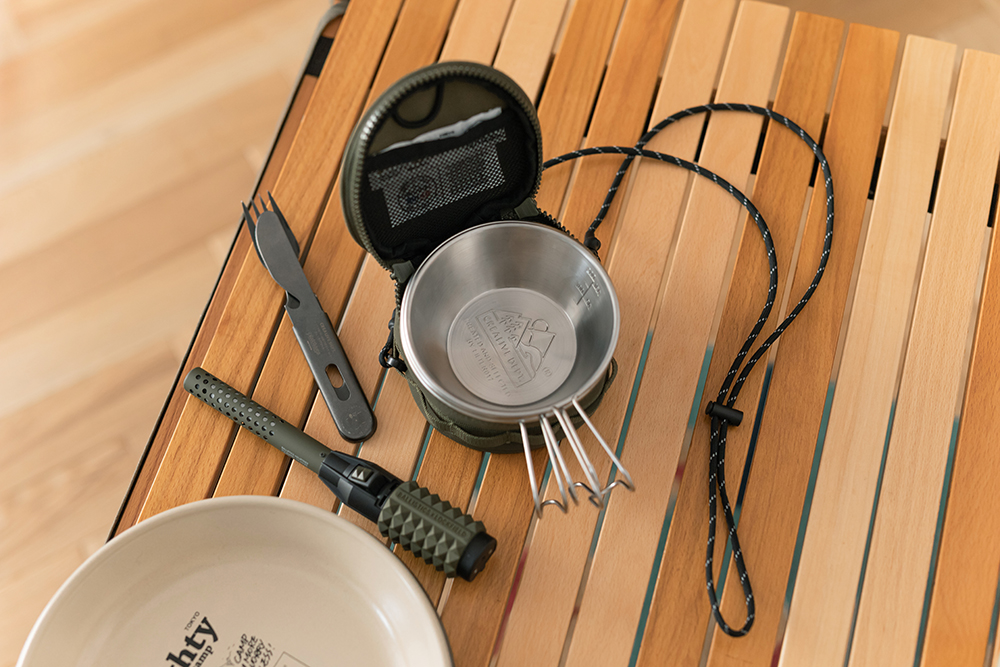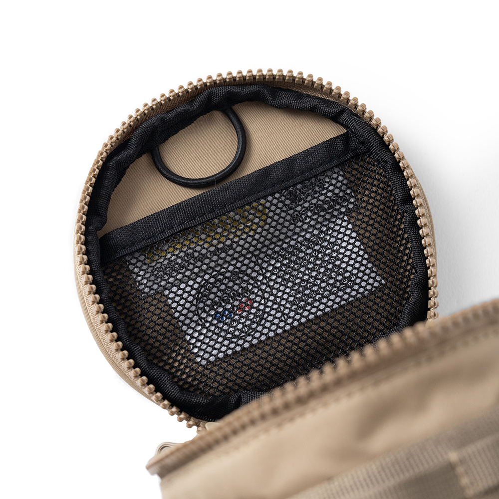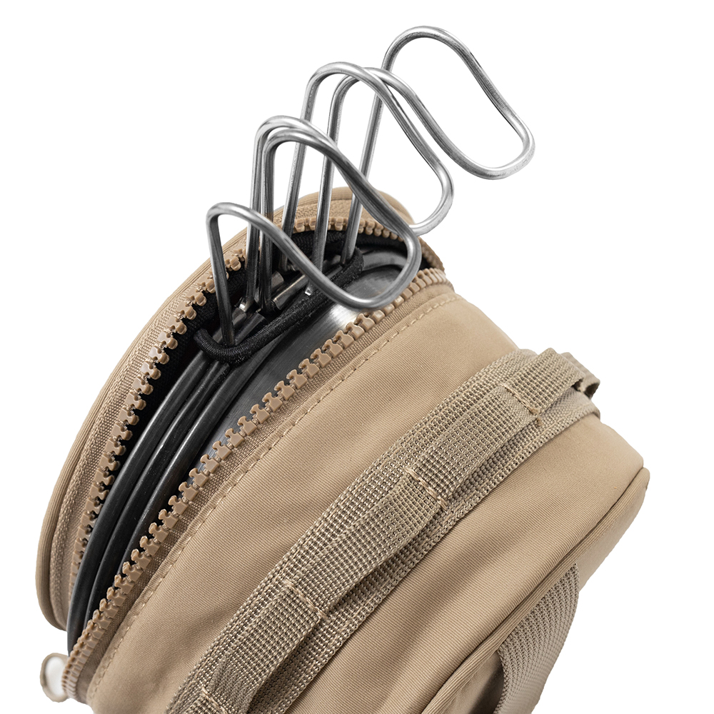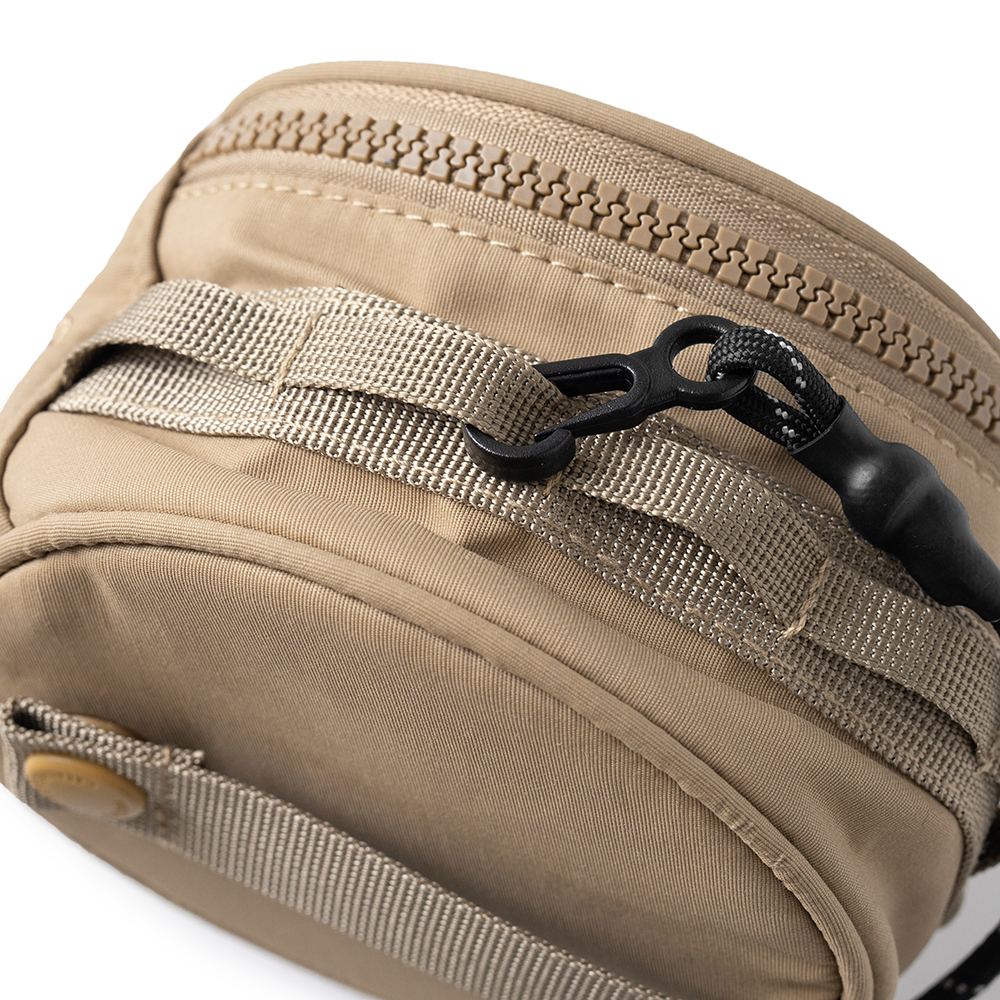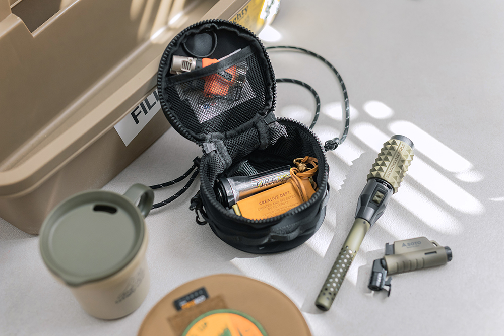 可剛好收納480ML尺寸提耳碗或是各式隨身小物的小巧體積,並利用包款所規劃的背帶、扣具和MOLLE 系統,於不同場合間任意攜帶、掛載使用。