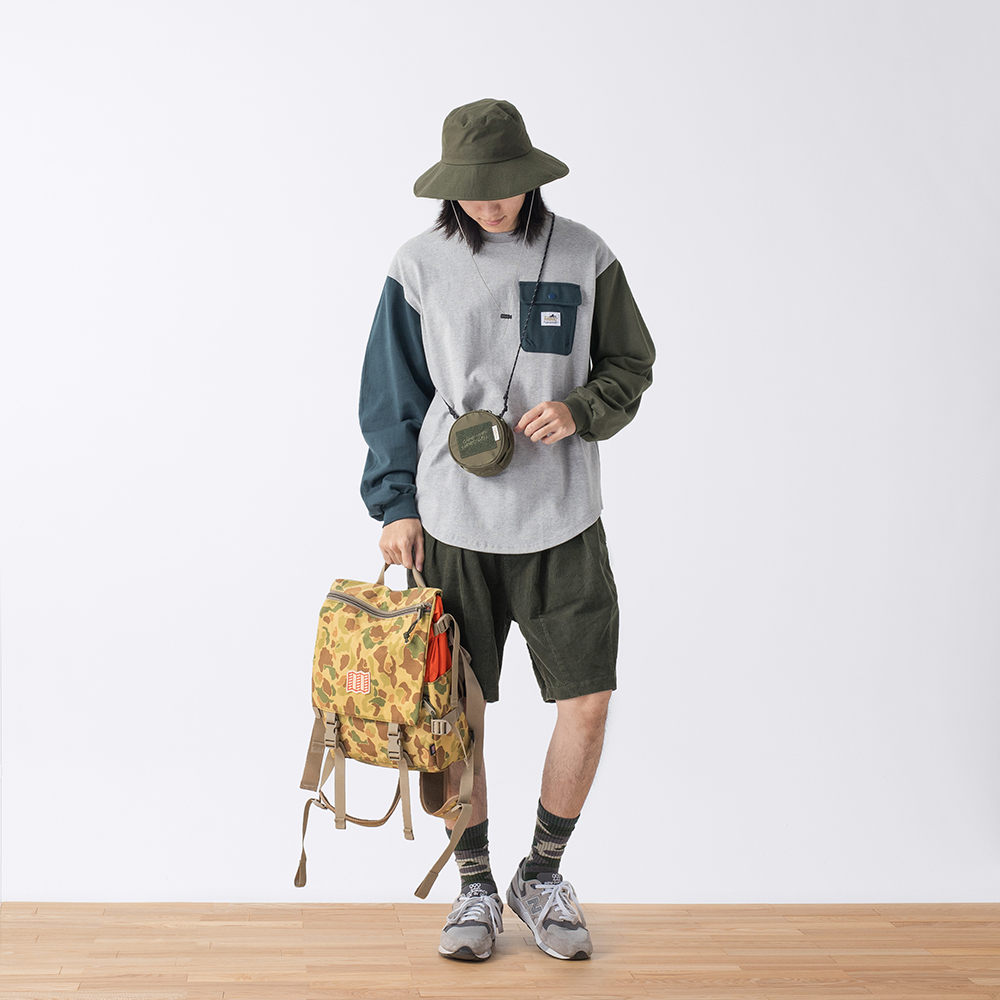 考究70年代戶外機能服飾,並重新開發改良由60%直向棉紗混合40%橫向尼龍而成的「60/40」混紡面料,除保留了棉料親膚透氣的特性,經環保認證的Teflon EcoElite™鐵氟龍塗層加工,更大幅增強了包款的防潑水、抗汙的機能性。
