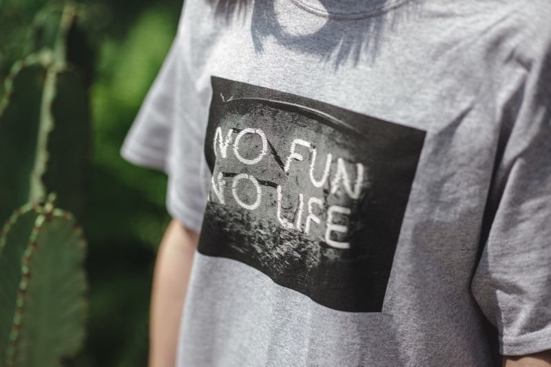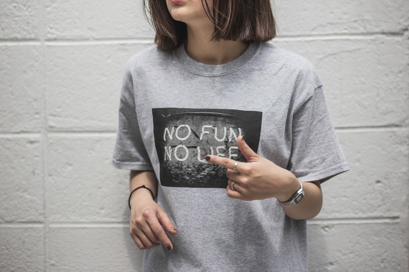'NO FUN NO LIFE.',意味著生活之中時時需要找尋新鮮的樂子,別讓人生乏味無趣,