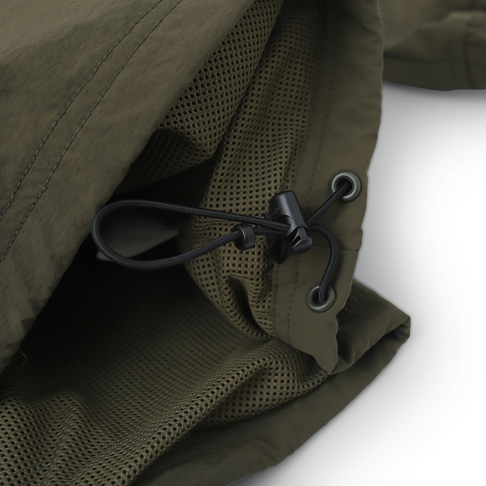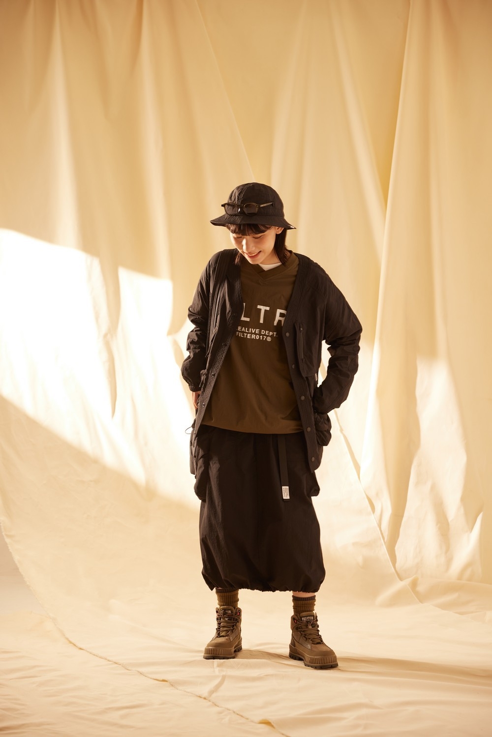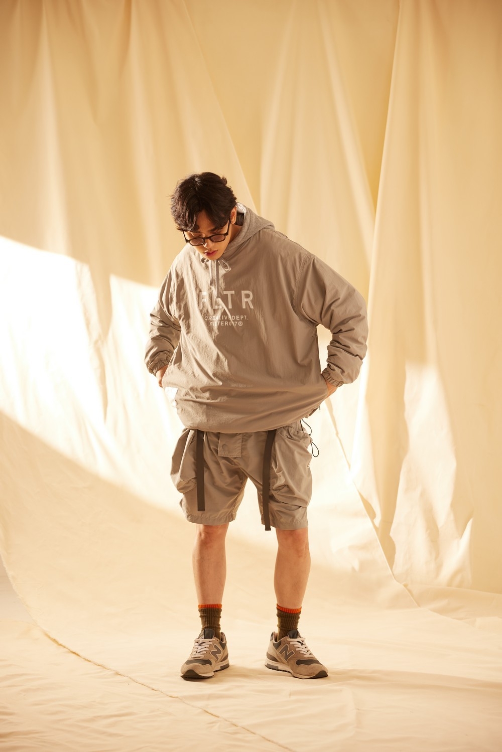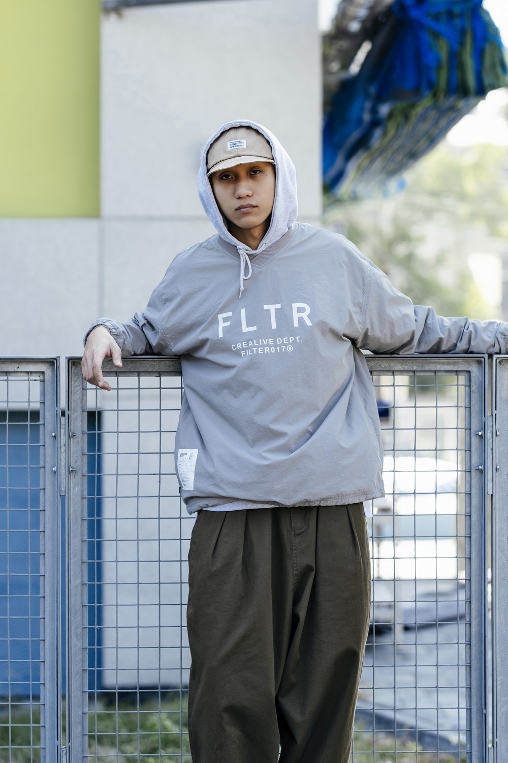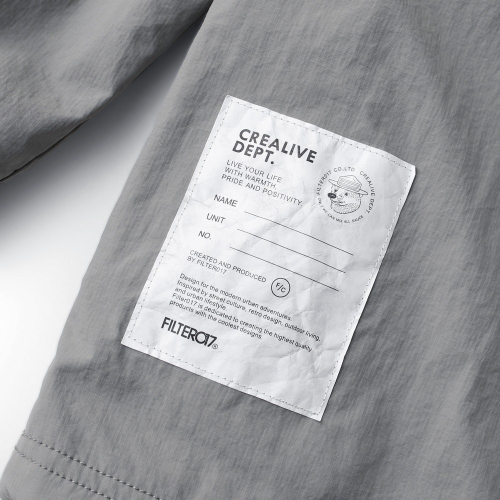 本體兩側透氣開孔,脇邊搭載YKK®拉鍊隱藏式口袋,於日常穿著更為舒適便利,下擺輔以彈性抽繩調節系統,可依照活動與搭配考量做出不同變化。細節與視覺識別上以訂製杜邦™ Tyvek® 材質印製的品牌標籤,整體呈現帶有Filter017品牌獨到詮釋的戶外氛圍語彙,於流行容易搭配的軍事工裝視覺基礎下,加以揉合軟調性質與元素,有別於一般過於硬核的軍工風格。