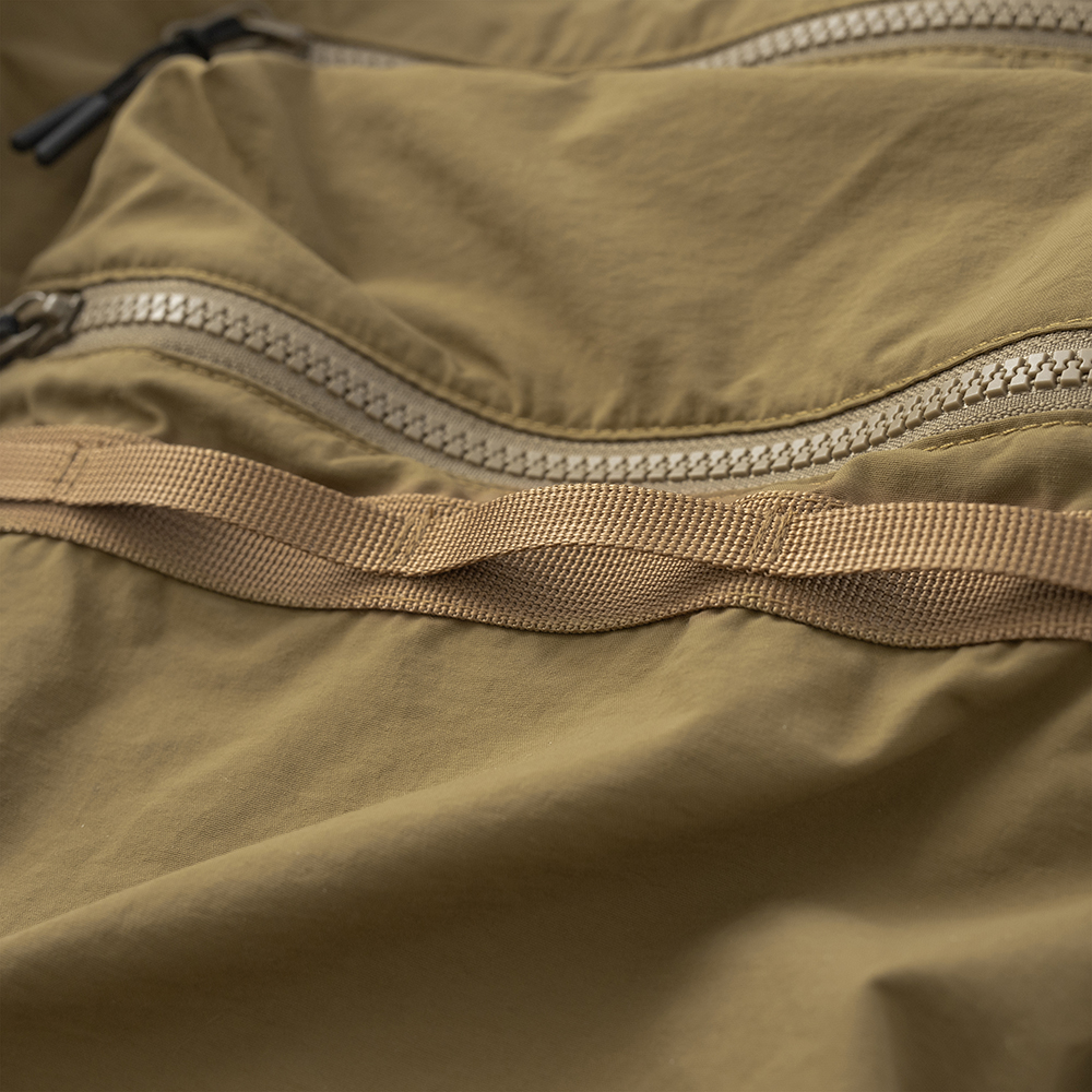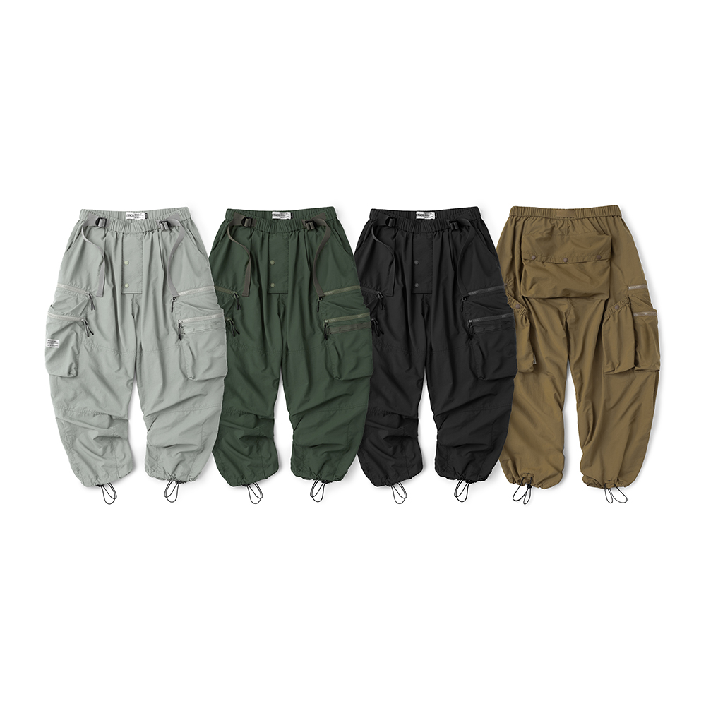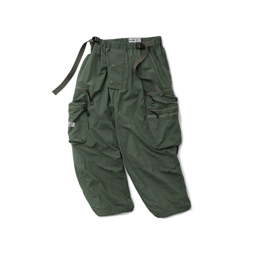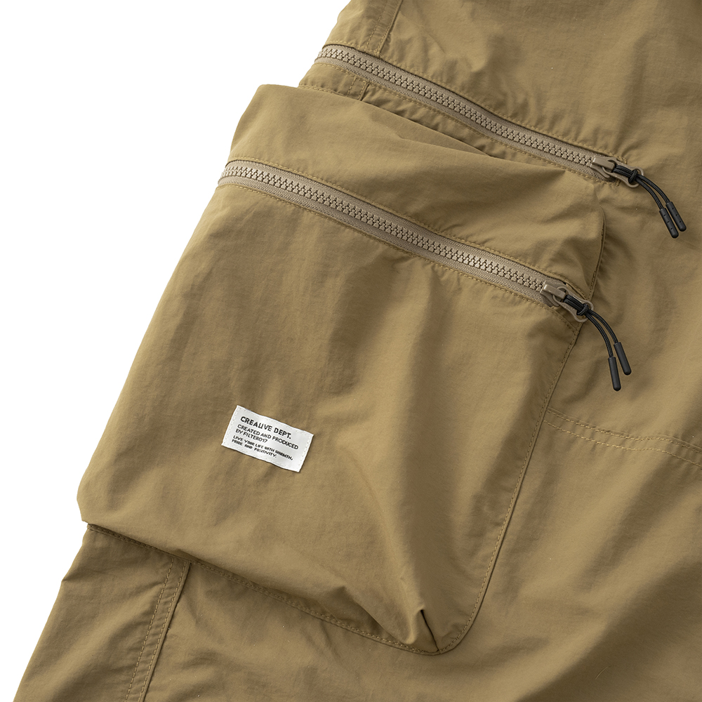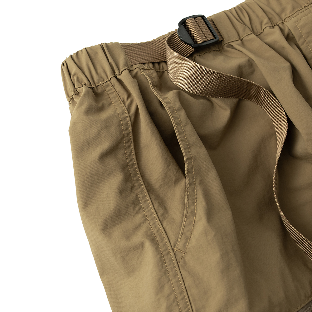 材質上以品牌特別獨立開發,具備防風、輕量、不貼身之特性的洗皺尼龍面料進行製作,並以 Teflon 鐵氟龍認證塗層加工,大幅增強防潑水、抗汙的機能特性,搭配寬鬆輪廓的褲型設計和腰部隱藏式束繩的細節設定,無論戶外活動或都市機能穿搭,皆能輕鬆展現舒適自在穿著體驗。