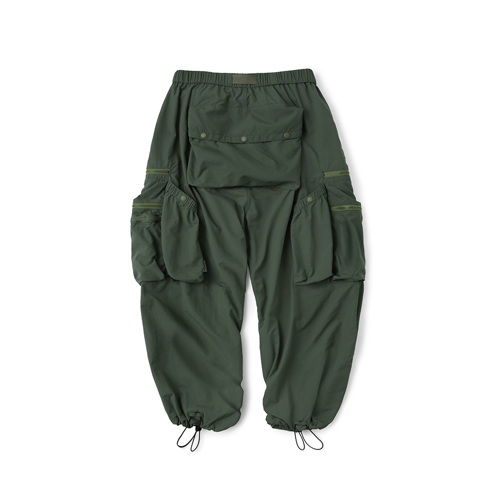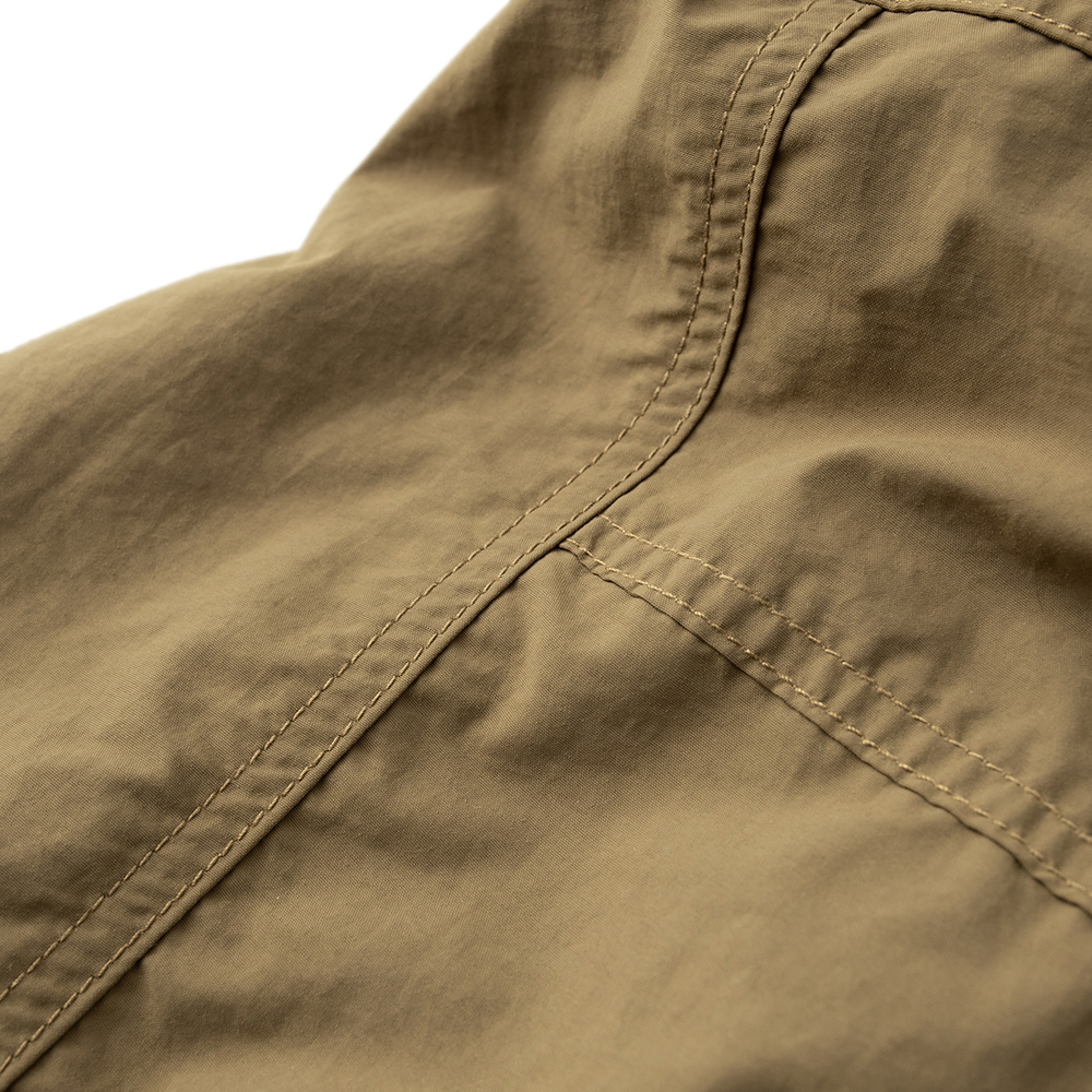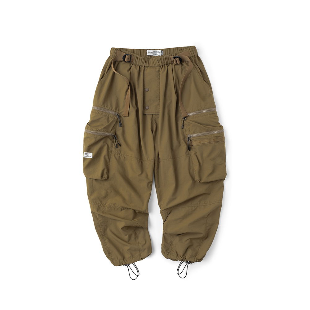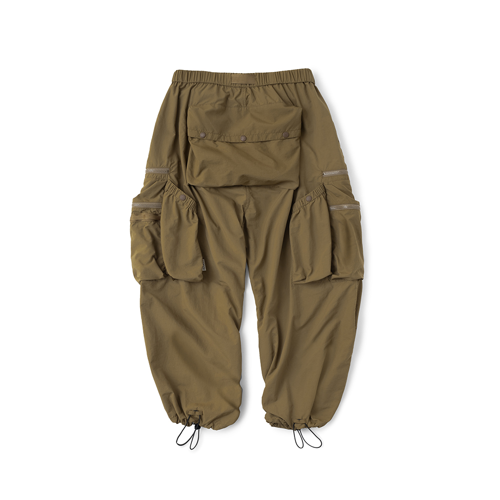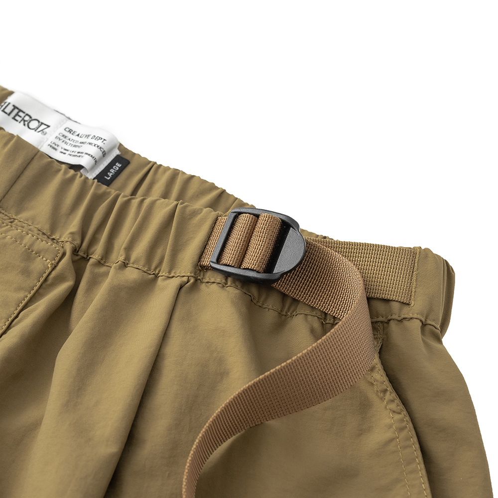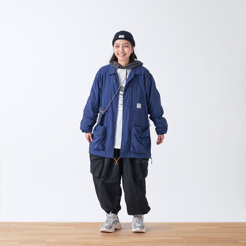 材質上以品牌特別獨立開發,具備防風、輕量、不貼身之特性的洗皺尼龍面料進行製作,並以 Teflon 鐵氟龍認證塗層加工,大幅增強防潑水、抗汙的機能特性,搭配寬鬆輪廓的褲型設計和腰部隱藏式束繩的細節設定,無論戶外活動或都市機能穿搭,皆能輕鬆展現舒適自在穿著體驗。