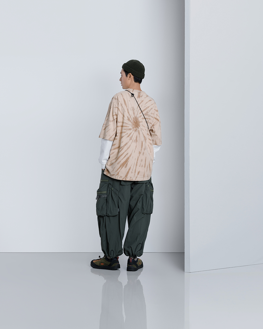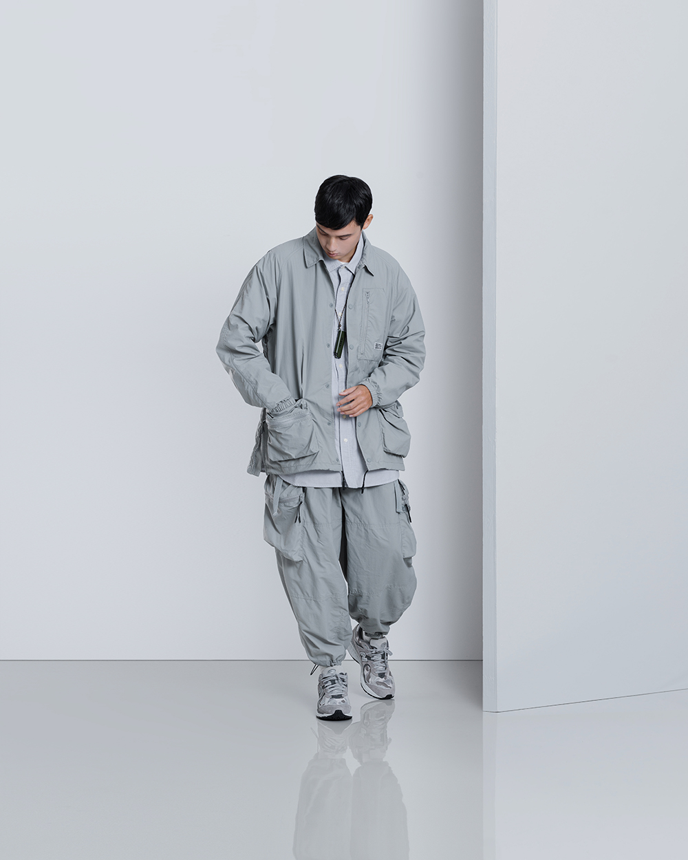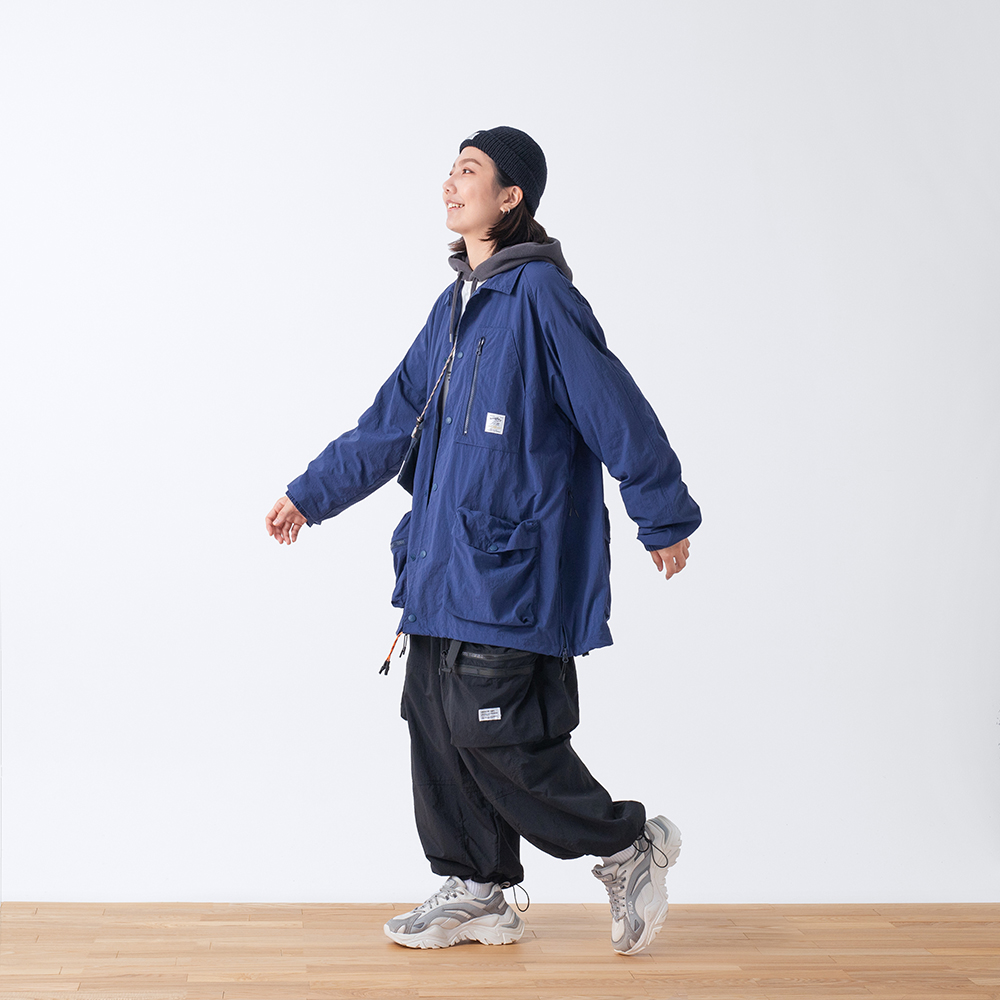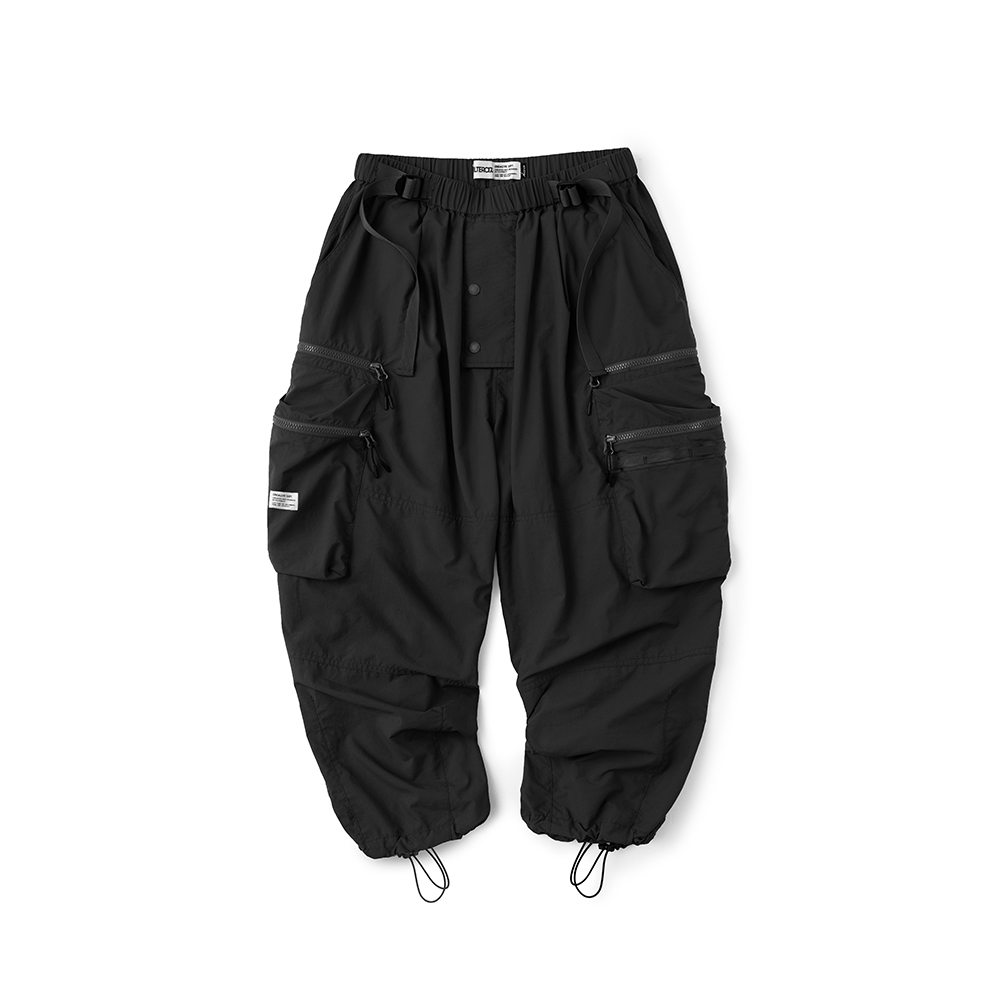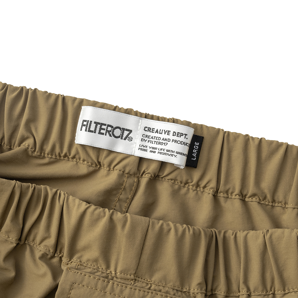 材質上以品牌特別獨立開發,具備防風、輕量、不貼身之特性的洗皺尼龍面料進行製作,並以 Teflon 鐵氟龍認證塗層加工,大幅增強防潑水、抗汙的機能特性,搭配寬鬆輪廓的褲型設計和腰部隱藏式束繩的細節設定,無論戶外活動或都市機能穿搭,皆能輕鬆展現舒適自在穿著體驗。