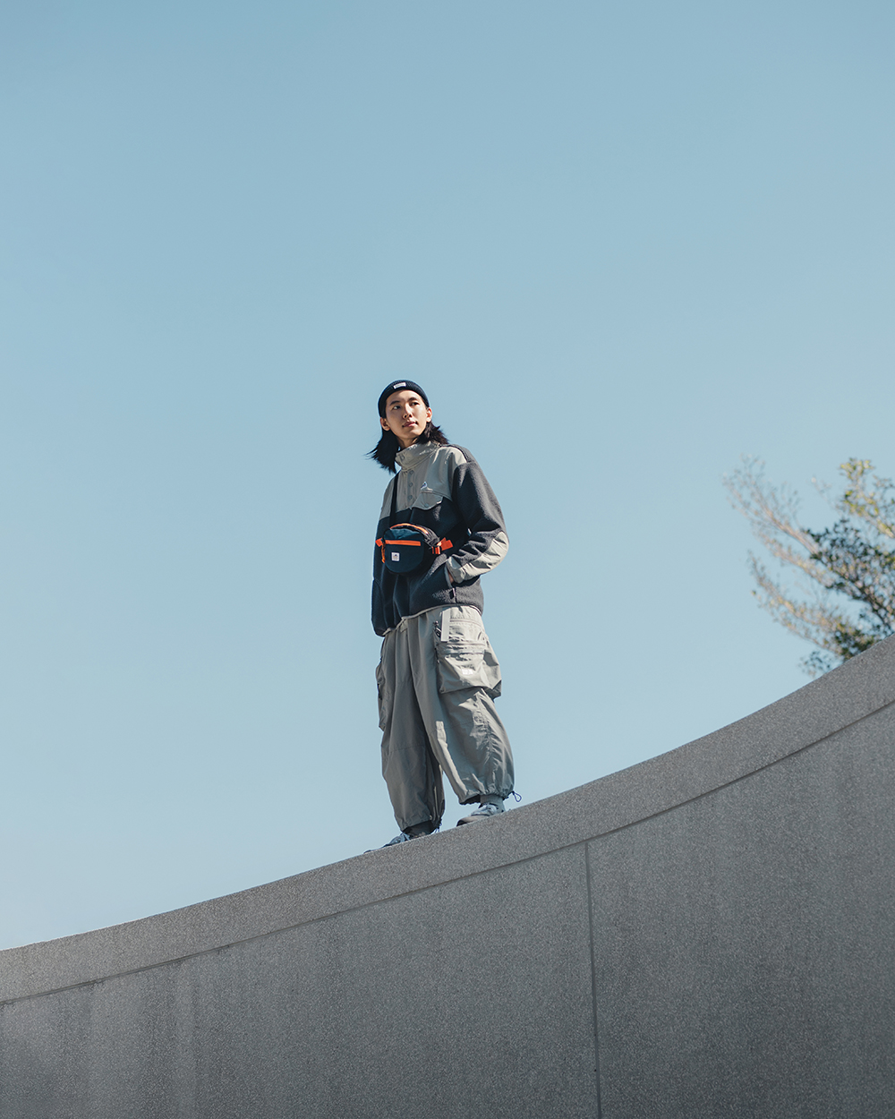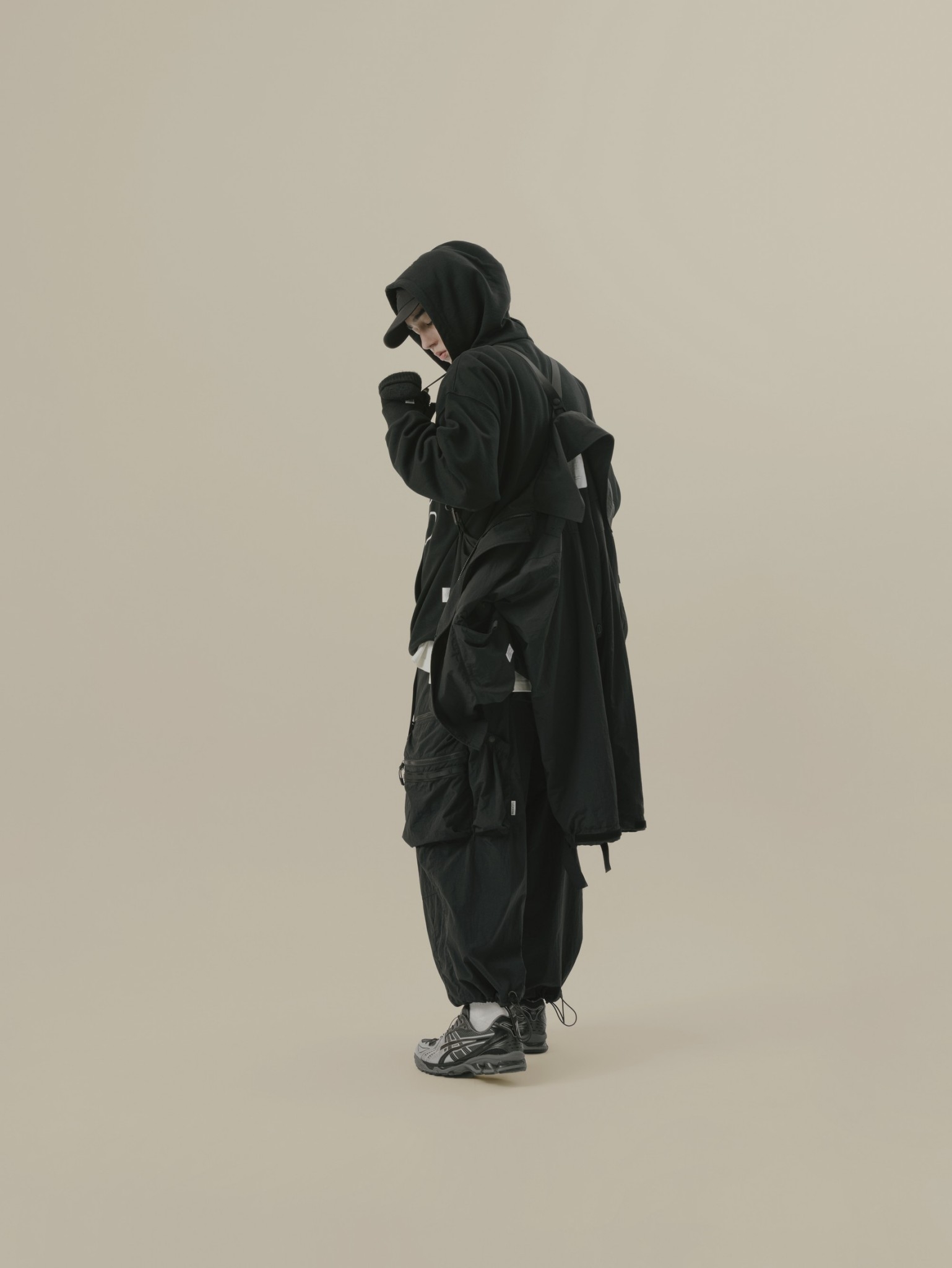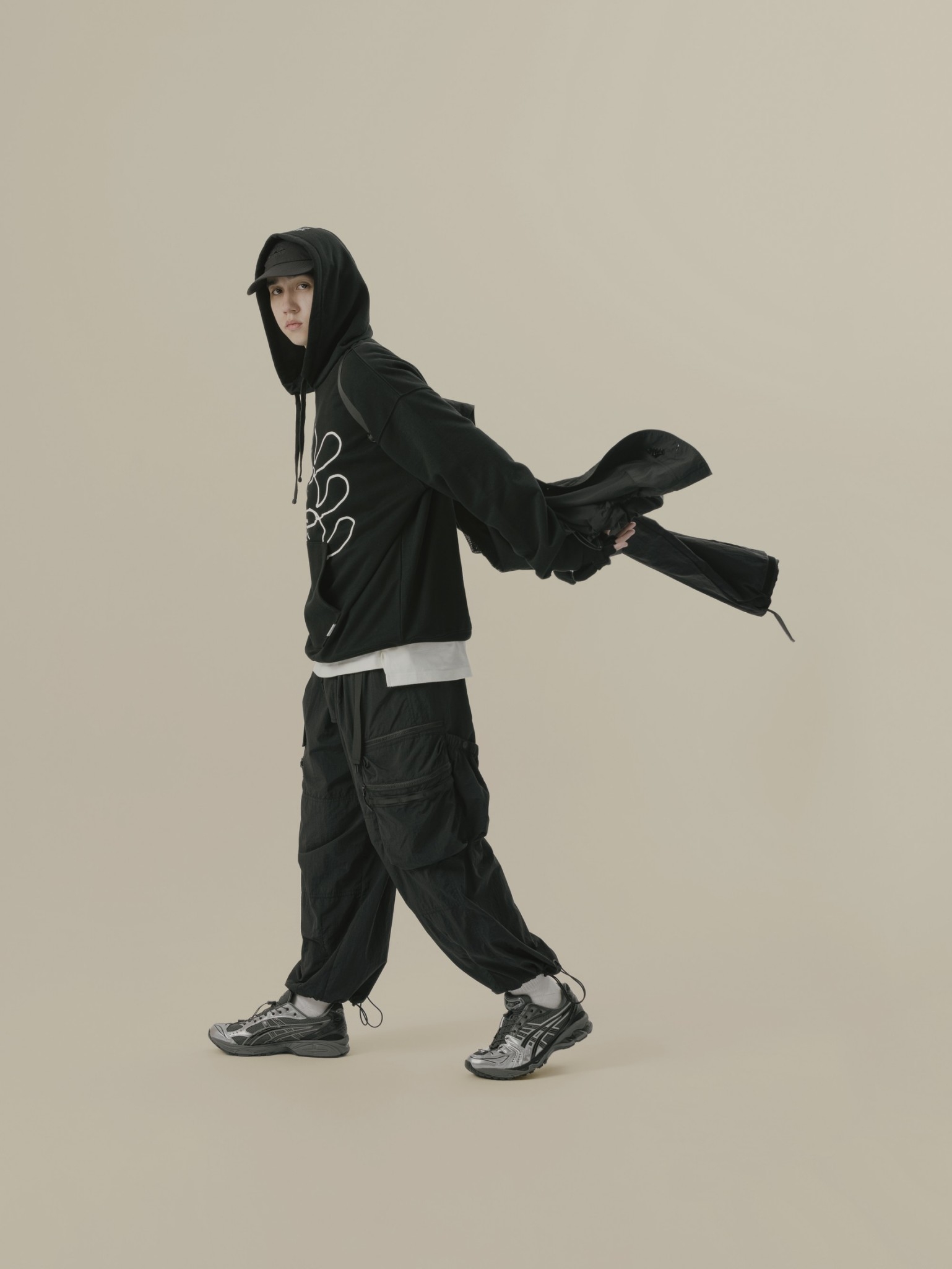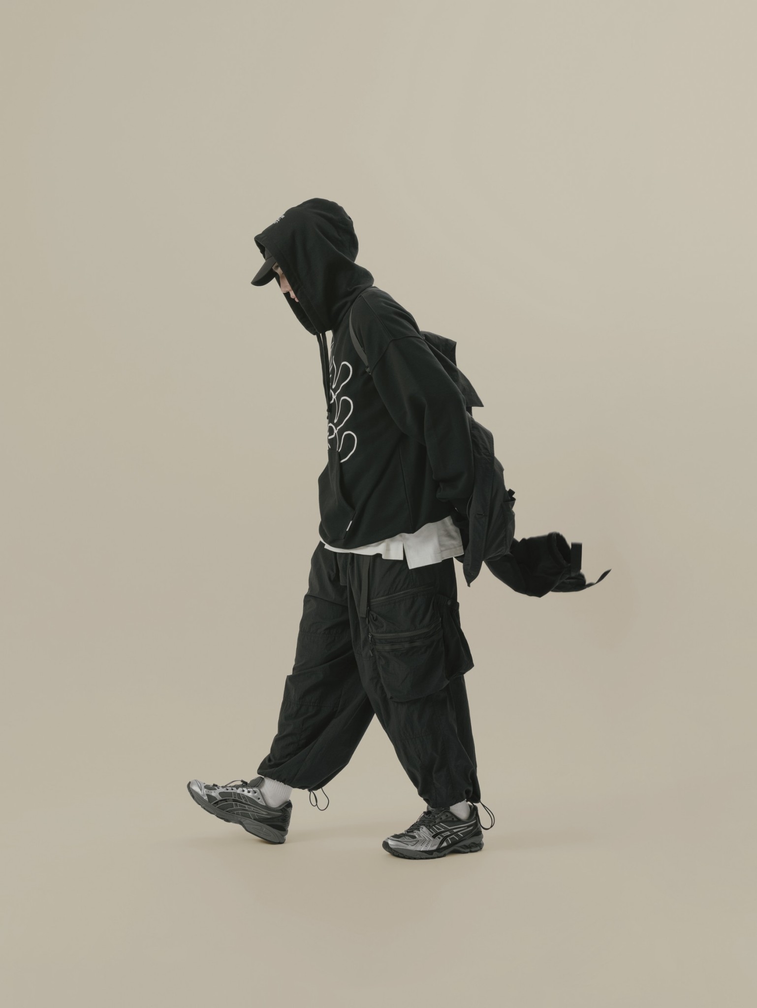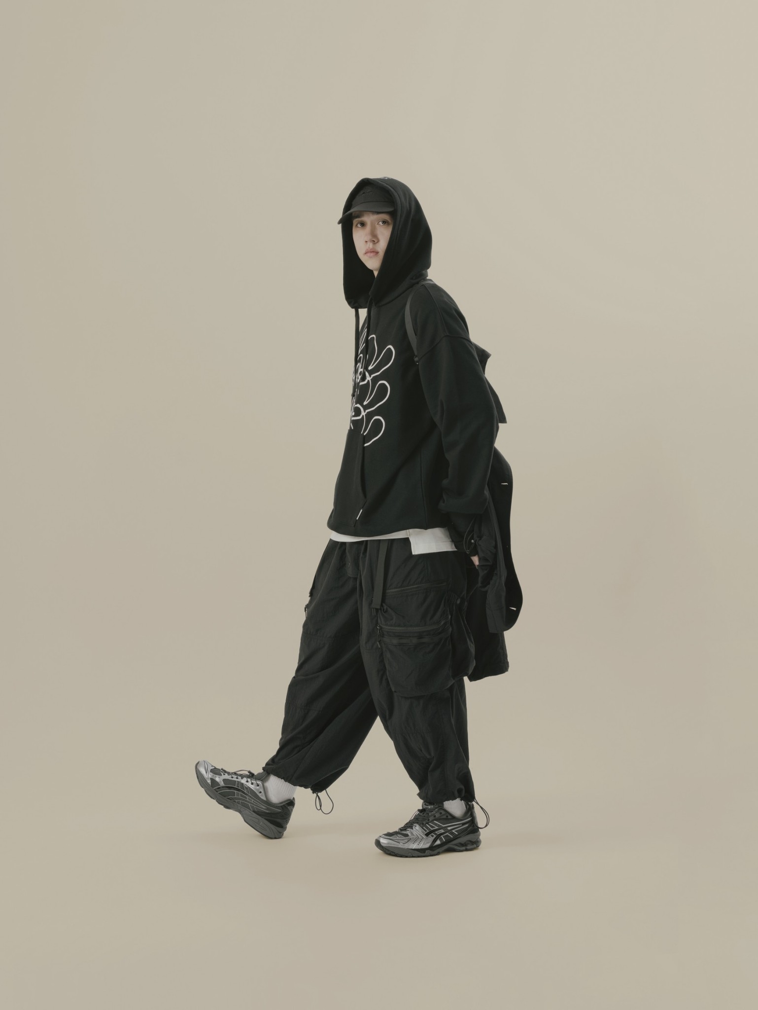 材質上以品牌特別獨立開發,具備防風、輕量、不貼身之特性的洗皺尼龍面料進行製作,並以 Teflon 鐵氟龍認證塗層加工,大幅增強防潑水、抗汙的機能特性,搭配寬鬆輪廓的褲型設計和腰部隱藏式束繩的細節設定,無論戶外活動或都市機能穿搭,皆能輕鬆展現舒適自在穿著體驗。