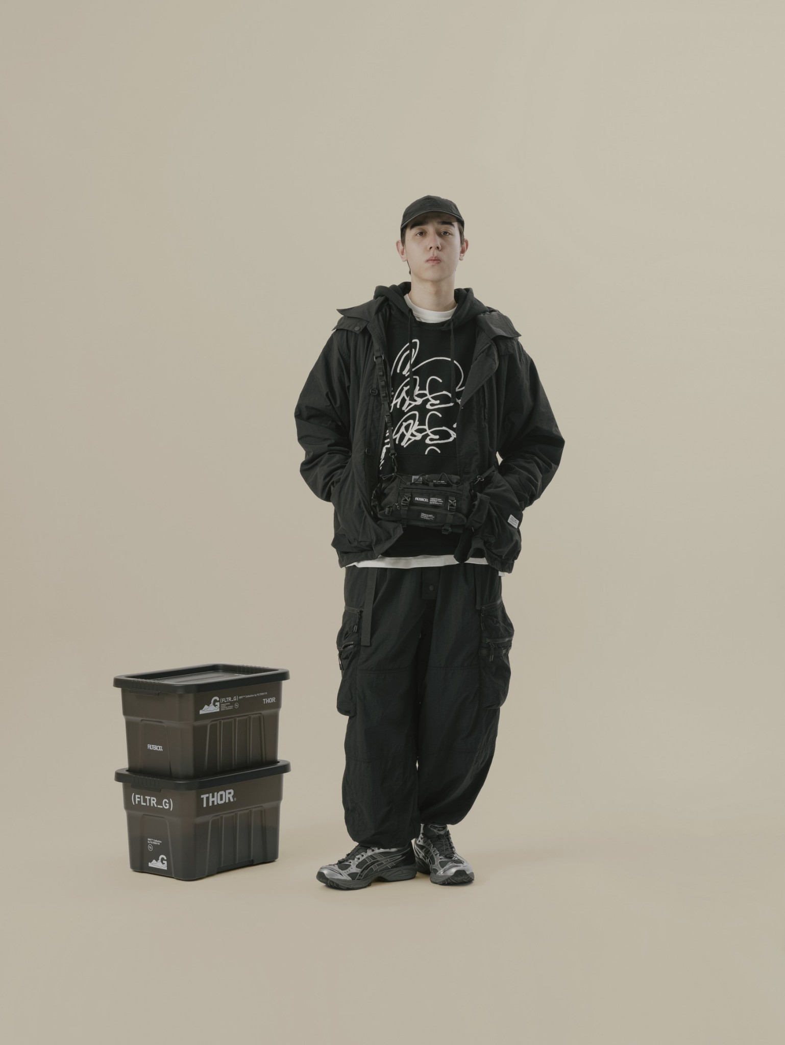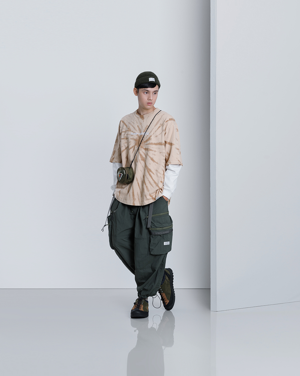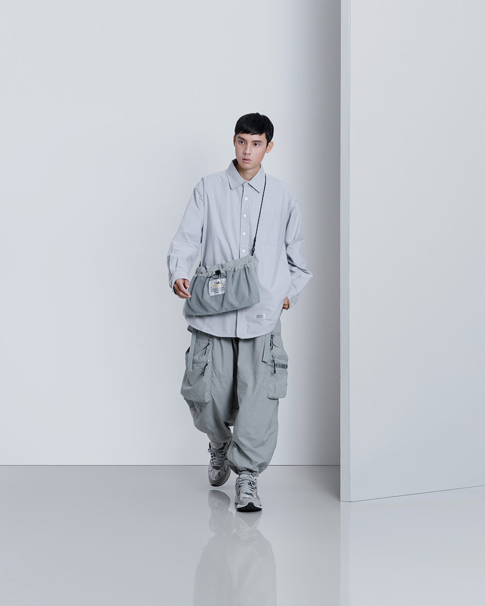 本次Filter017以美軍專為其海軍陸戰隊所開發的P44軍褲款式為基礎,並將近年復古流行的繭型氣球褲剪裁輪廓巧妙結合,充分發揮 Filter017 品牌對於元素上獨到的混合玩味風格。