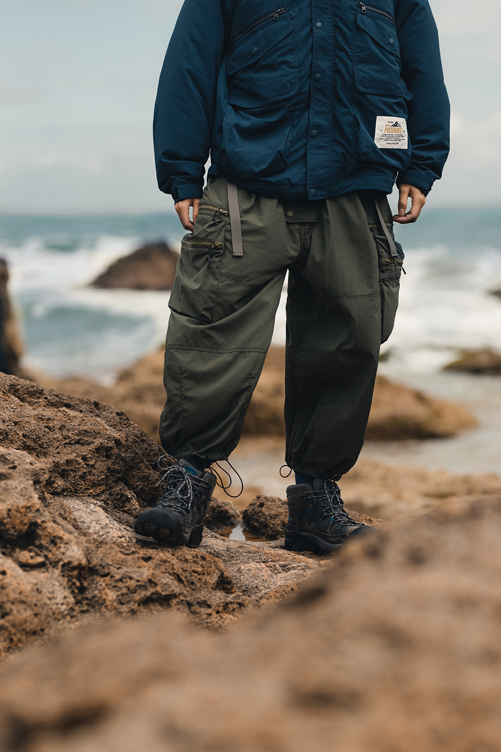 立體裁片的褲型設計,搭配便於調整且提升視覺層次感的雙邊抽繩腰帶設計,使穿著體驗更加舒適自在。