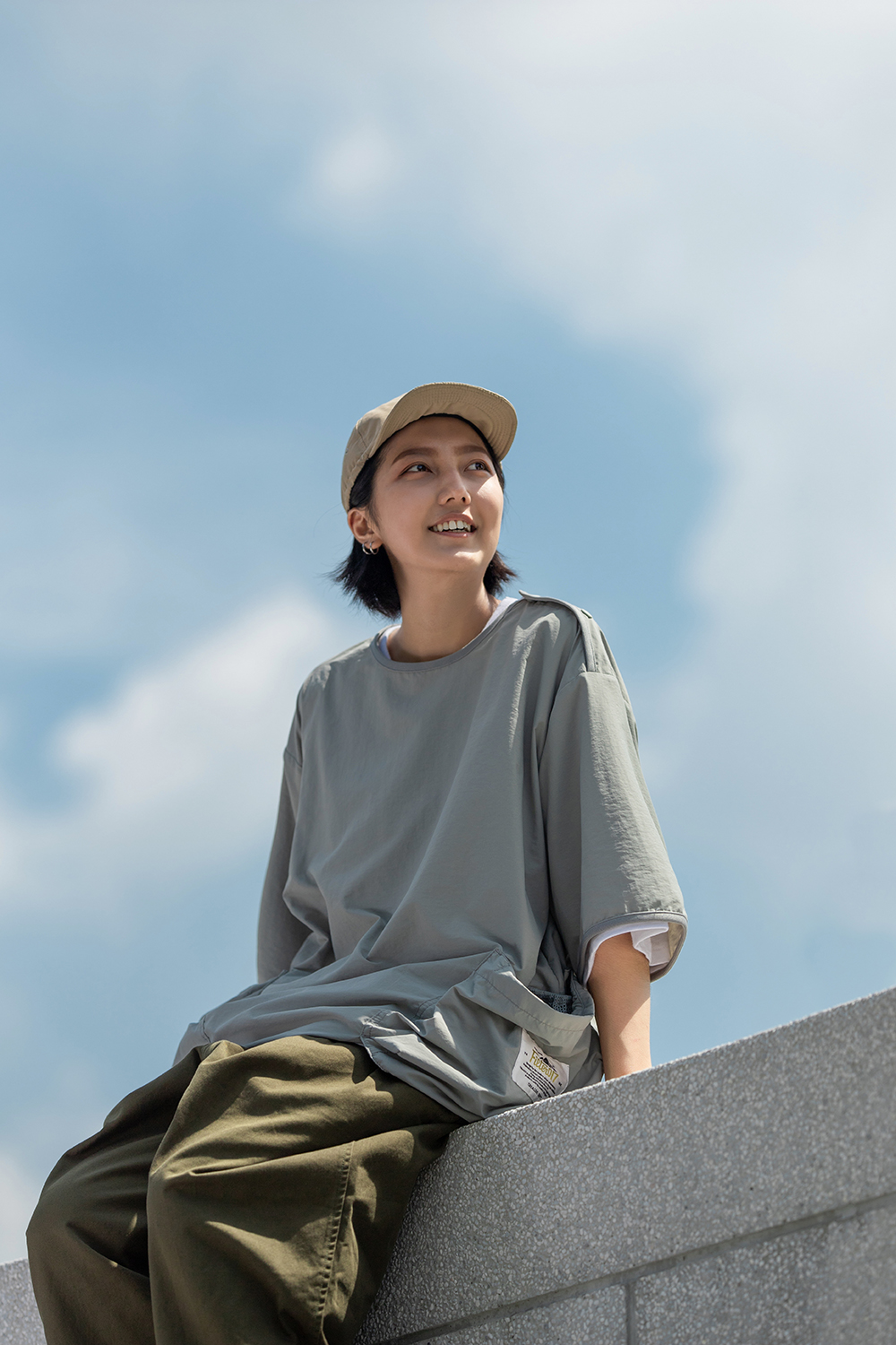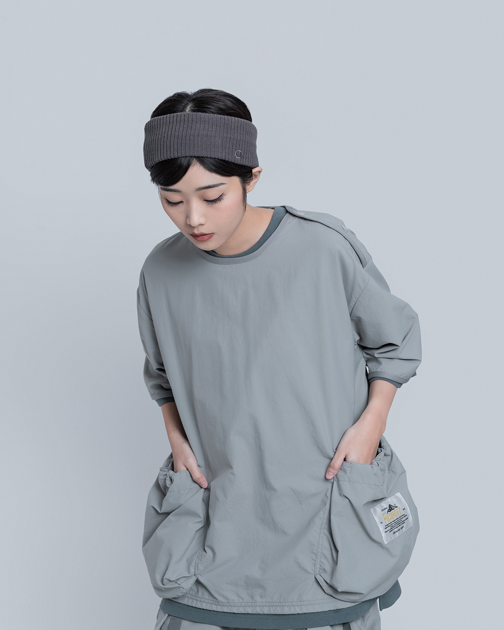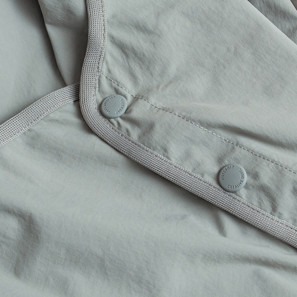 寬鬆版型的短袖罩衫,以擁有舒適手感,並具基本防風機能、穿著時不貼身的尼龍機能面料所打造而成。