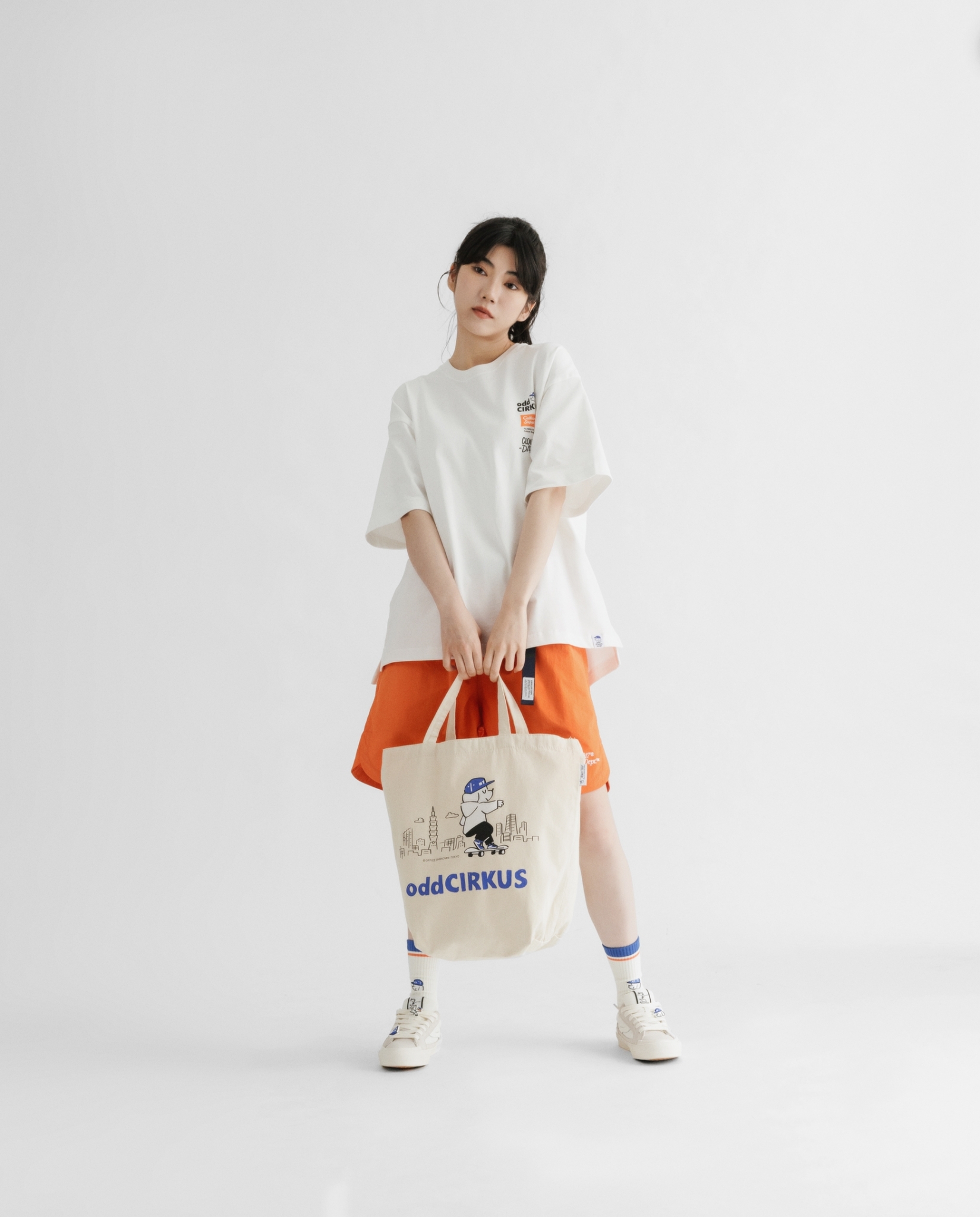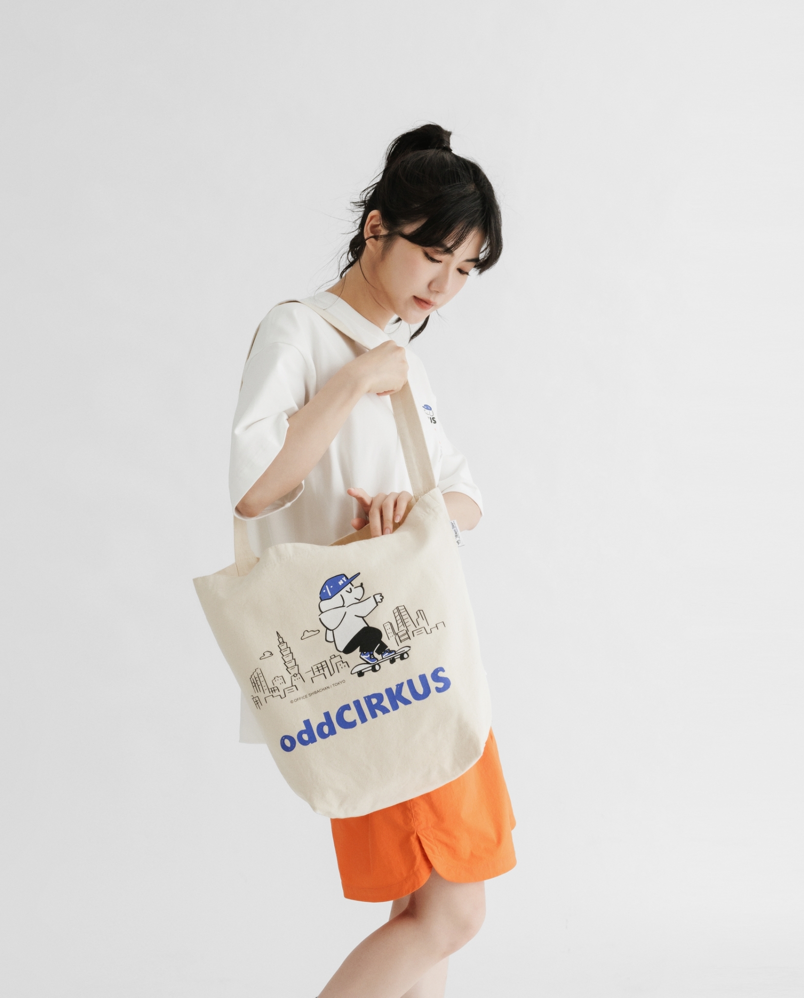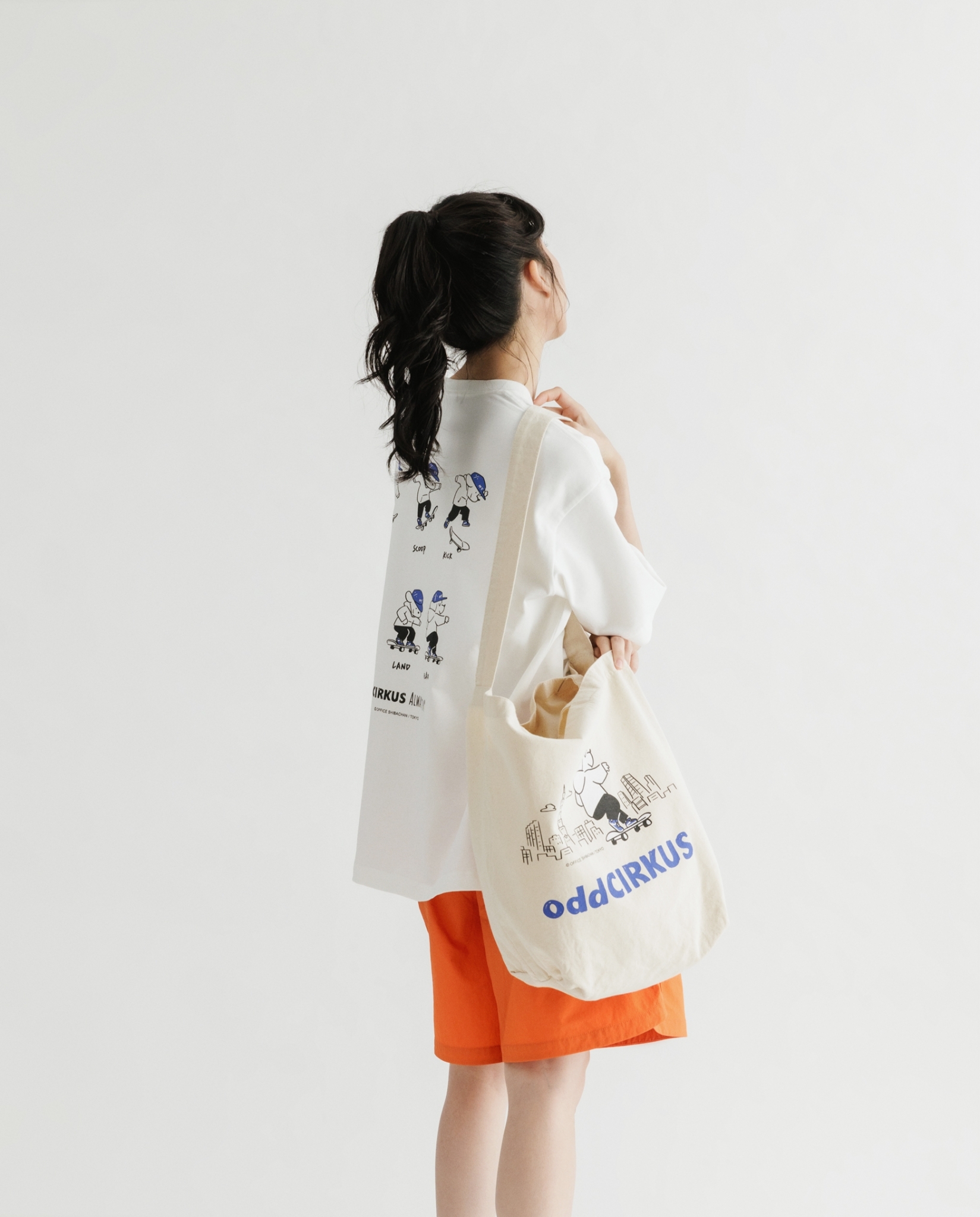 以滑板暢行城市的圖像印製於經典的托特包型上,選用未經染色的棉帆布材質,特別增設的背帶設計,可依喜好及需求單肩背或斜背使用,於日常便攜裝載各式書籍雜誌、黑膠唱片等生活雜物,讓包款兼具便利及機能性。
