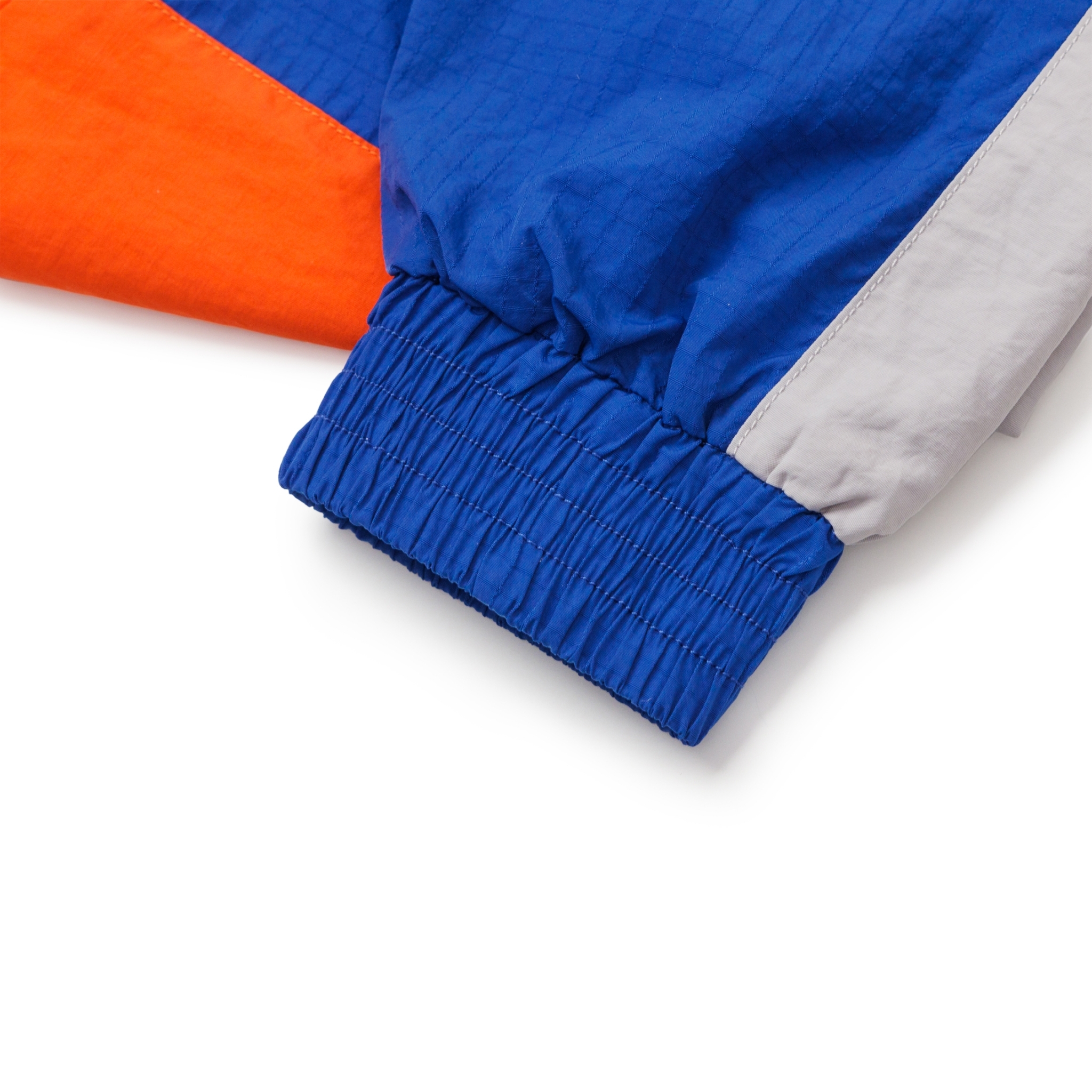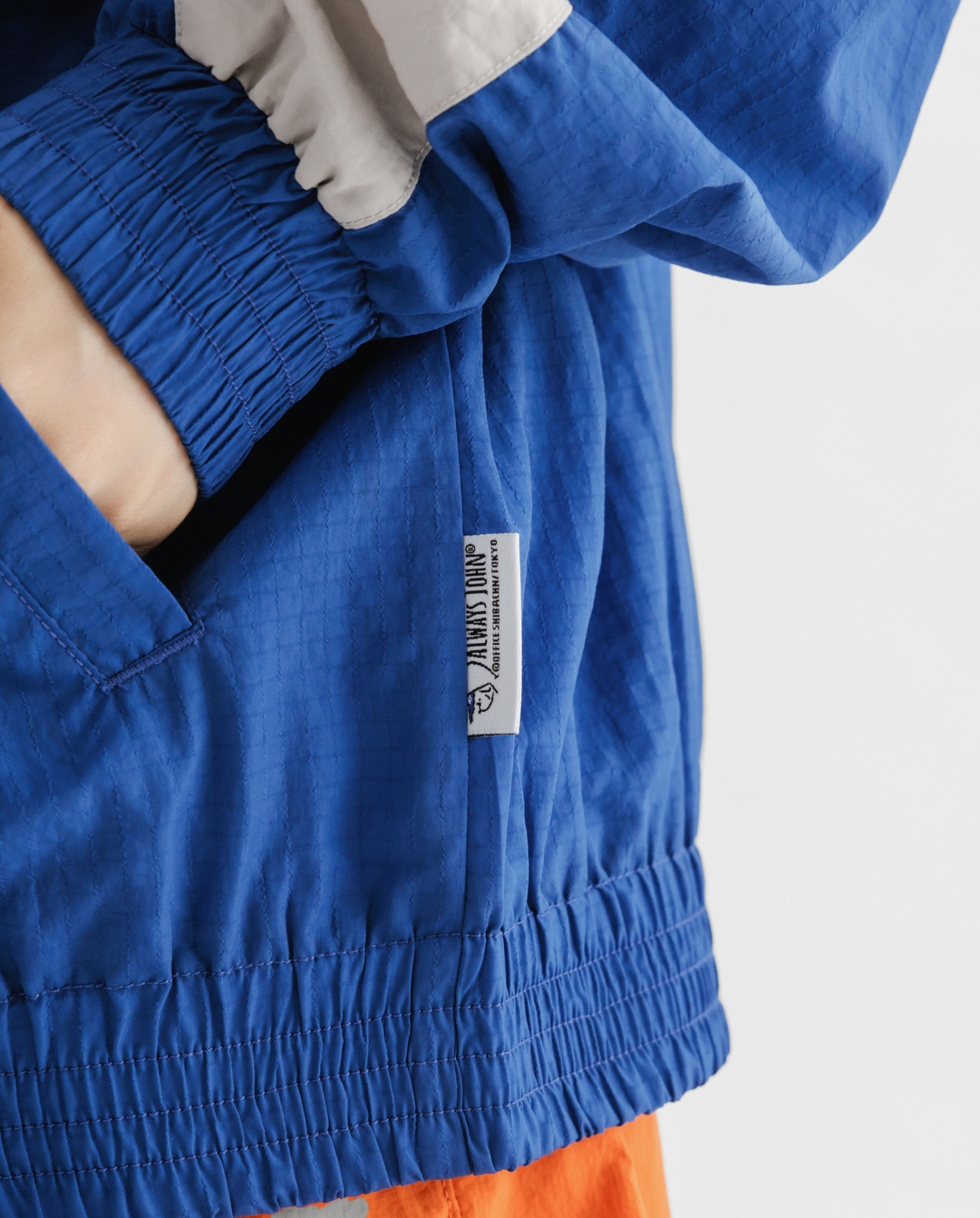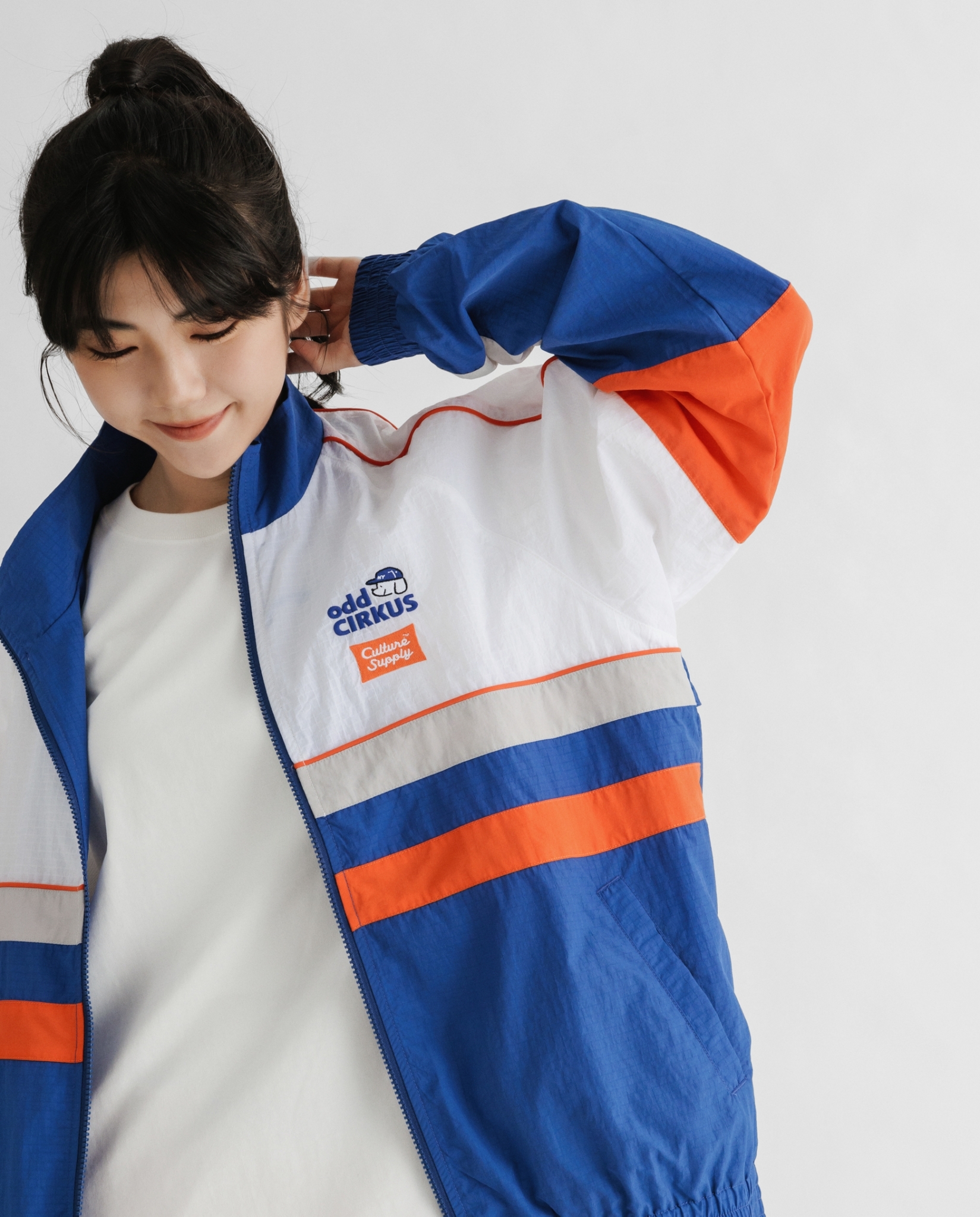 以90年代延續至今的新古著經典代表「運動外套」為基礎,結合現下趨勢的寬版廓型剪裁,並採用防潑水面料以大面積撞色拼接設計搭配主題電繡與出芽線條的綴飾,加上背部分層透氣剪裁和彈性袖口、下擺,讓舒適度貼近日常穿搭之機能性,為當前不可或缺的注目單品。