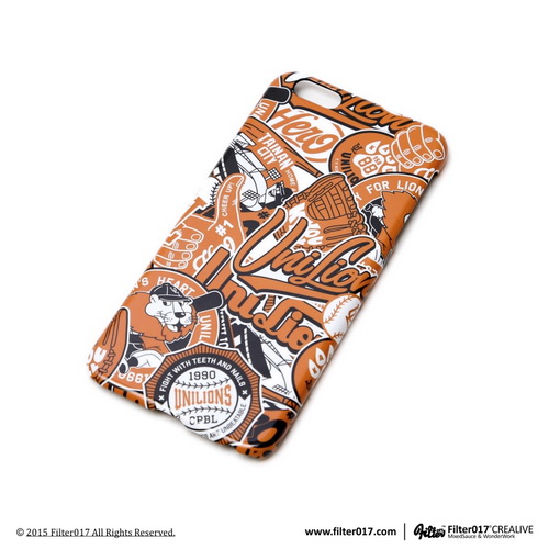 統一7-ELEVEn獅與Filter017於開幕戰系列首度攜手聯名推出iPhone6和iPhone6 PLUS手機保護殼,透過設計與產品的結合,讓今年獅隊精神可以跟著我們到處走。三款保護殼以不同設計風格出發,其概念皆與獅隊與Filter017的聯名精神與風格緊密延續,有象徵英雄開戰榮譽徽章設計的簡約霧面質感款、有宣示主場應援的台南球場款及Filter017將本次雙方聯名設計的所有圖像視覺以團隊本身擅長的Pattern作出完美融合的亮面繽紛Team Spirit Pattern款等,讓支持統一獅及欣賞Filter017設計風格的每一個你,都可以選出一個自己最喜歡的手機保護殼,透過設計力量的加乘,誰說手機保護殼只能是個配件呢?