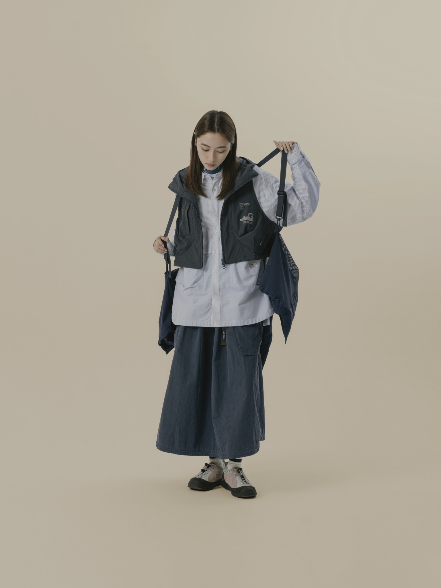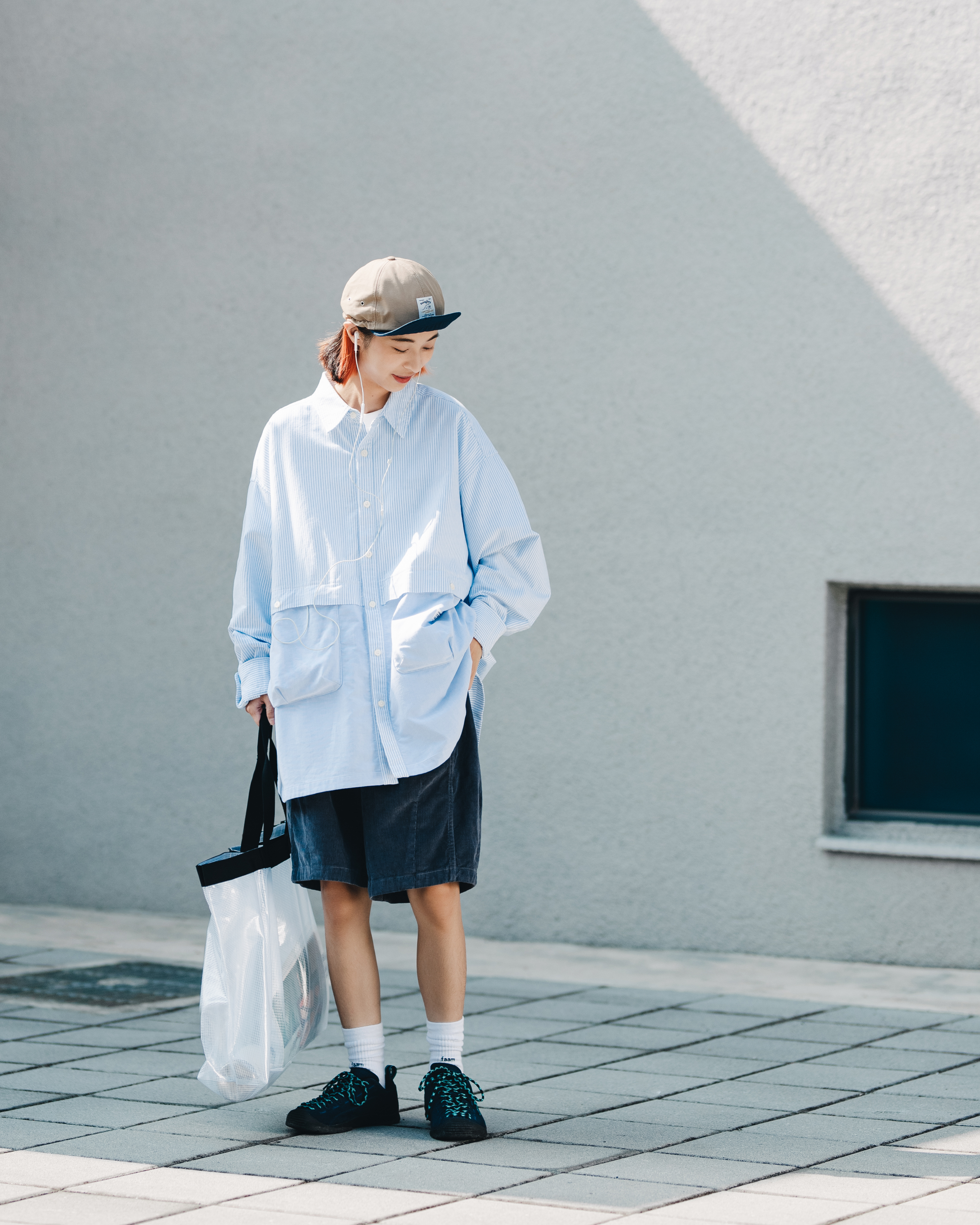 特選質感極佳的牛津混紡面料,以布料拼接搭配立體口袋設計在視覺上做出層次變化,同時也方便收納手機、錢包等隨身小物,在展現率性街頭風格的同時也增添十足收納機能與便利性。