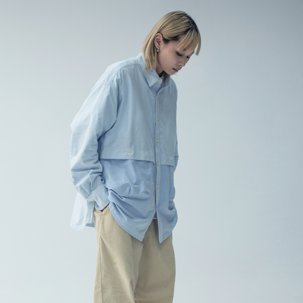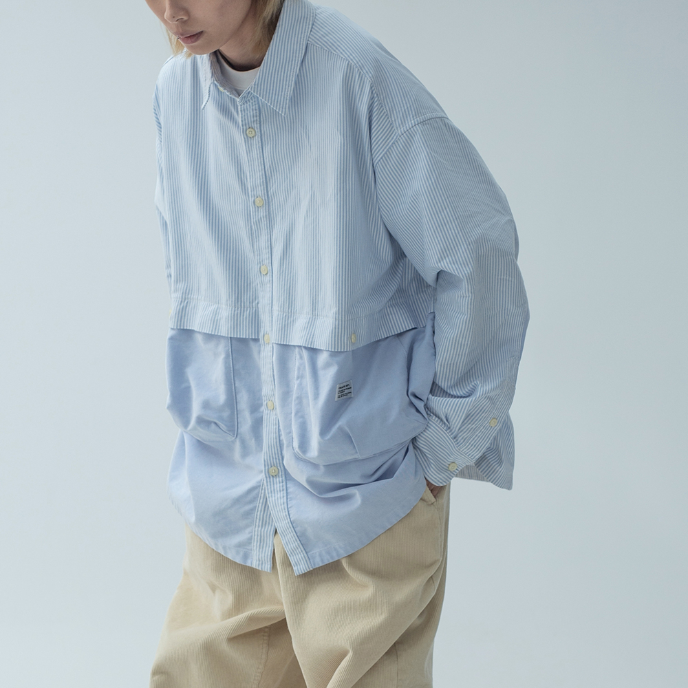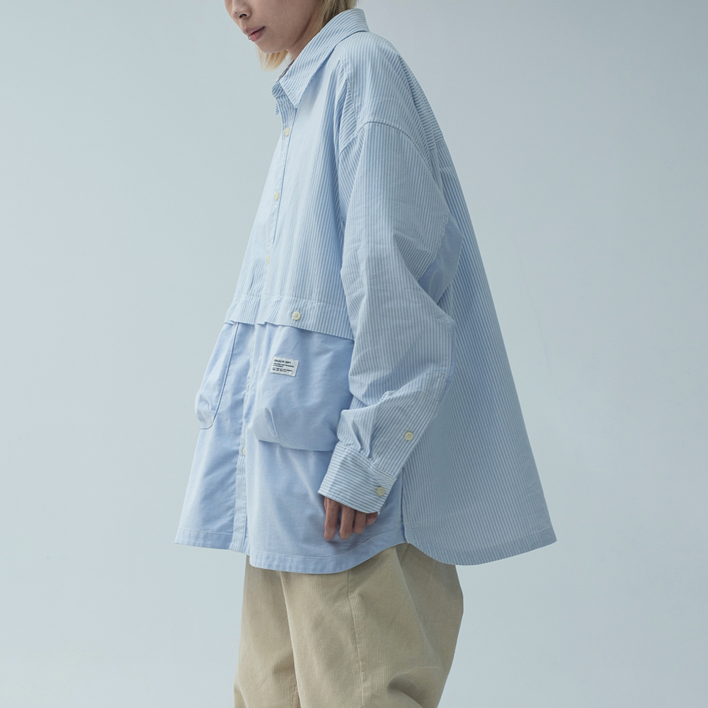 牛津拼接寬版襯衫