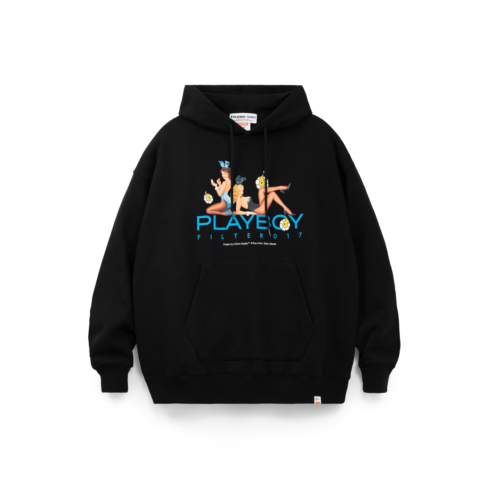 本次企劃專案由FILTER017® 主理人/藝術總監Enzo Lin 策劃主導,負責設計執行與創意統籌,並由品牌旗下文化藝術企劃單位Culture Supply™ 製作發行。核心聚焦以PLAYBOY 著名的經典成人藝術刊物作為重要文化起點切入,透過FILTER017® 擅長的元素混合與當代編輯設計語彙重新轉譯。插畫藝術家 前田麦 以其筆下標誌性的「EYE OF FIRE(火焰之眼)」詮釋PLAYBOY 最具代表性的兔頭Logo,以及紳士兔與兔女郎角色,將復古經典的雜誌封面意象於當代重新建構。