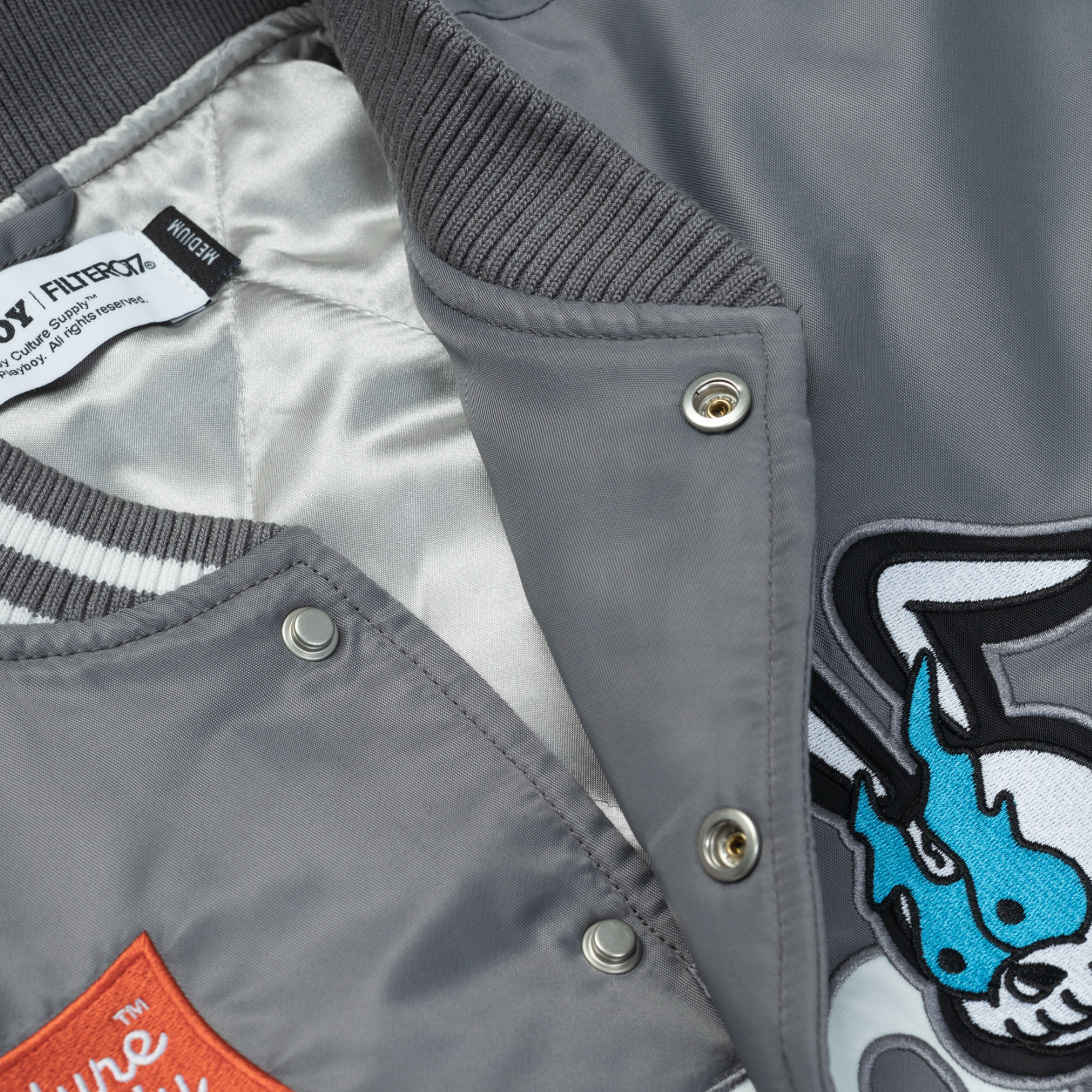 以80年代引領風潮的美式學院經典單品Baseball (Varsity) Jacket為基礎,搭配扎實的訂織羅紋,使撞色配置平衡協調於運動風格上的呈現,圖像特別採用貼布、塌塌米刺繡工法交錯堆疊,讓細節營造出層次、錯落有致的視覺效果。
