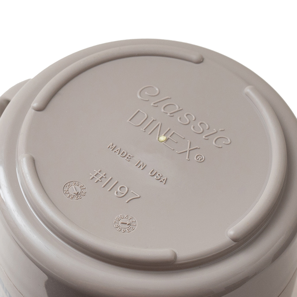 Dinex®為美國康乃狄克州知名餐具製造商。杯身採用堅固的聚丙烯材質讓杯體更輕巧,除了能安心盛裝熱湯或飲料,經過設計的杯口大小,能剛好放入一瓶鋁罐啤酒,因在杯壁的雙層結構中加入了隔熱材質,能保冷保溫並同時隔熱。