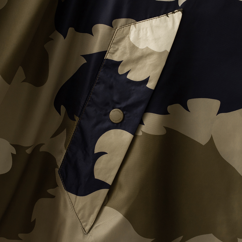 主體以軍事風格考究的葫蘆紋衍縫作為充棉保暖機能與拼接視覺,反穿面則以POLeR®經典的迷彩印花做為視覺反差與戶外風格搭配上的雙向選擇,能夠依照需求自由的搭配。