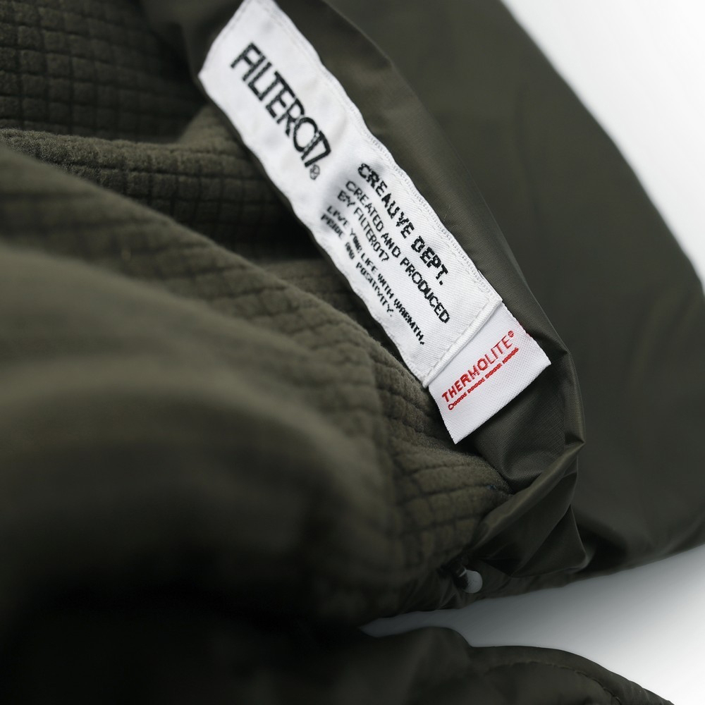 THERMOLITE® 品牌輕量科技棉為保暖填充材質,極具保暖功能的中空保溫纖維,可將空氣包覆於纖維孔隙當中,能夠保持身體溫度,隔絕外界冷空氣。更擁有輕盈、透氣、柔軟舒適等特性,甚至在布料沾濕後仍能保有永久性的保暖效能。