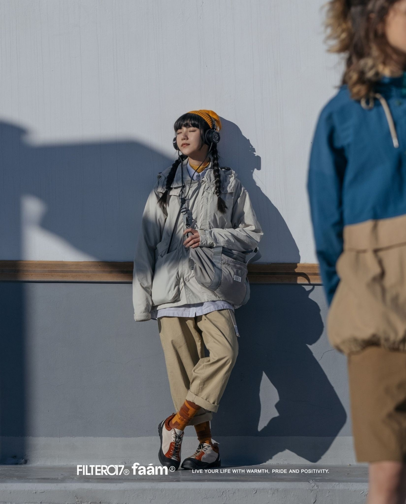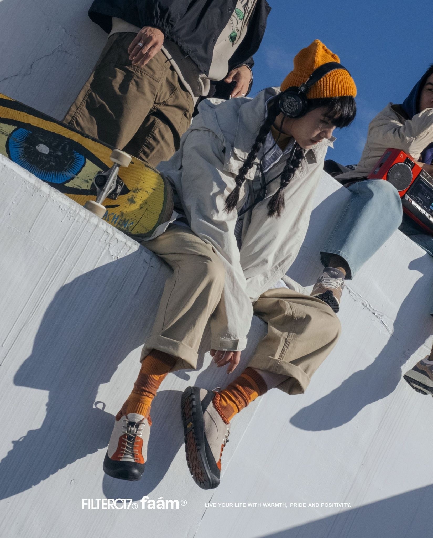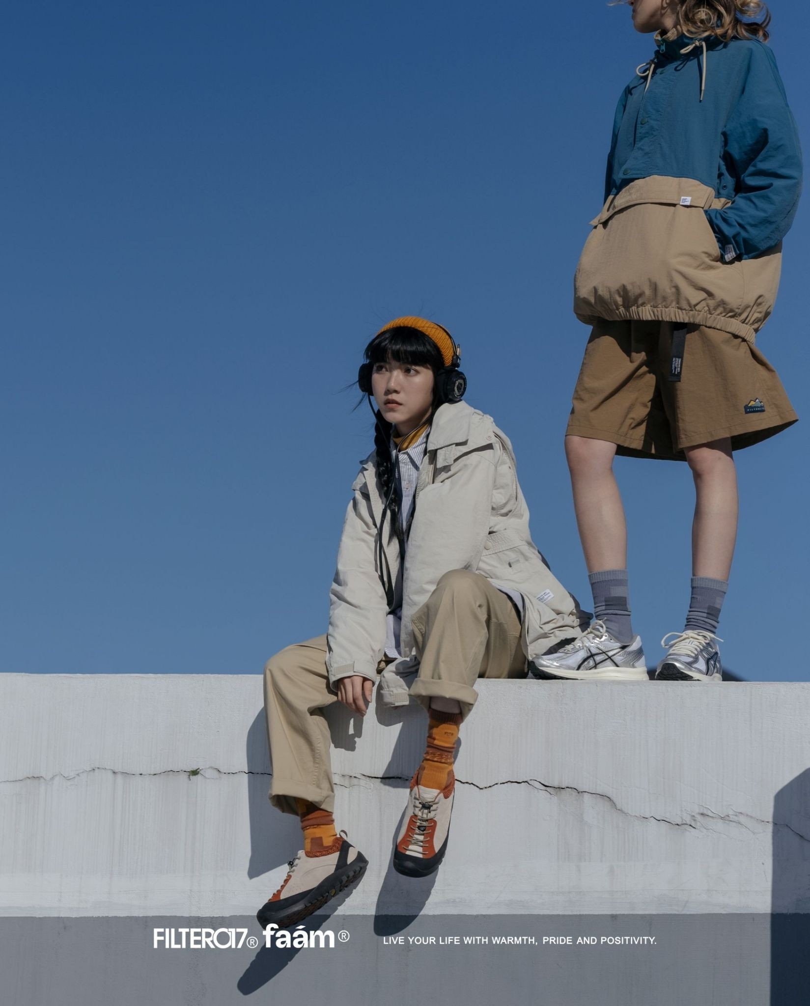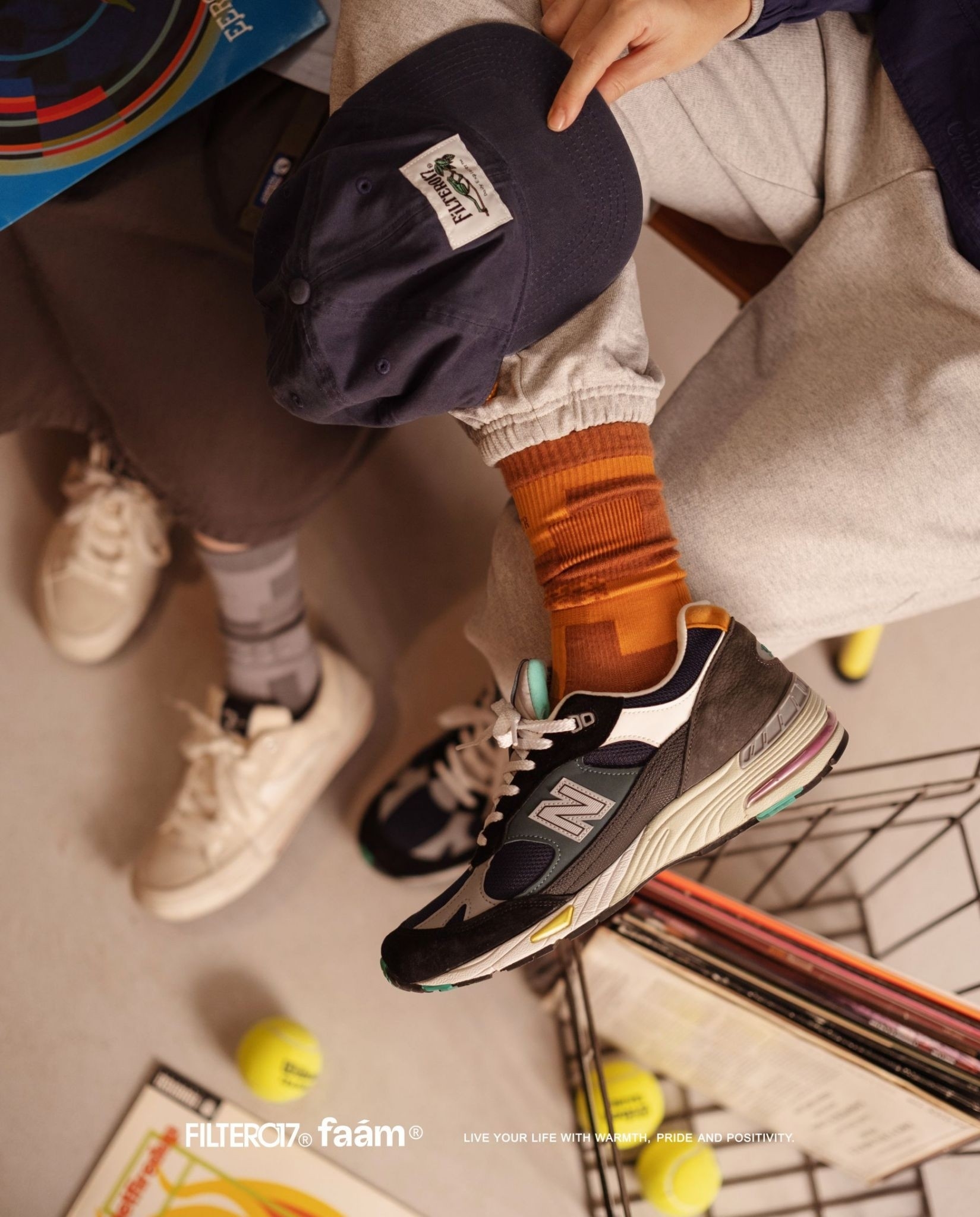 藉由織品的組織變化,使表面呈現低調且具細節的紋理,再加入色塊拼接,將襪身賦予舊布重製拼接的輪廓與視覺,充分演繹FILTER017® 深耕於各領域及次文化的品牌軸向。