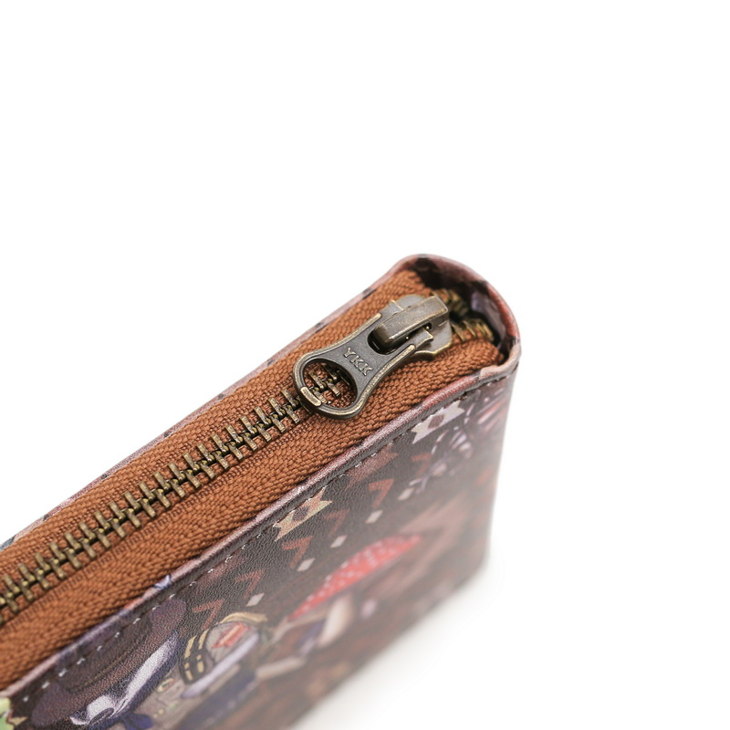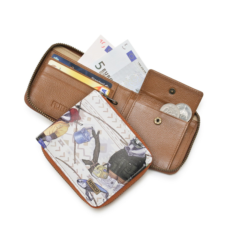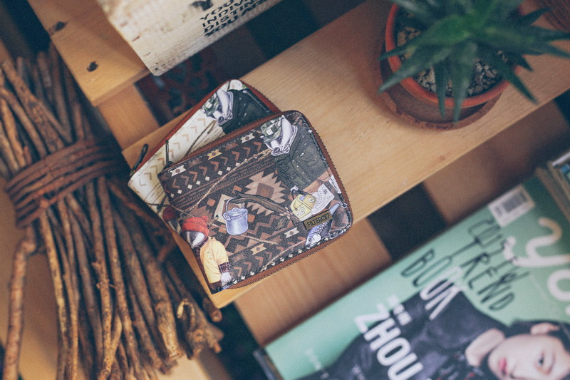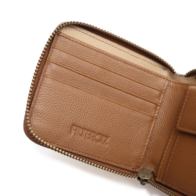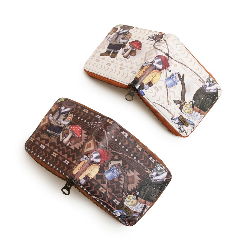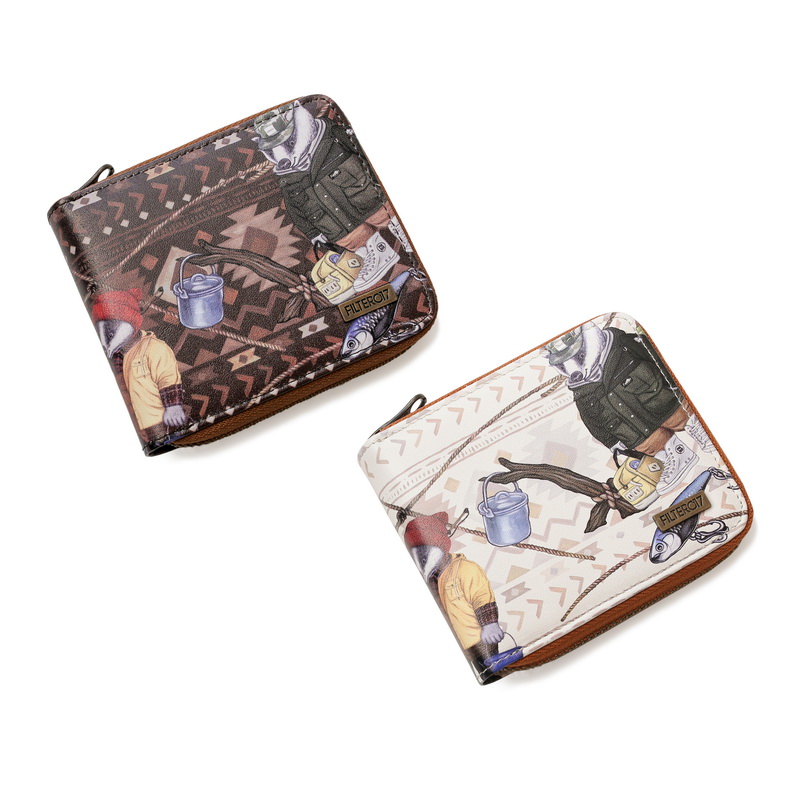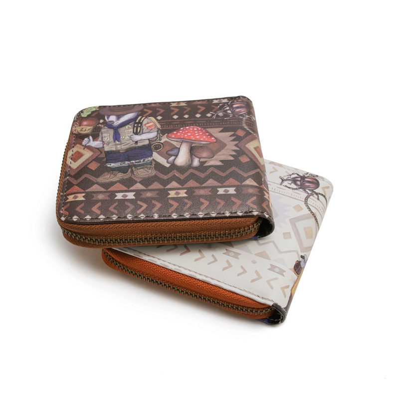 巧妙地融入於圖像真皮拉鍊短夾中,展現充滿民族復古風格的特殊質感。