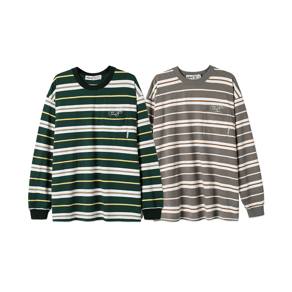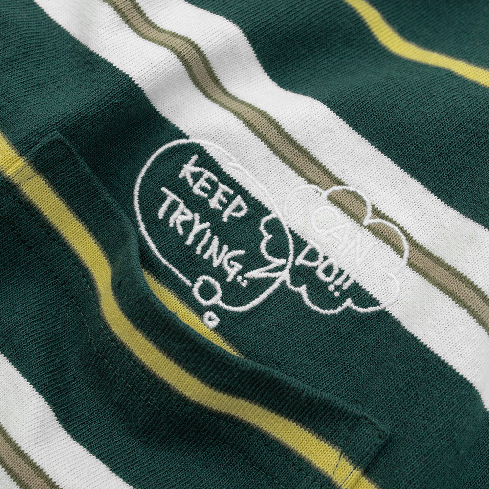 條紋刺繡口袋長Tee
