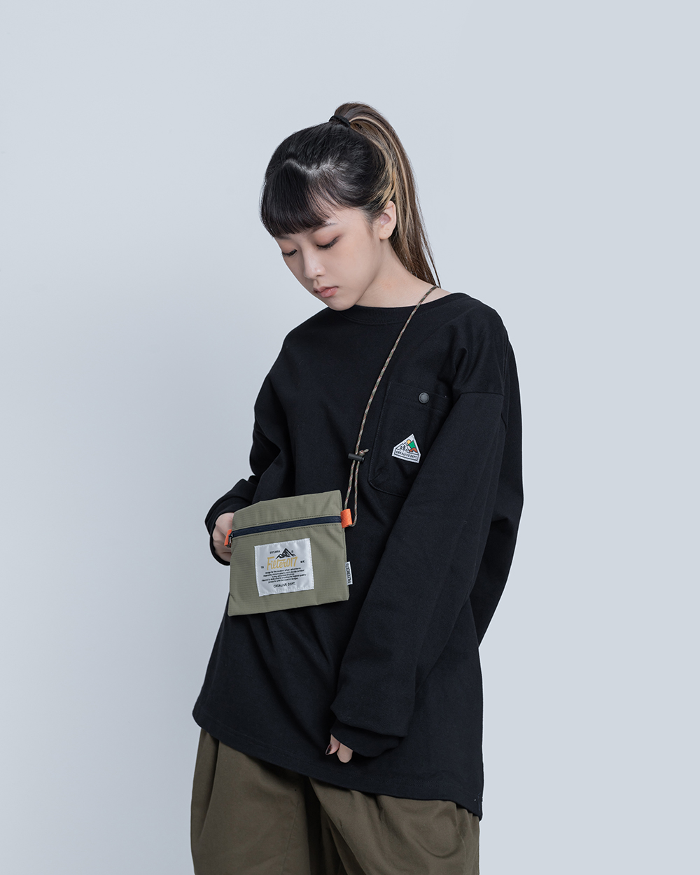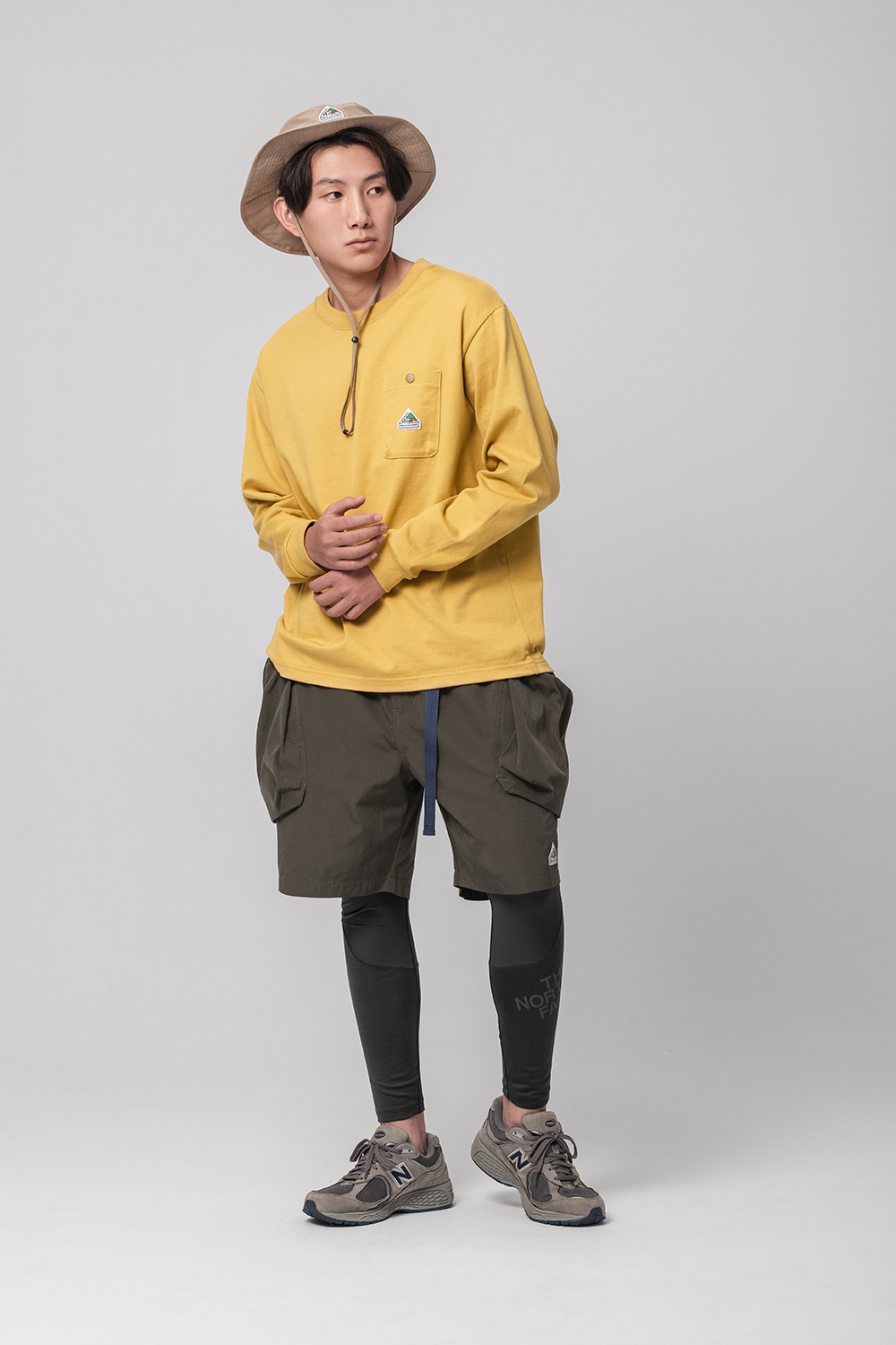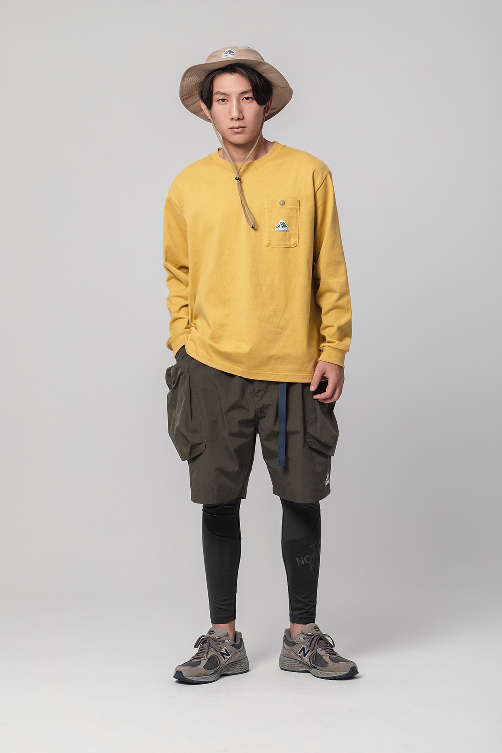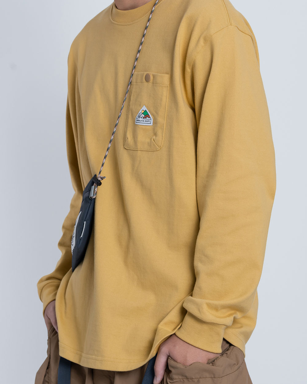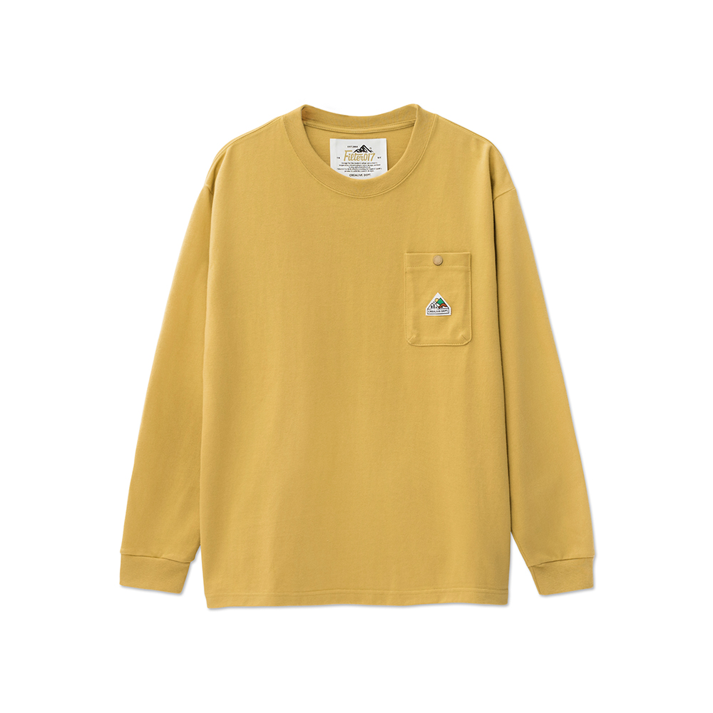 經典的寬鬆長TEE版型,胸前口袋有品牌代表性的山峰標誌圖像點綴,