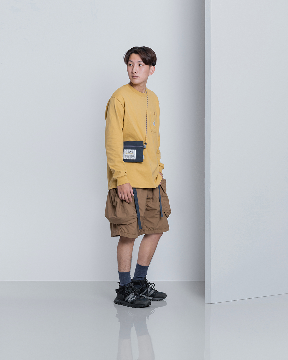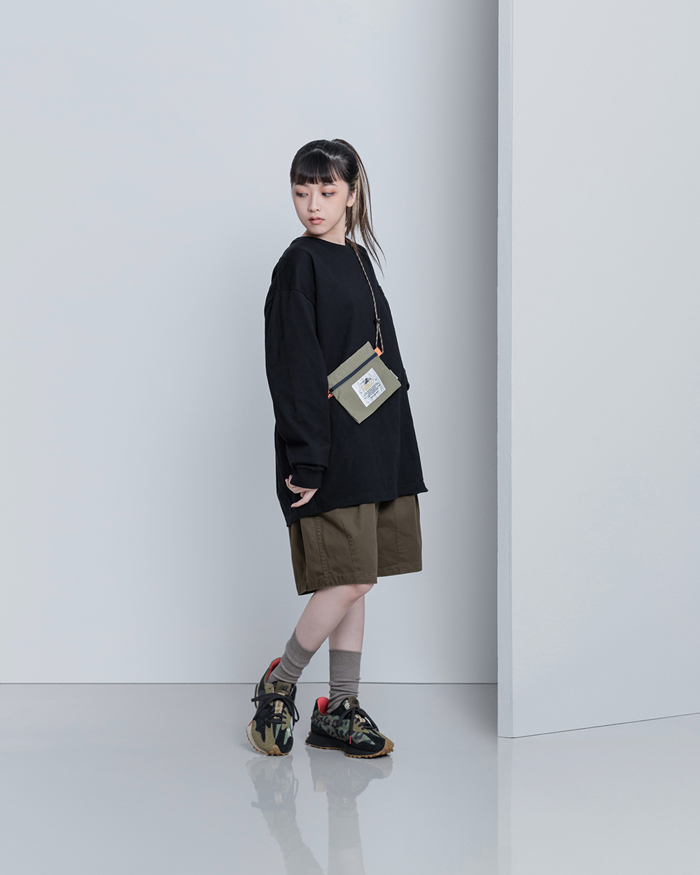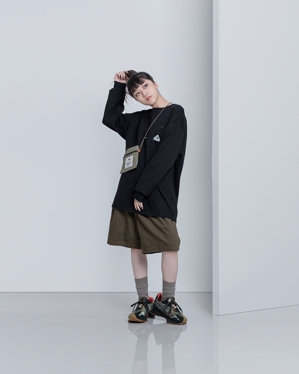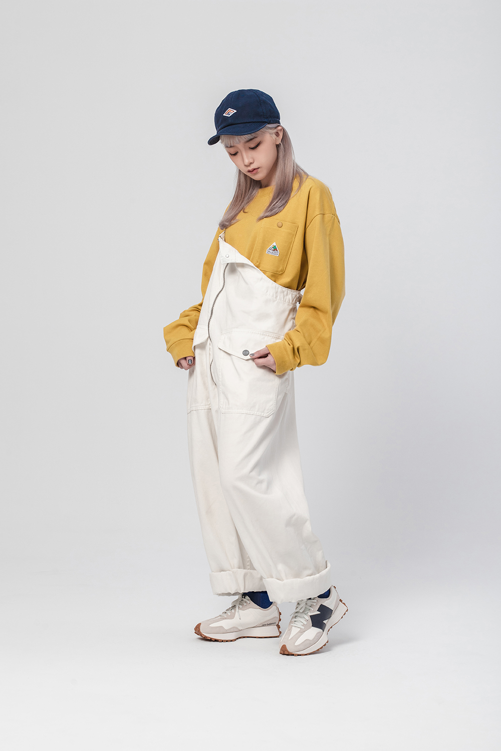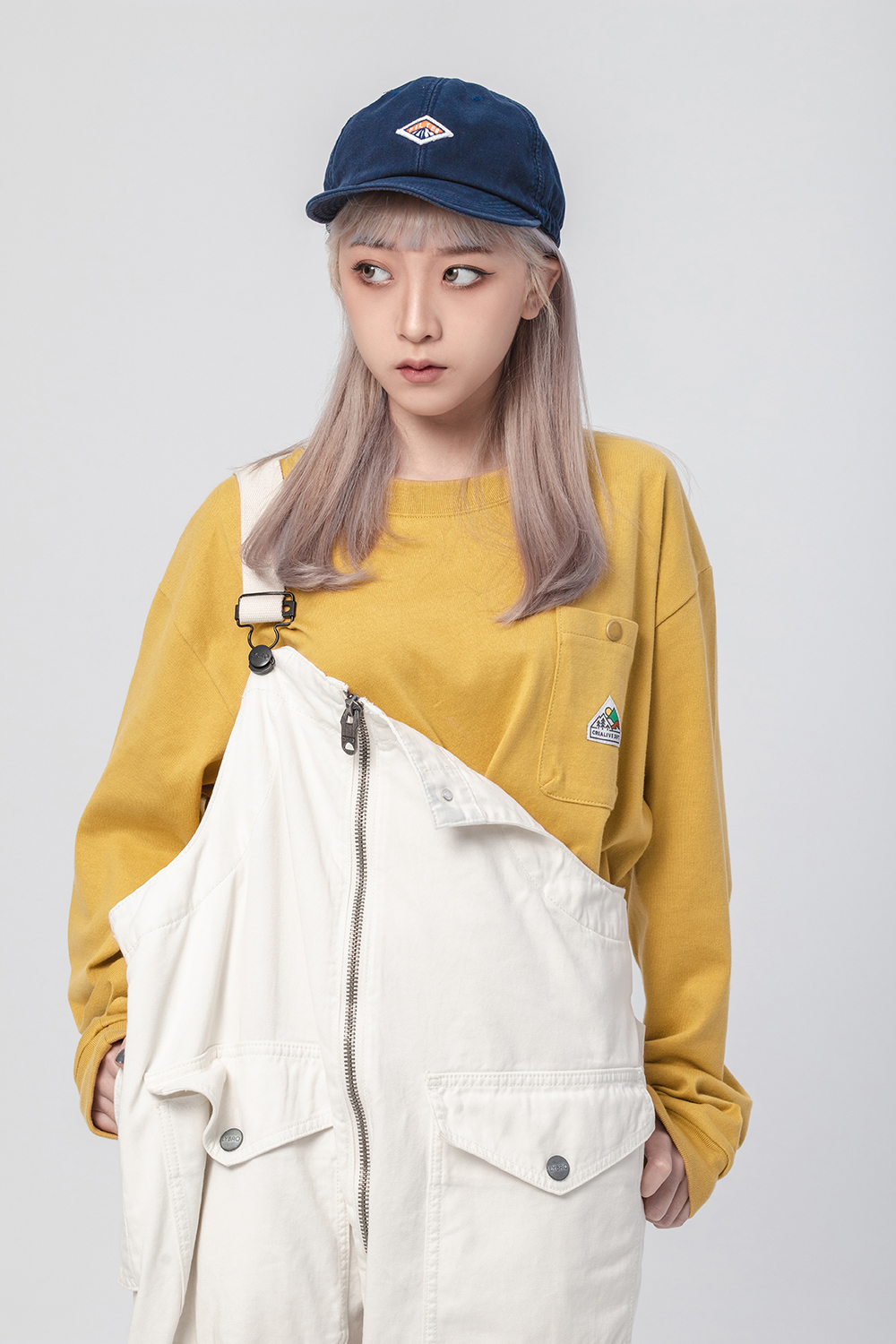 經典的寬鬆長TEE版型,胸前口袋有品牌代表性的山峰標誌圖像點綴,
