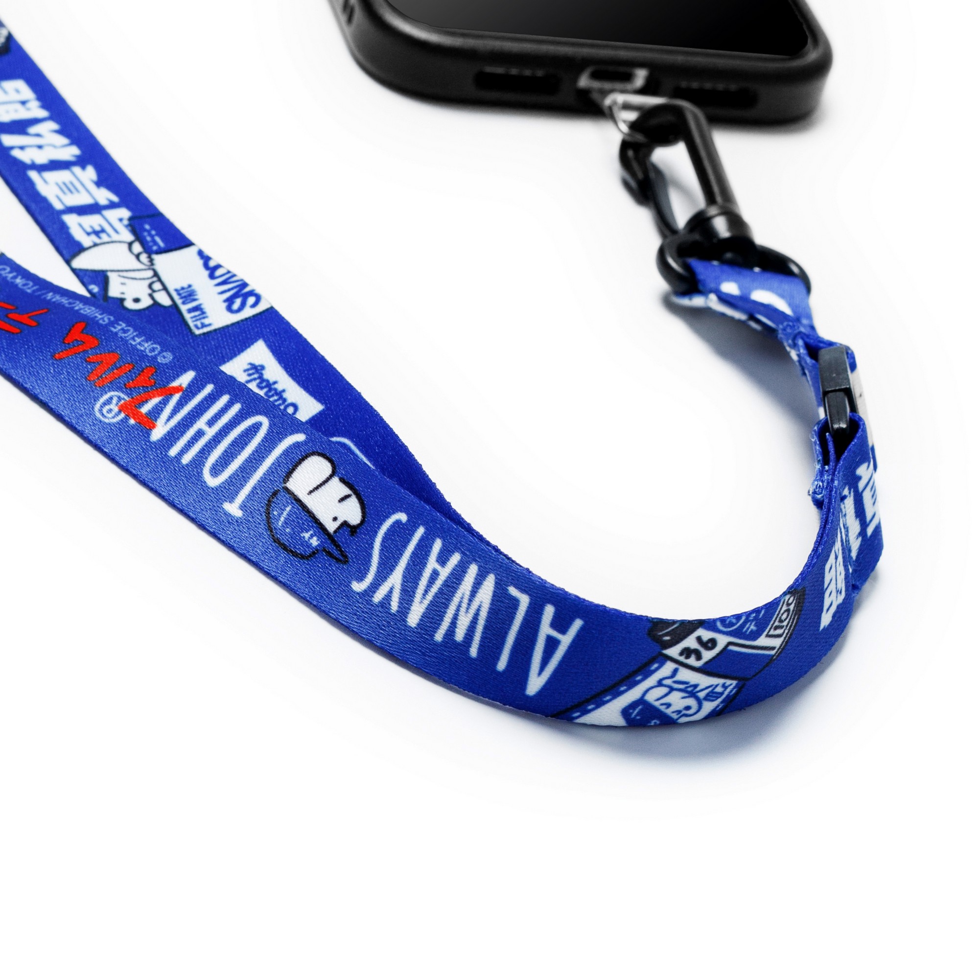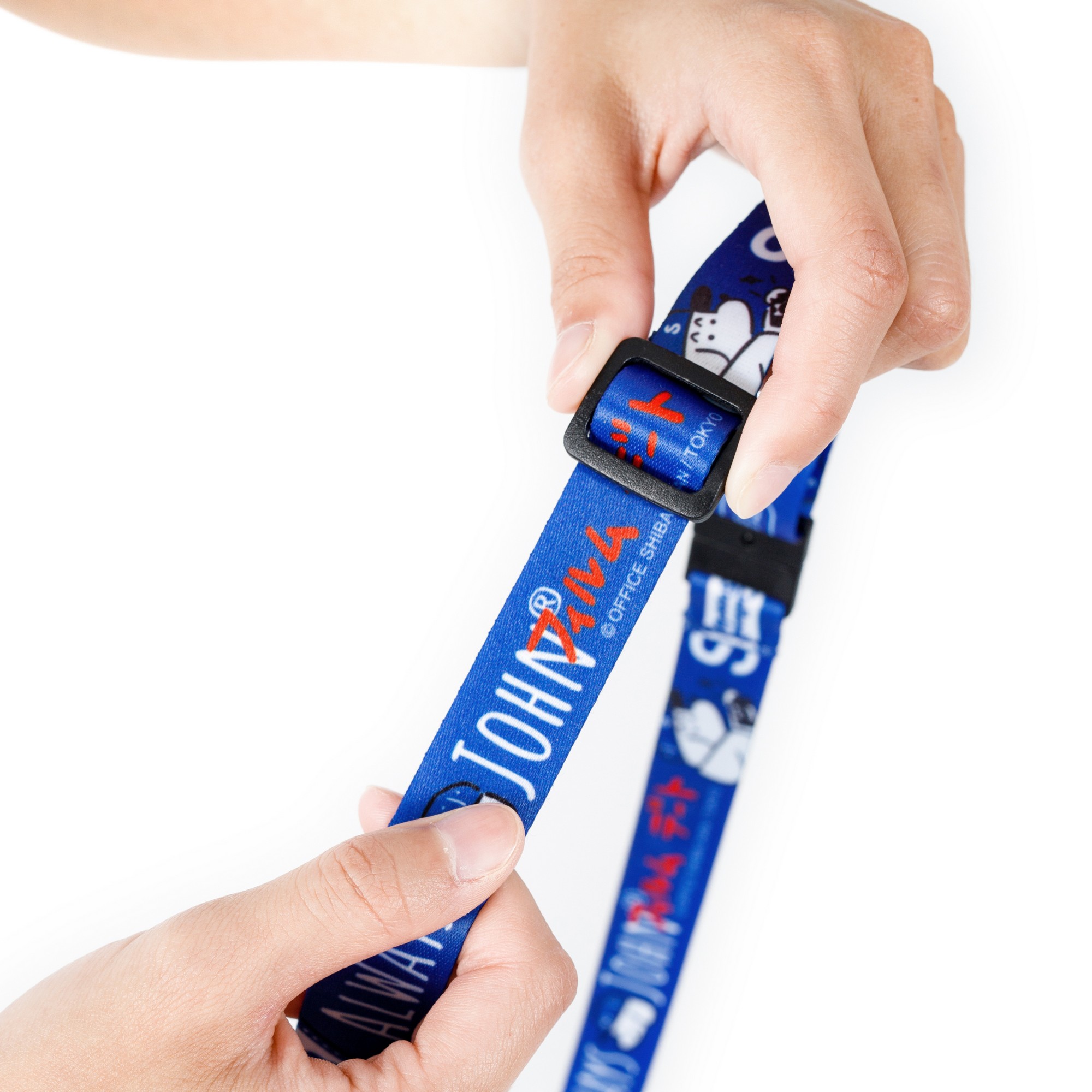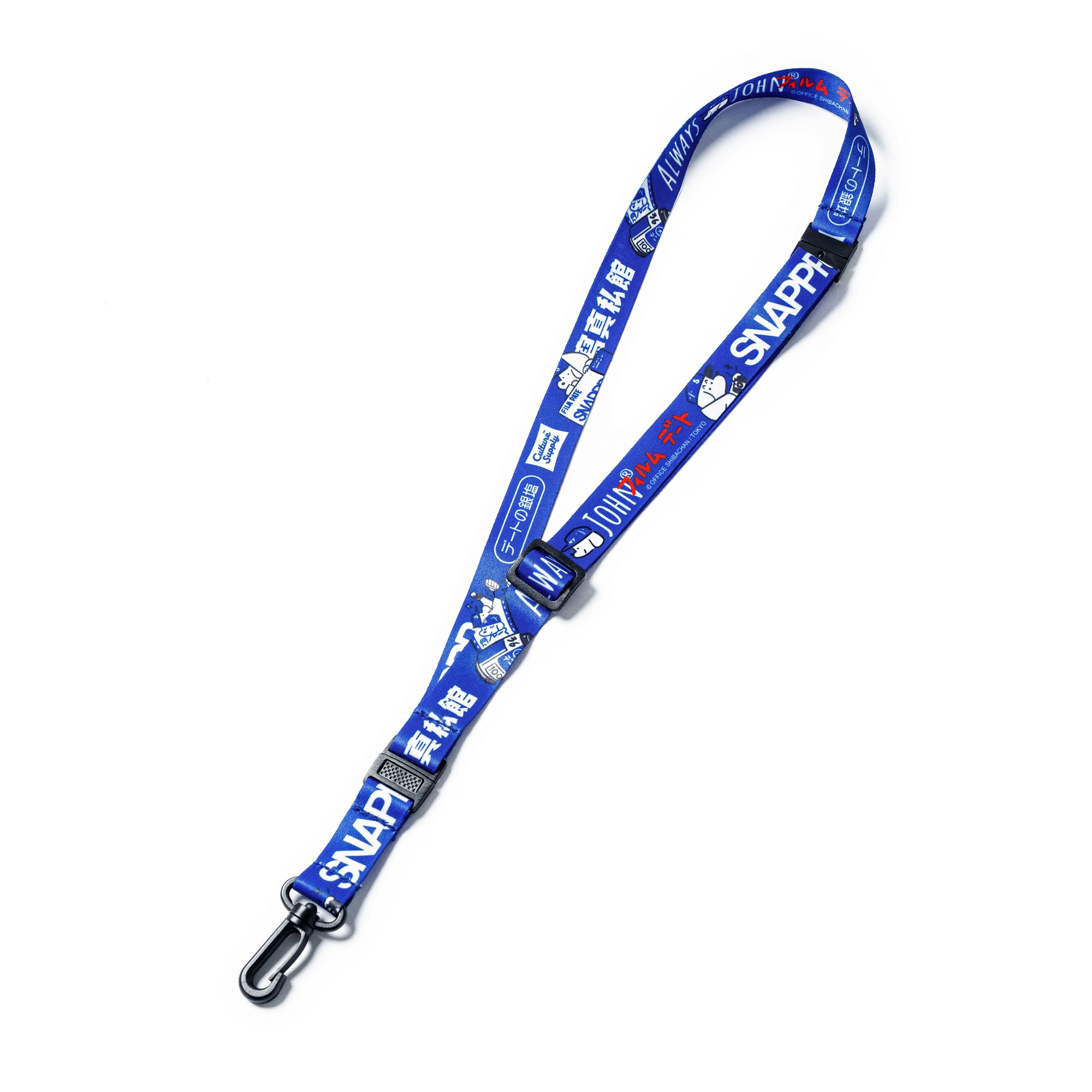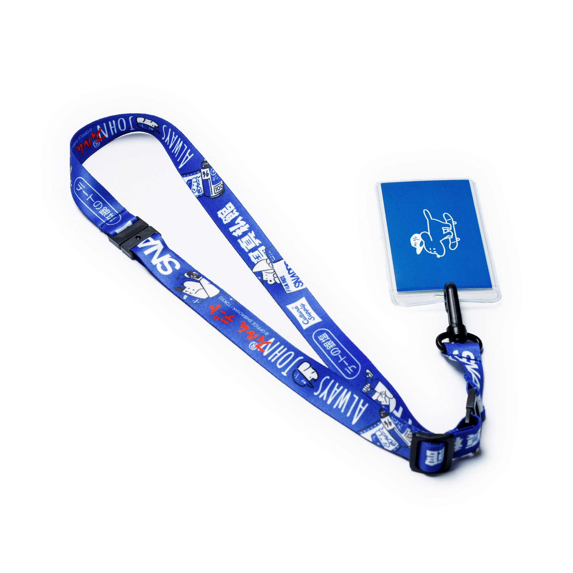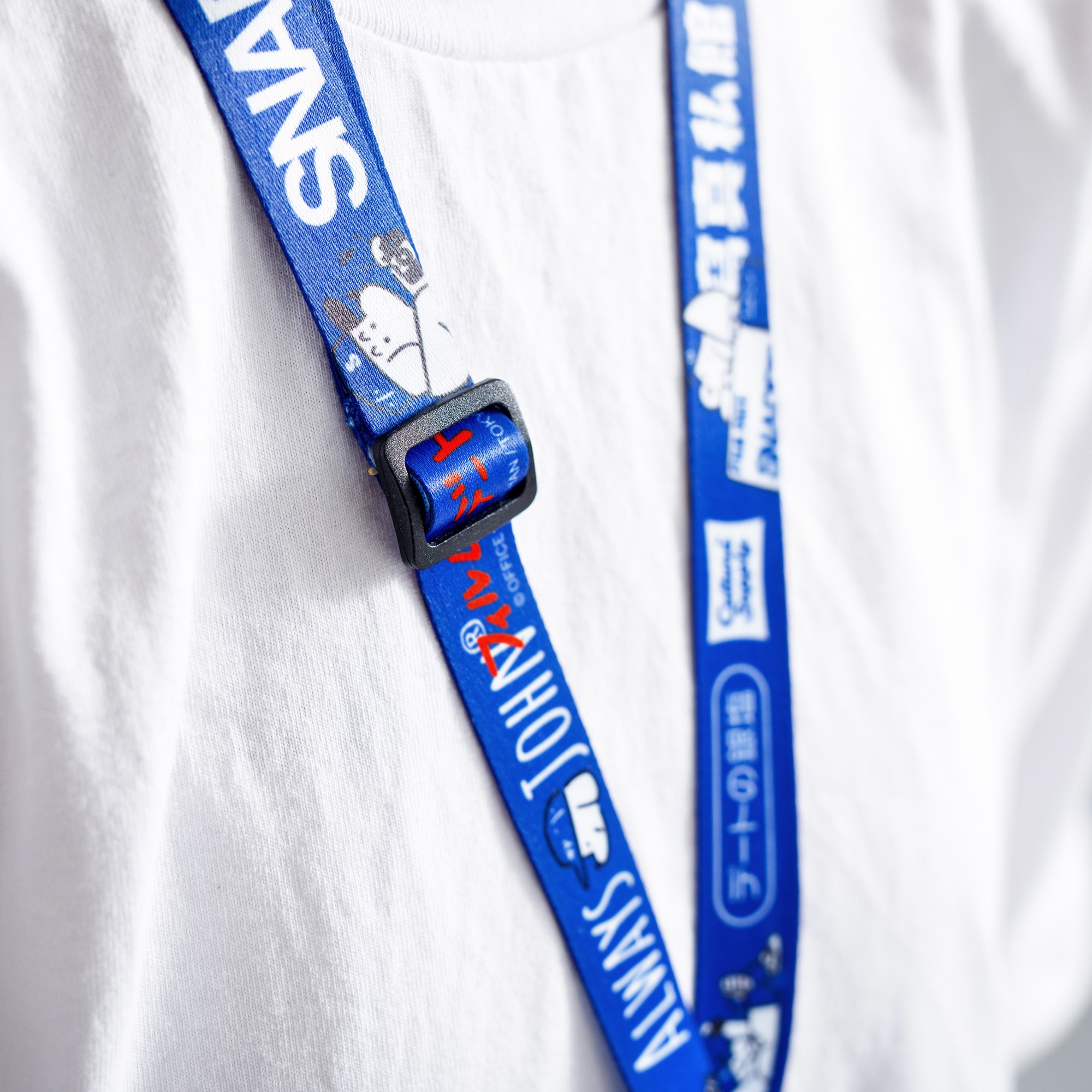 識別證帶選用 JONH 經典藍色作為基調,將聯名圖像與標誌以活潑拼貼設計呈現。識別證帶採用厚實的亮面織帶材質強化耐用及耐重度,可拆裝扣環設計搭配調節長度功能方便穿脫使用,為極具實用性的日常生活配件。