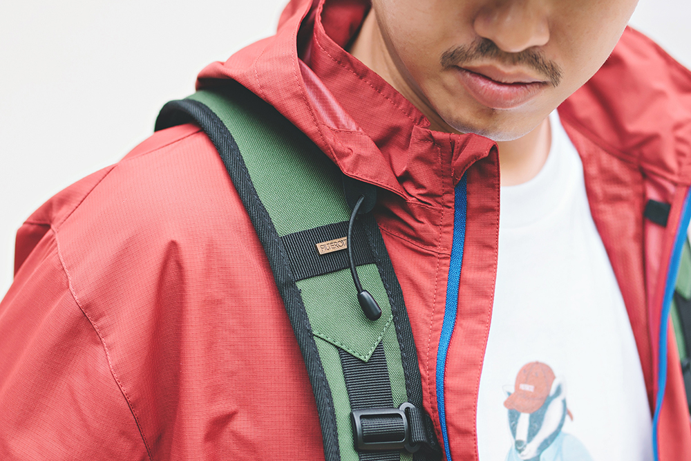 特別增設可收納於背包底部的防雨罩設計,為包款提供更進一步的防雨保護,