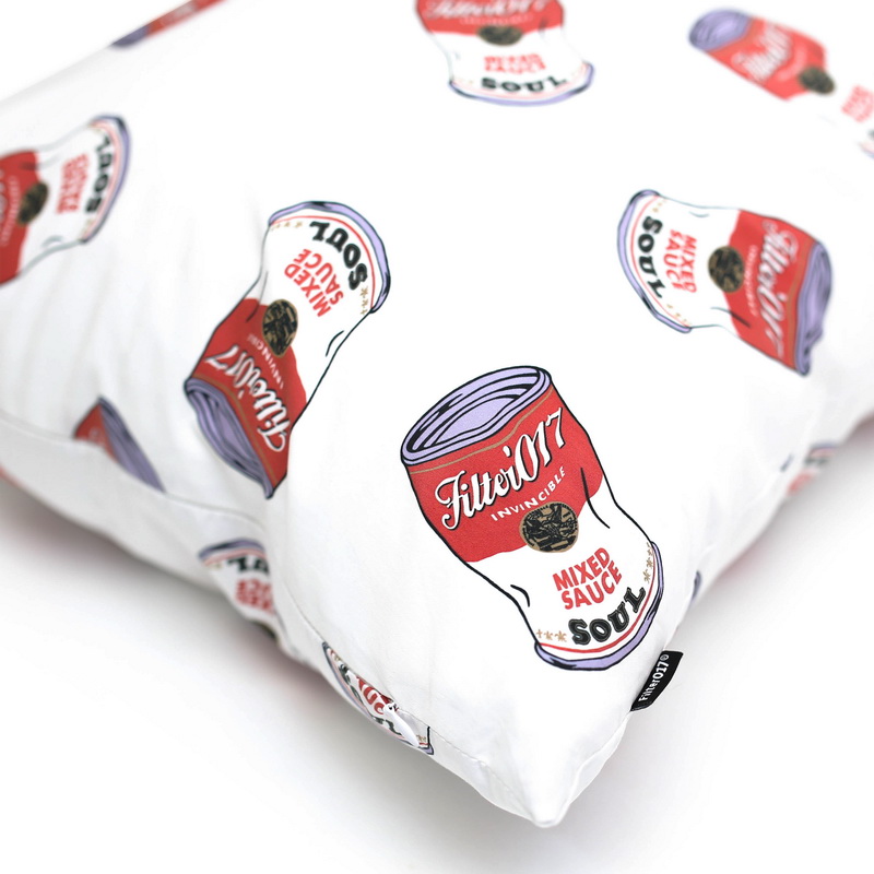 在製作工藝上,突破台灣品牌少見以大廠規模的開布印染方式,利用精緻的印染技法,將湯罐Pattern的圖像細節呈現得更加到位。而貼心的可拆式枕套,讓你不再苦惱害怕枕頭的清洗問題。