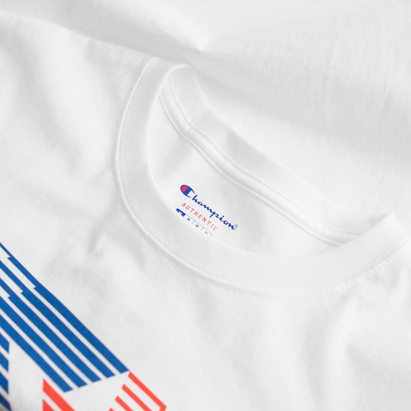 以精緻印刷方式融入於特選的美版 Champion 無接縫滾筒Tee,