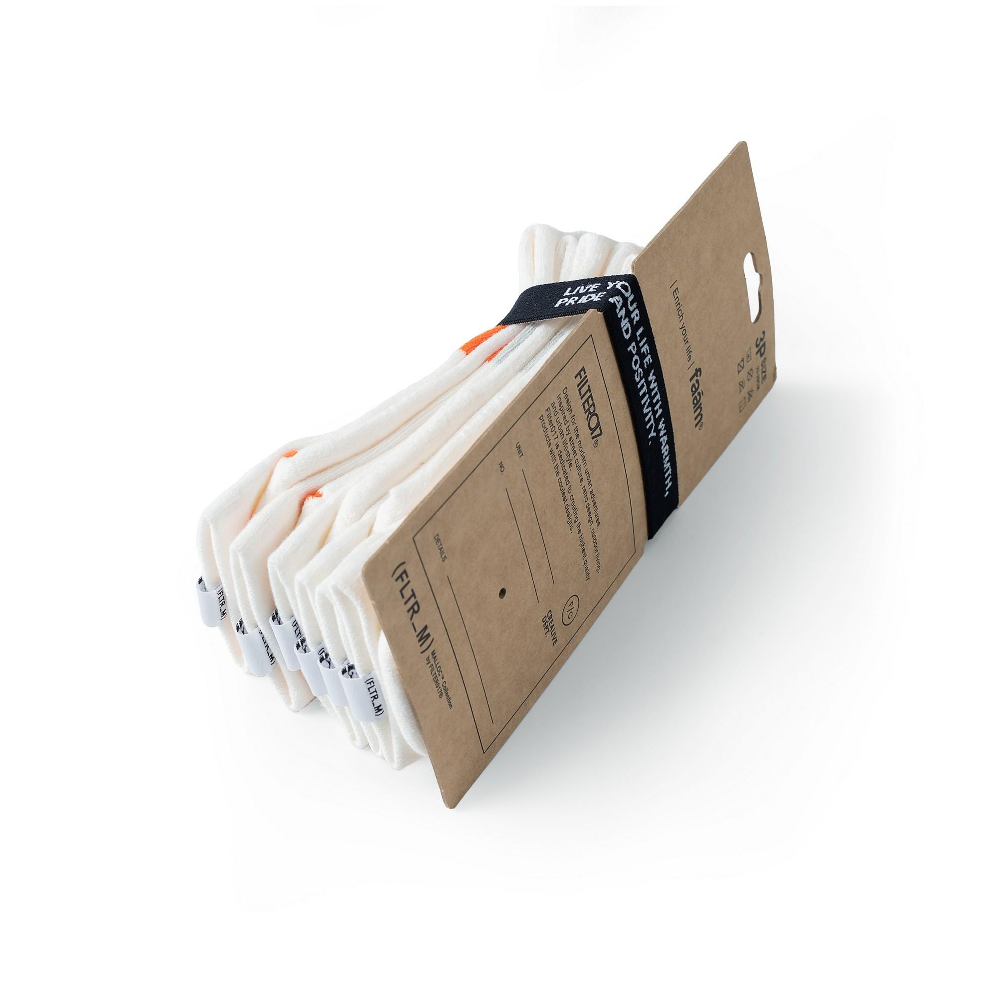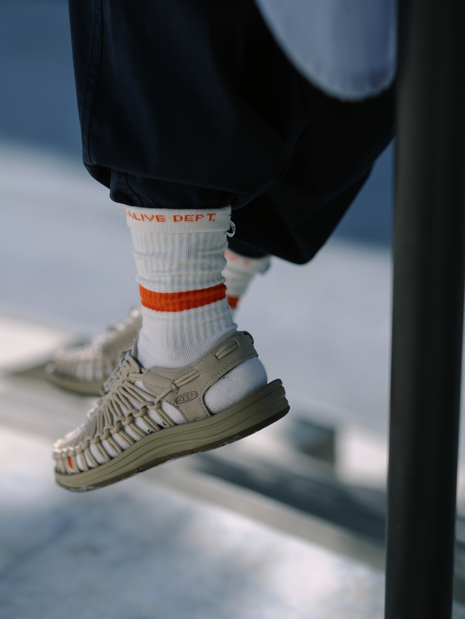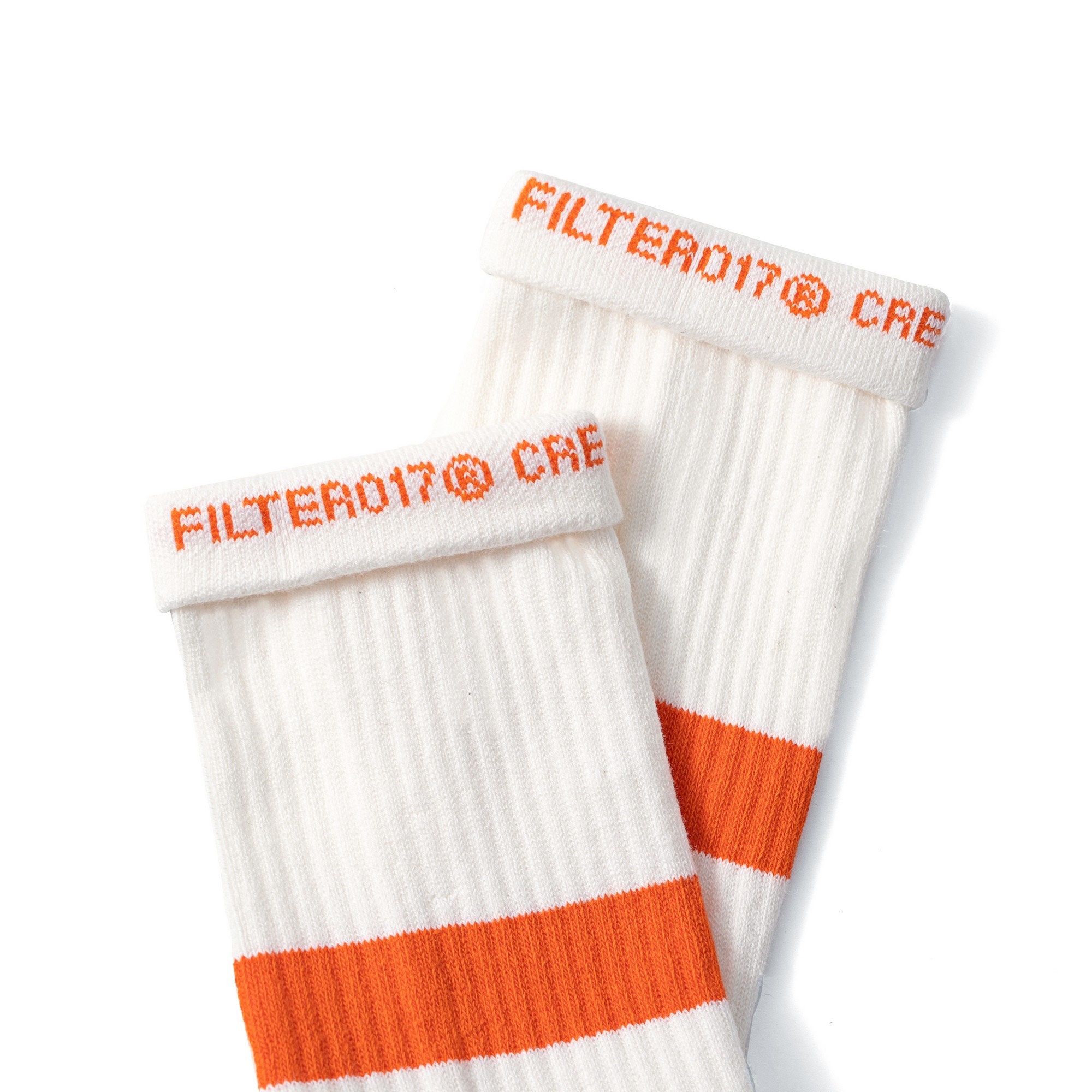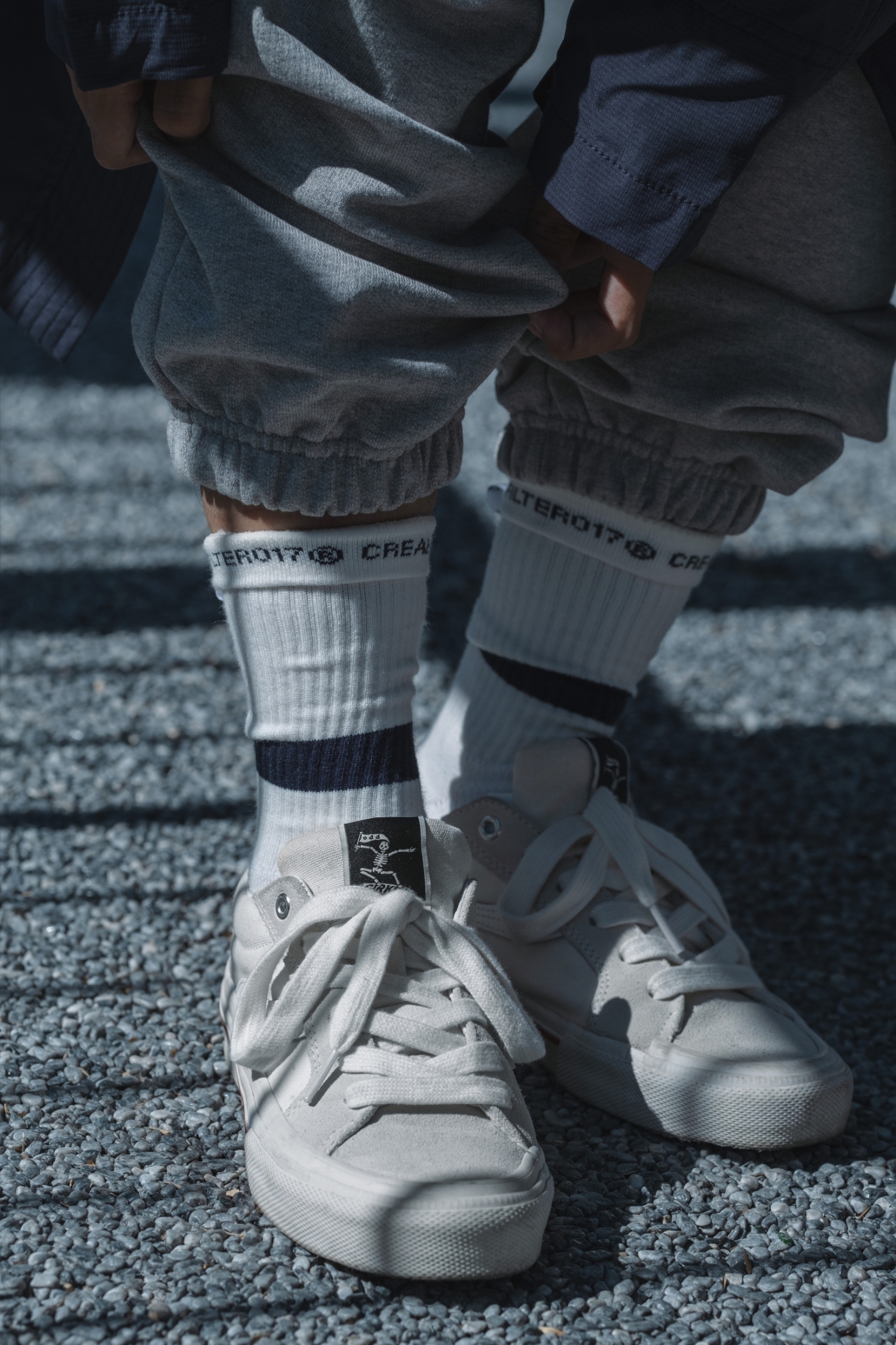 本次復刻新作用選用象牙白作為襪身本體,以MALLOC™ 織標及襪底印刷詮釋聯名細節,襪管內側提花FILTER017® 品牌字樣,著用時可反摺增加外觀搭配上的視覺靈活性。