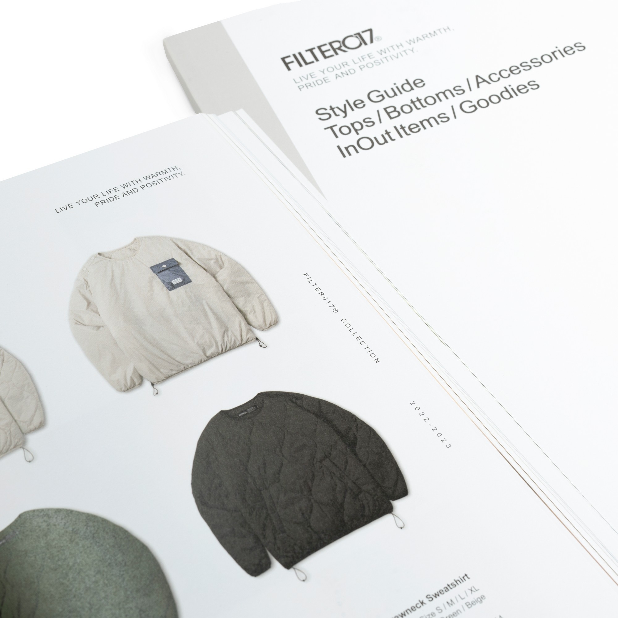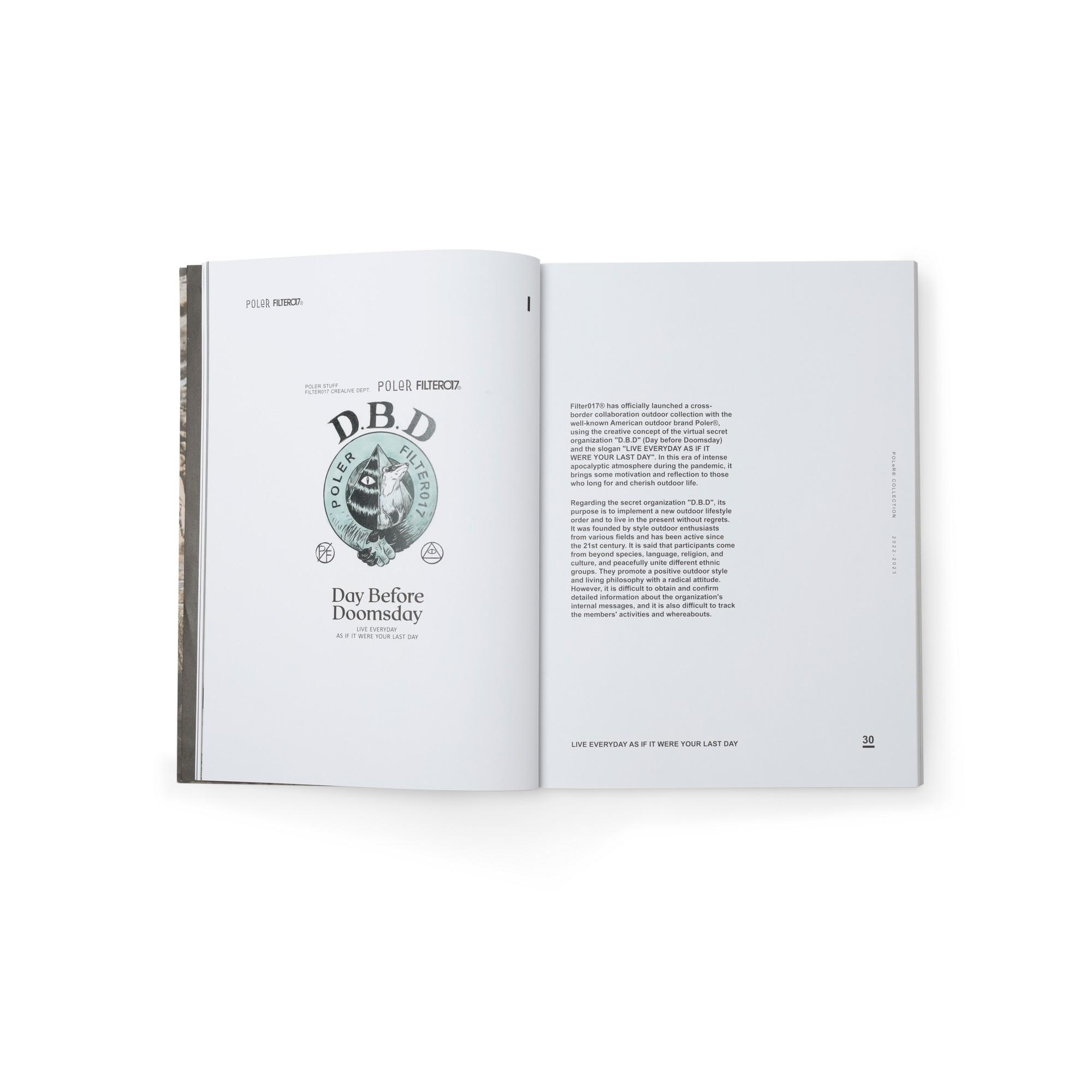 此次FILTER017® 再次發行全新品牌風格指南 「Style Guide 2022-2023」,彙整2022至2023年間,FILTER017® 持續以「Into the wild, Out with style.」主題標語延伸,汲取文化藝術、復古流行的多元視野,結合都市日常與戶外休閒風格,在視覺風格與機能間完美平衡的「InOut」生活型態為概念所推出豐富單品,並完整收錄2023全新發表的GRiT™( FLTR_G ) 機能概念特別企劃、2022 FILTER017® x Poler® - D.B.D 跨國戶外聯乘企劃,以及FILTER017® x grn Outdoor 台日聯乘支線 「NAUGHTY CAMP」...等專案形象與精彩內容,透過紙本的溫度集結之下,厚達142頁的精緻印刷質感詮釋,典藏「遊走在城市與戶外之間,保持溫度與態度的生活步調」的品牌精神核心。