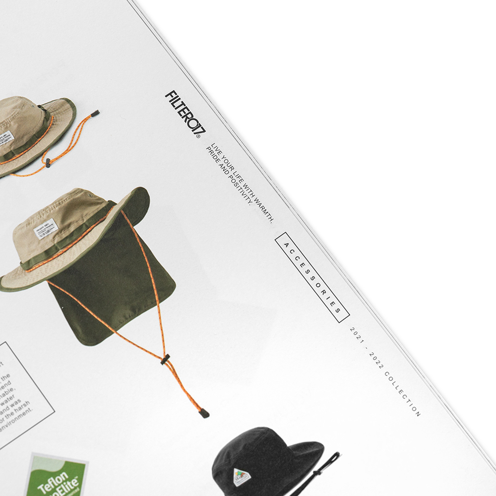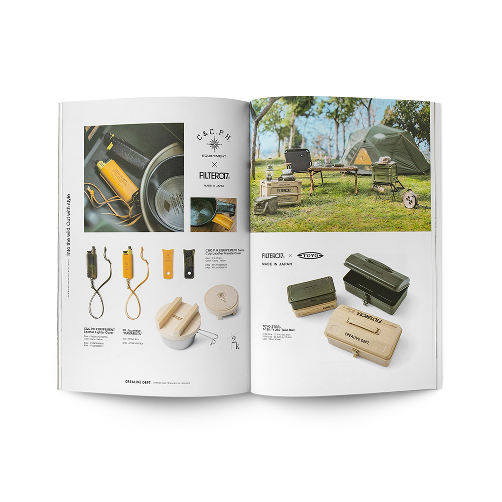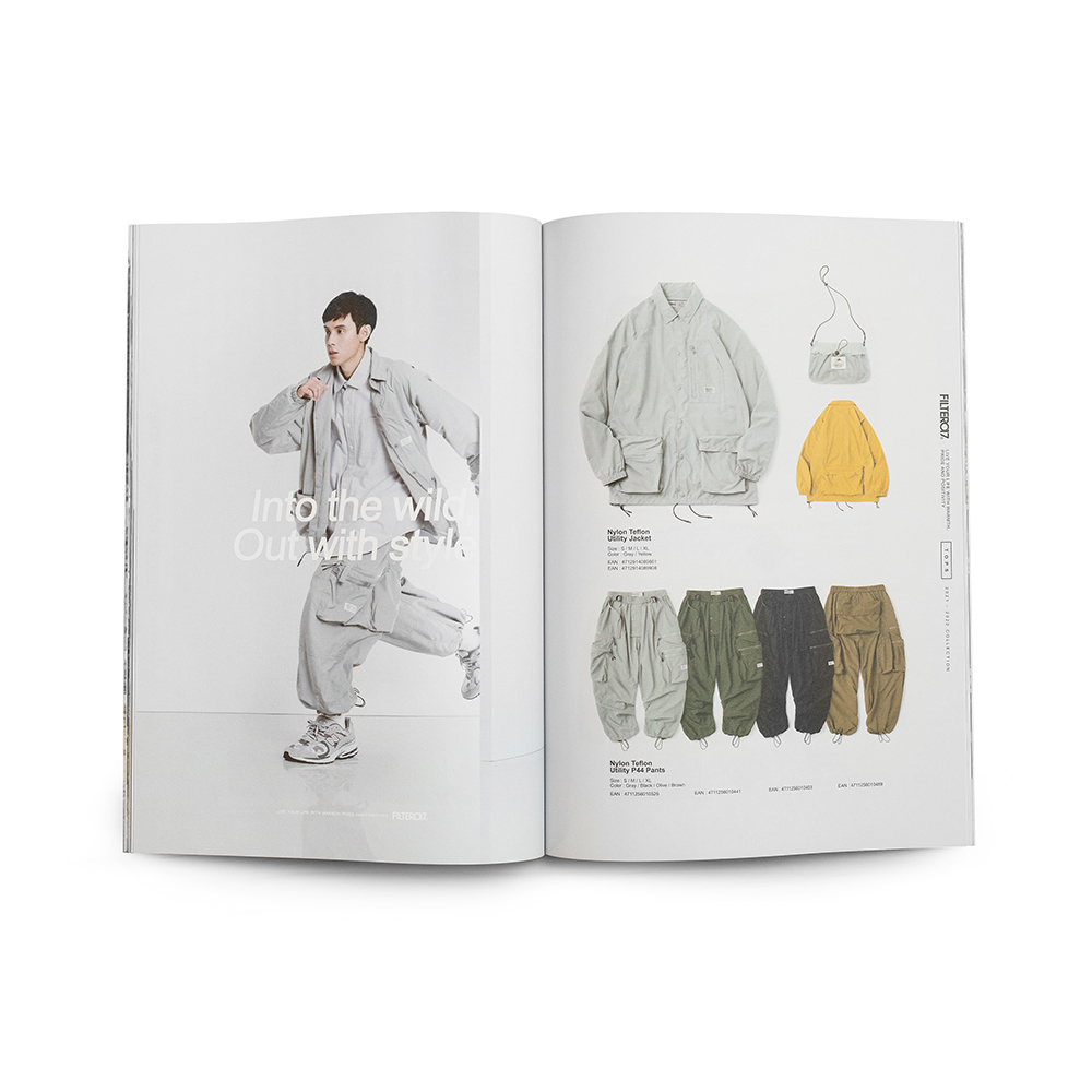 本次Filter017發行的品牌風格指南,彙整收錄了2021-2022年間品牌團隊以「Into the wild, Out with style.」作為主題標語,汲取文化藝術、復古流行的多元視野,並結合都市日常與戶外休閒風格,在視覺風格與機能間完美平衡的「InOut」生活型態為概念所推出一系列的精彩單品,並在紙本完整集結下,完整典藏品牌詮釋「遊走在城市與戶外之間,保持溫度與態度的生活步調」的精神核心。