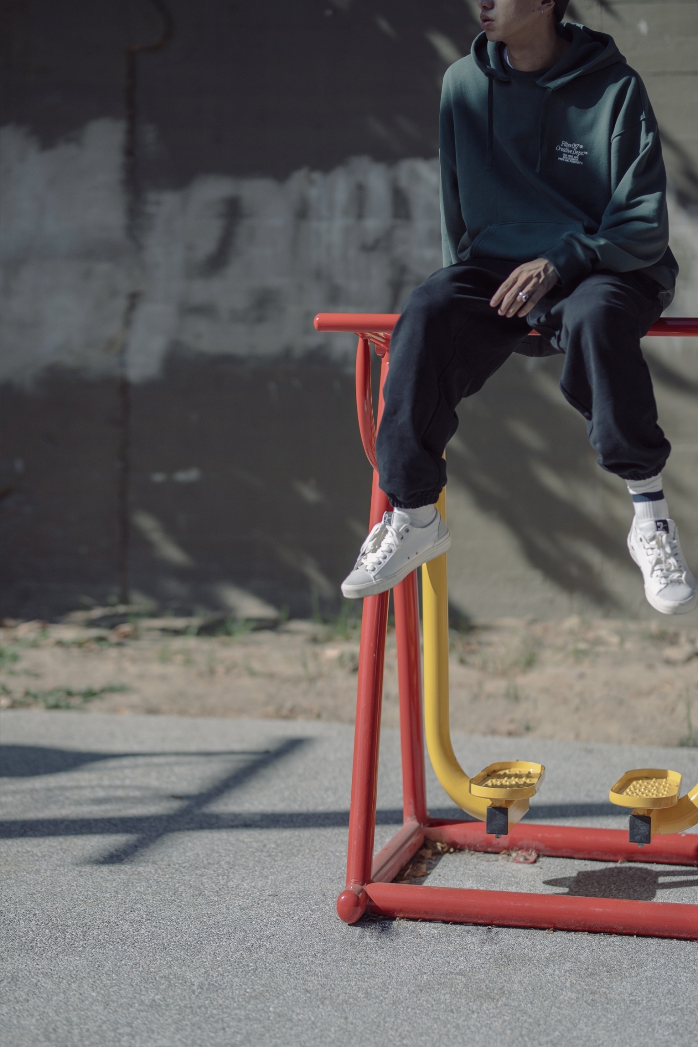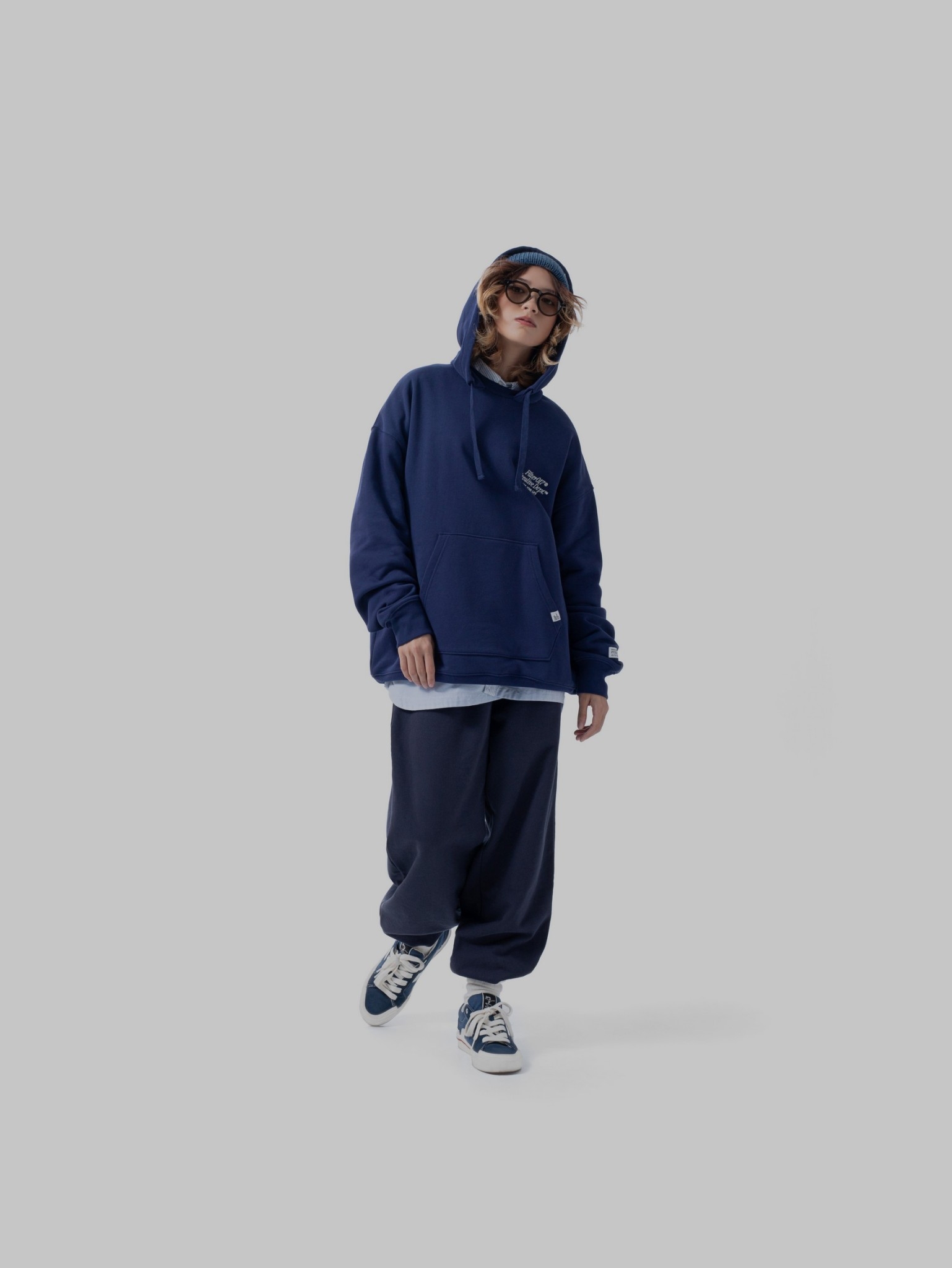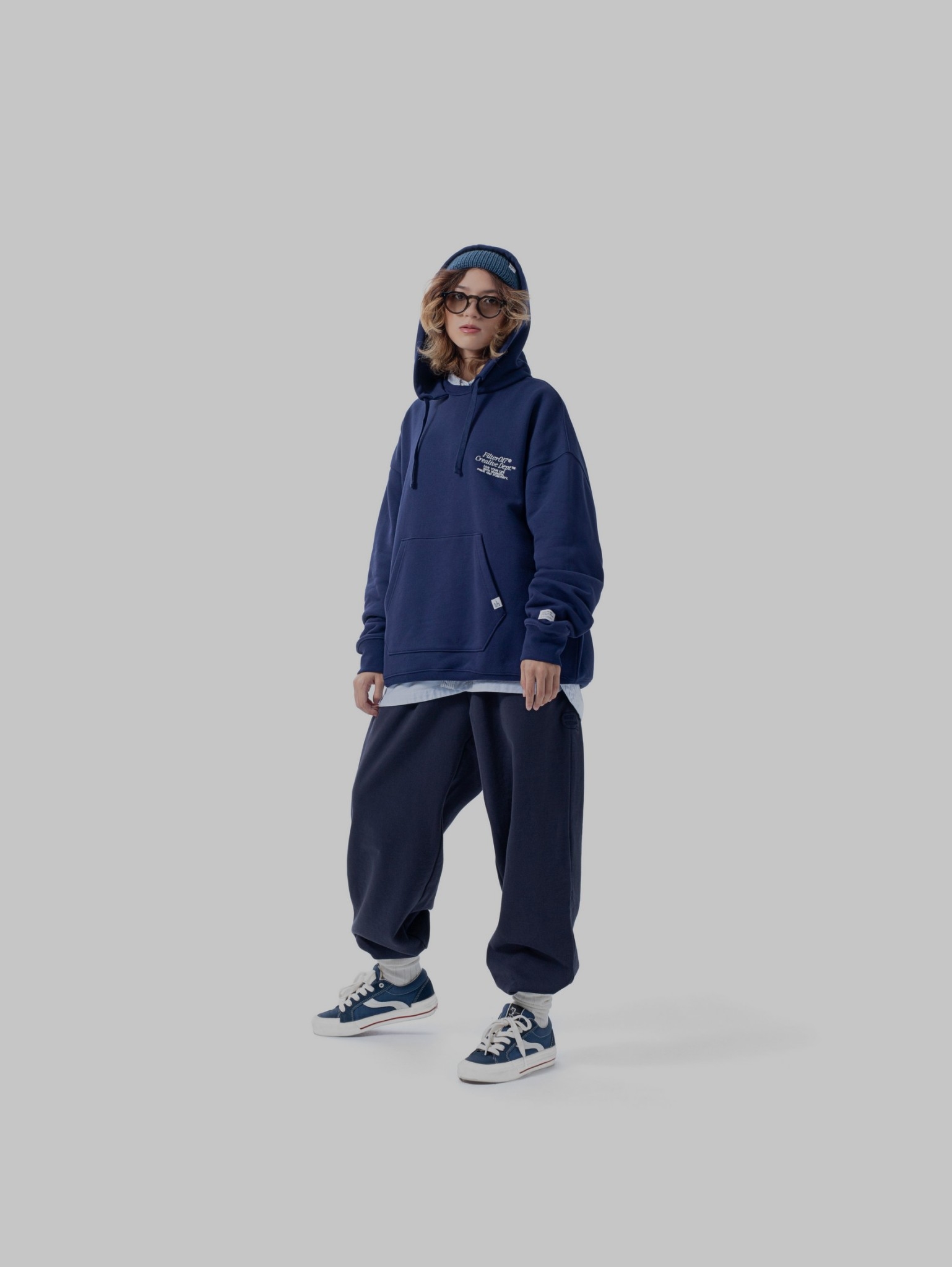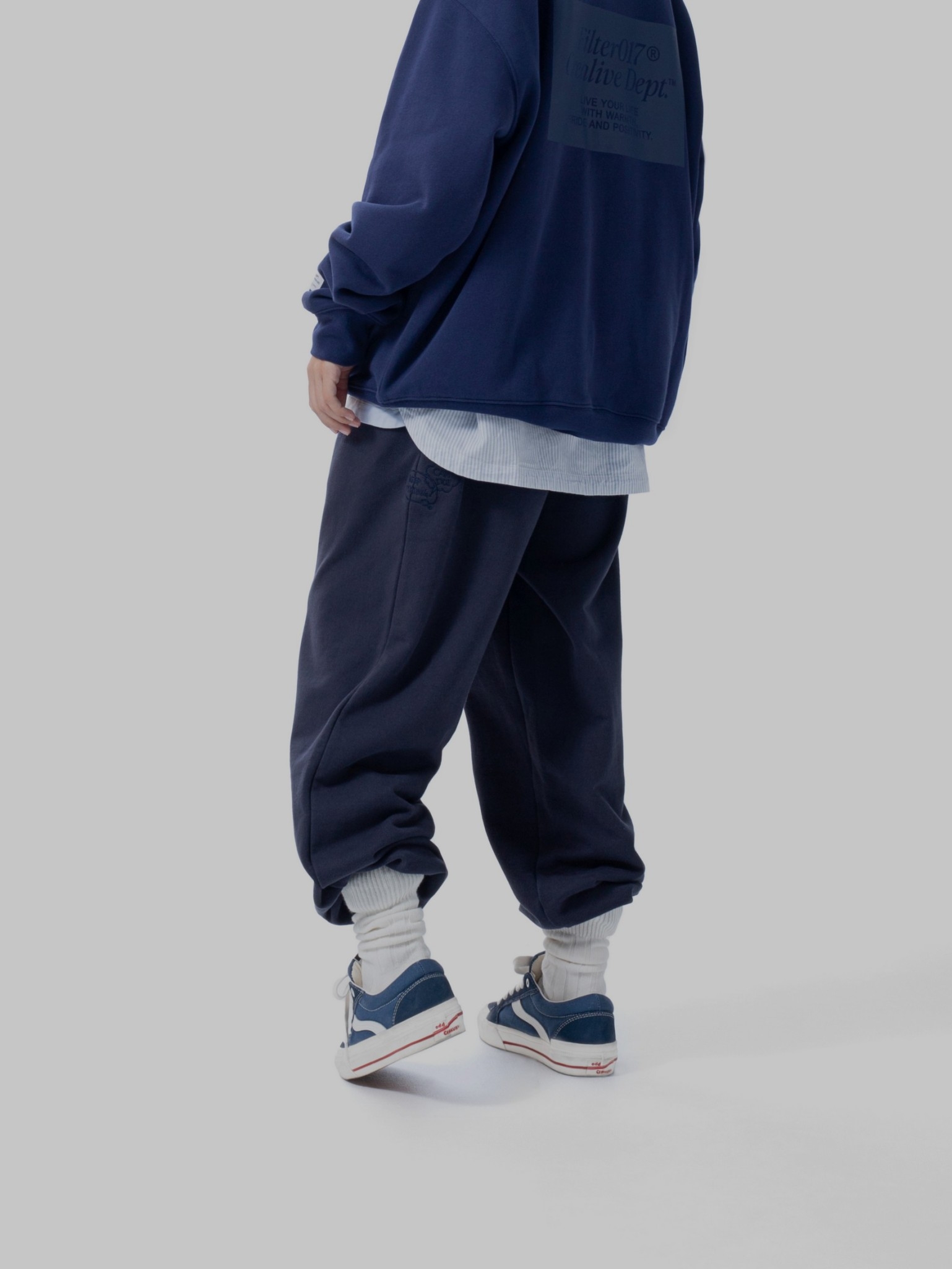 側面口袋處以帶有80-90年代塗鴉感的美式漫畫文字圖樣,以同色刺繡做為低調的細節質感提點,褲管縮口設計與剪裁設計使整體呈現略為寬鬆的錐形輪廓,是近年City Boy 街頭學院風潮下,不可或缺的基本單品。