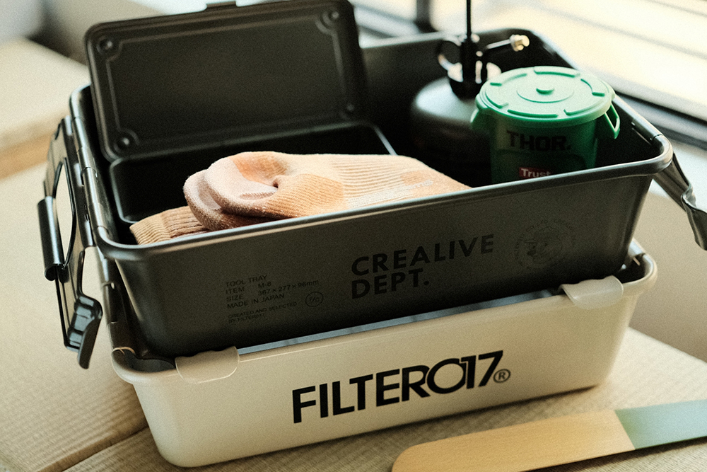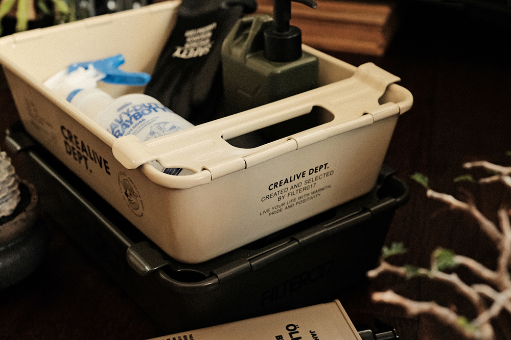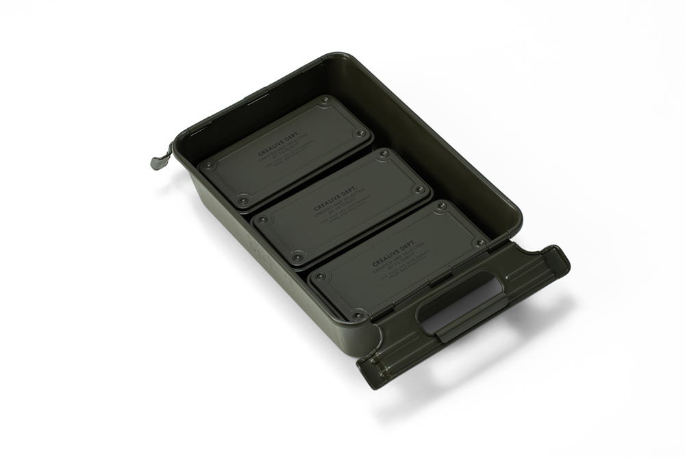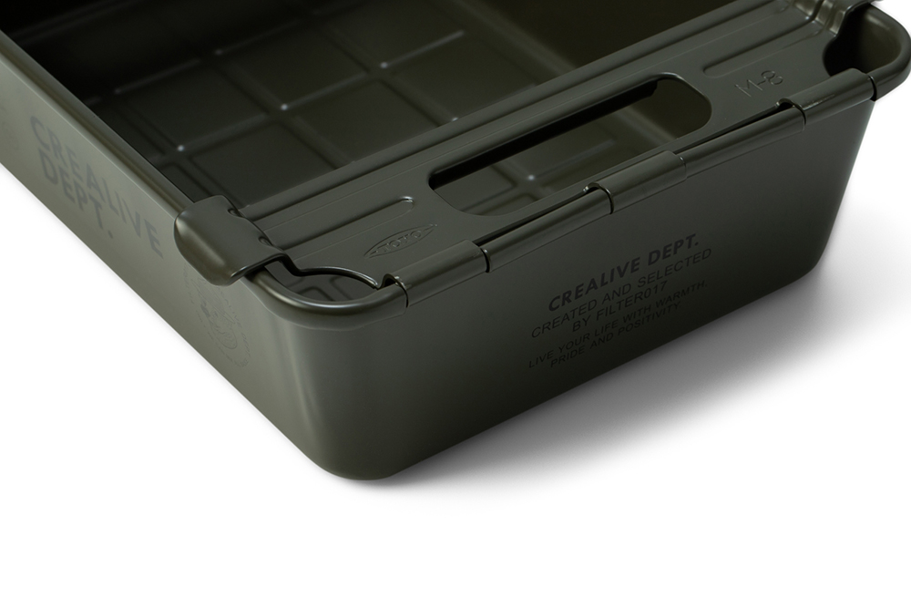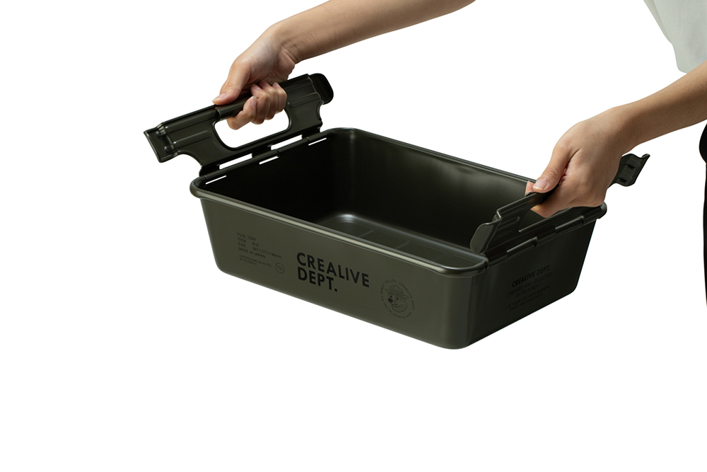 本次合作M-8日製層疊物料整理盒,推出軍綠色與卡其色兩色款,標題搭配品牌設計視覺圖型與標示字樣,呈現出戶外氛圍及工業感軍事風格。