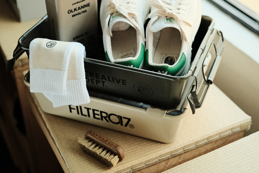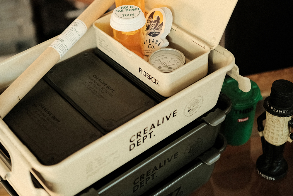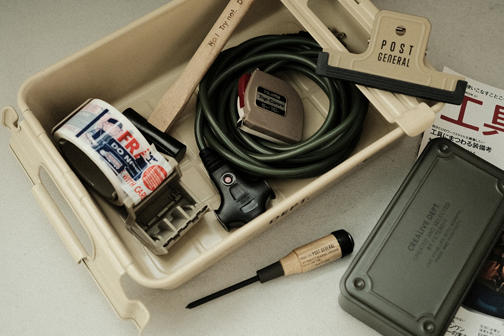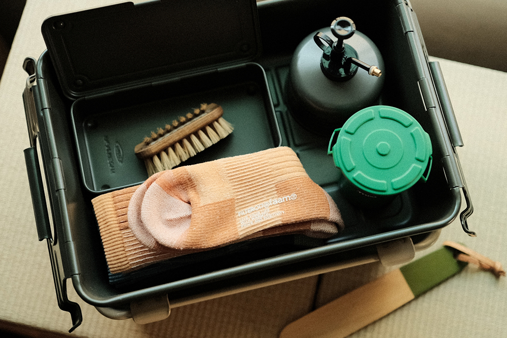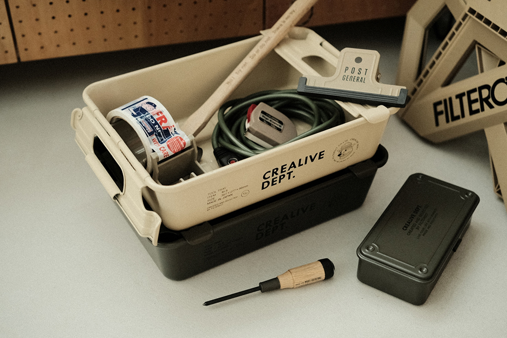 本次合作M-8日製層疊物料整理盒,推出軍綠色與卡其色兩色款,標題搭配品牌設計視覺圖型與標示字樣,呈現出戶外氛圍及工業感軍事風格。